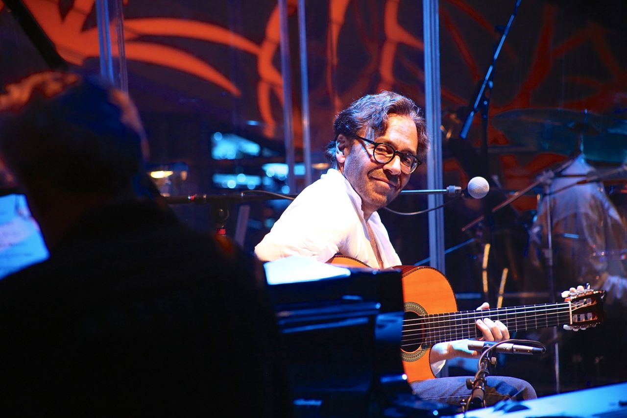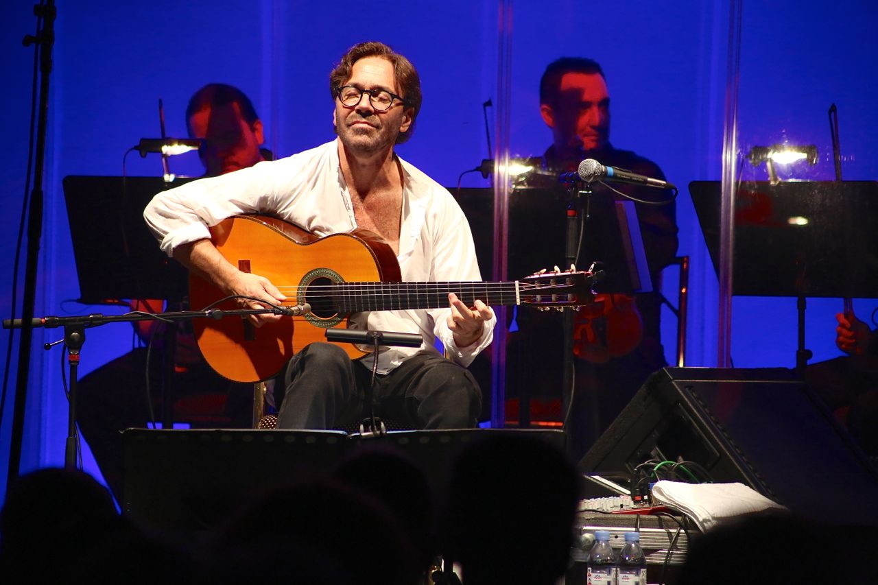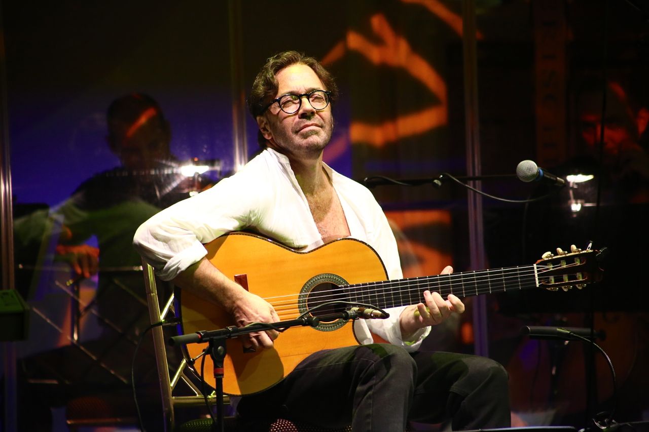Vielen Dank an Ralf Dombrowski, den Fotografen dieser tollen Bilder… Ein Bericht von Oliver Hochkeppel folgt in der Printausgabe der JazzZeitung. Hier ein Teaser: „Am Anfang stand ein Outing: „Das ist der erste Gig meines Lebens, zu dem ich mit dem Rad gekommen bin“, verkündete Al Di Meola im Festsaal des Bayerischen Hofs. „Ich bin jetzt ein Einheimischer. Danke für Eure Aufnahme.“ Es hatte sich wohl aufgestaut: Nach dem Scheitern seiner Ehe und einer Schaffenskrise hat Di Meola erst wieder zu sich finden müssen. Abgesehen von einem „So viele Dinge haben sich seit einem Jahr verändert – meist zum Guten“ wollte der Neu-Münchner öffentlich nicht ins Detail gehen, aber spätestens beim neuen Stück „Stephanie’s Theme“ wurde klar, was der Grund für die Luftveränderung war. Ein amerikanischer Weltstar, der quasi als Fußläufiger den Reigen eröffnet, man konnte das, wenn man wollte, als Symbol für den Jazz-Sommer im Bayerischen Hof nehmen: Versuchte der doch auch, wieder zu sich selbst zu finden…“