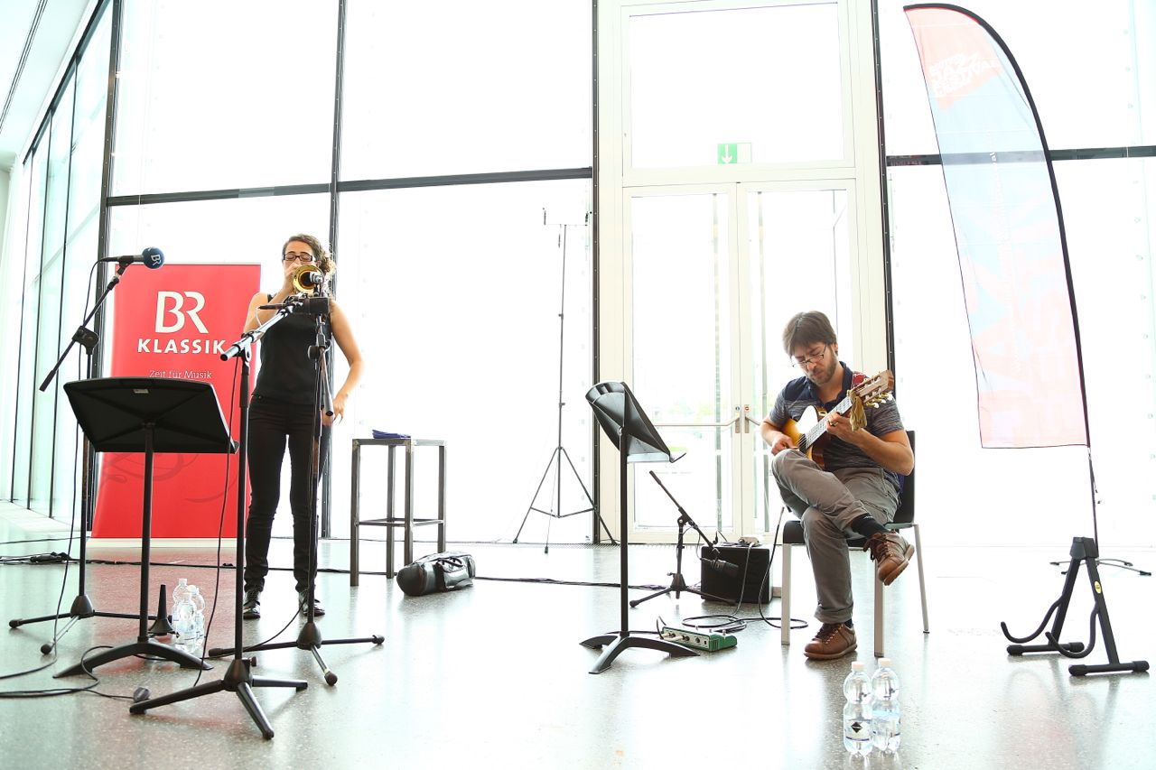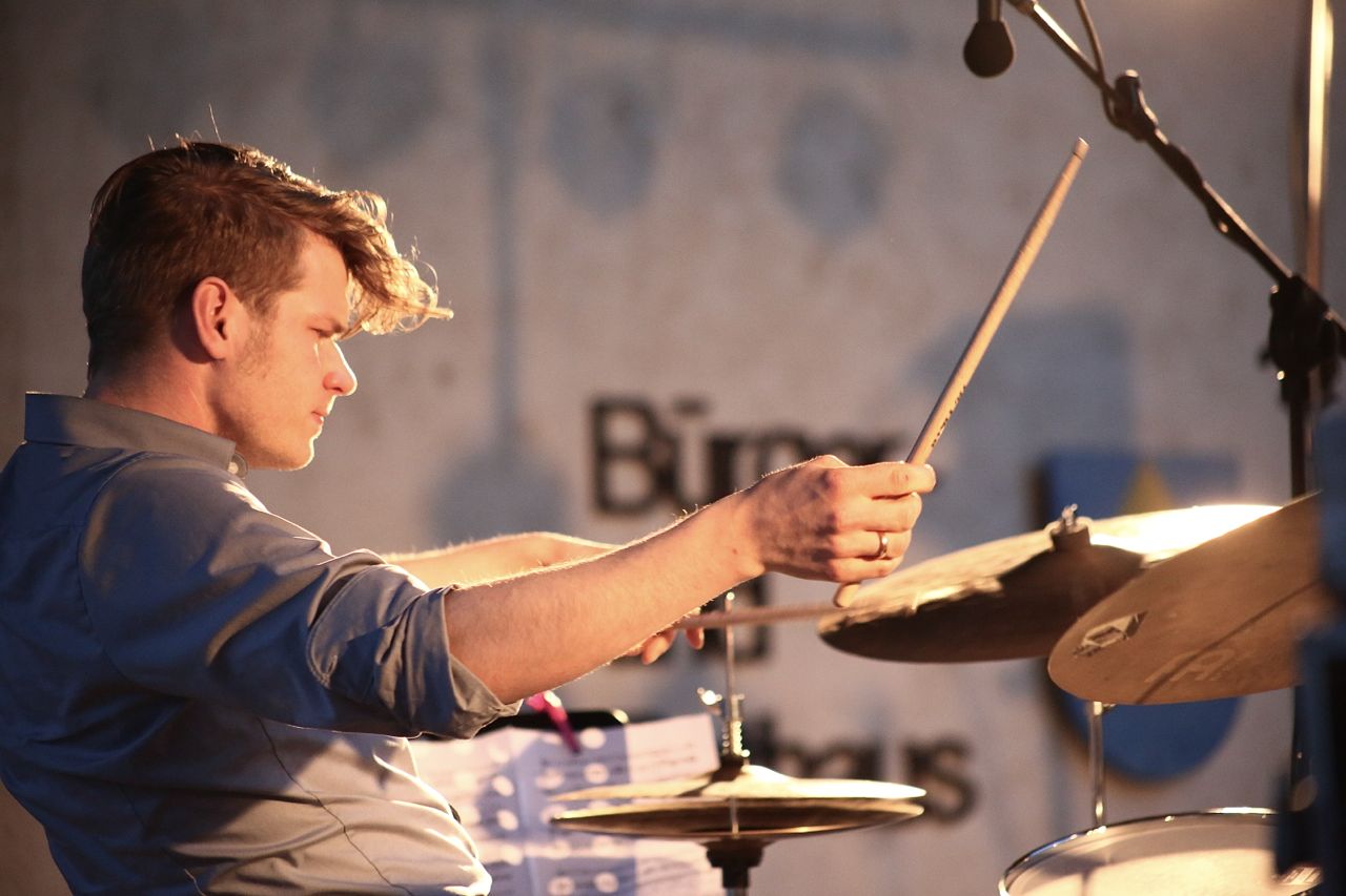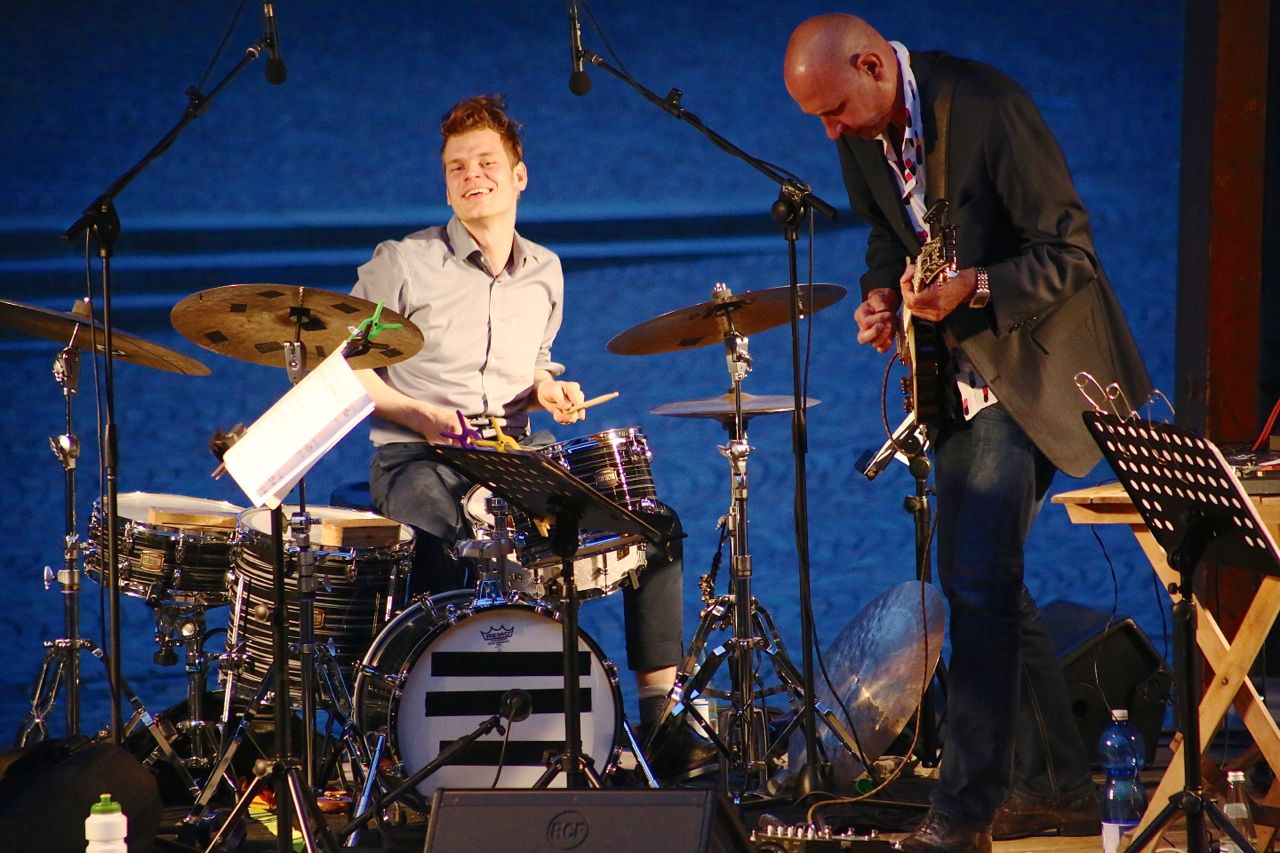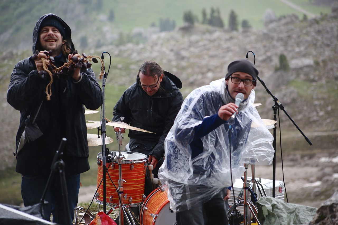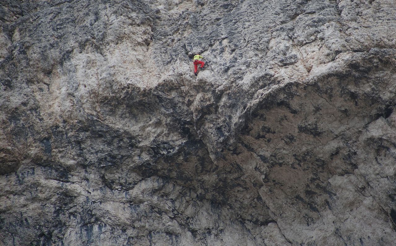 Das zweite, weit abenteuerliche Fusionsprojekt des Festivals stand unter einem weniger guten Stern. Die „Saslonch Suite“ in und am Fuße der Langkofel-Wand inmitten der Dolomiten ist ein lange gereifter Herzenswunsch des Festivalleiters Klaus Widmann. Der ist im Zivilberuf Arzt und im Hobby ein passionierter Bergfreund. Seine Idee, Naturerlebnis, Sport und Jazz zu verbinden, nahm hier dank enormer Risikobereitschaft aller Beteiligten und einem nahezu aberwitzigen Aufwand – organisatorisch machte das Projekt so viel Arbeit wie der komplette Rest des Festivals – Gestalt an: Nicht nur spielten Trompeter Matthias Schriefl – als Allgäuer Berg-erfahren und als Musiker ohnehin einer der buntesten Hunde der Szene – und die Saxofonisten Florian Trübsbach und Cedric Favresse auf einem Vorsprung mitten in der gewaltigen Langkofel-Wand, und Schlagzeuger Lucas Niggli, Gesangsakrobat Andreas Schaerer und Gitarrist Kalle Kalima an ihrem Fuße, sie begleiteten dabei auch noch den südtiroler Extrem-Slackliner Armin Holzer und vor allem die Erstbegehung eines Zehn-Meter-Überhangs durch die belgischen Brüder Nicolas und Olivier Favresse.