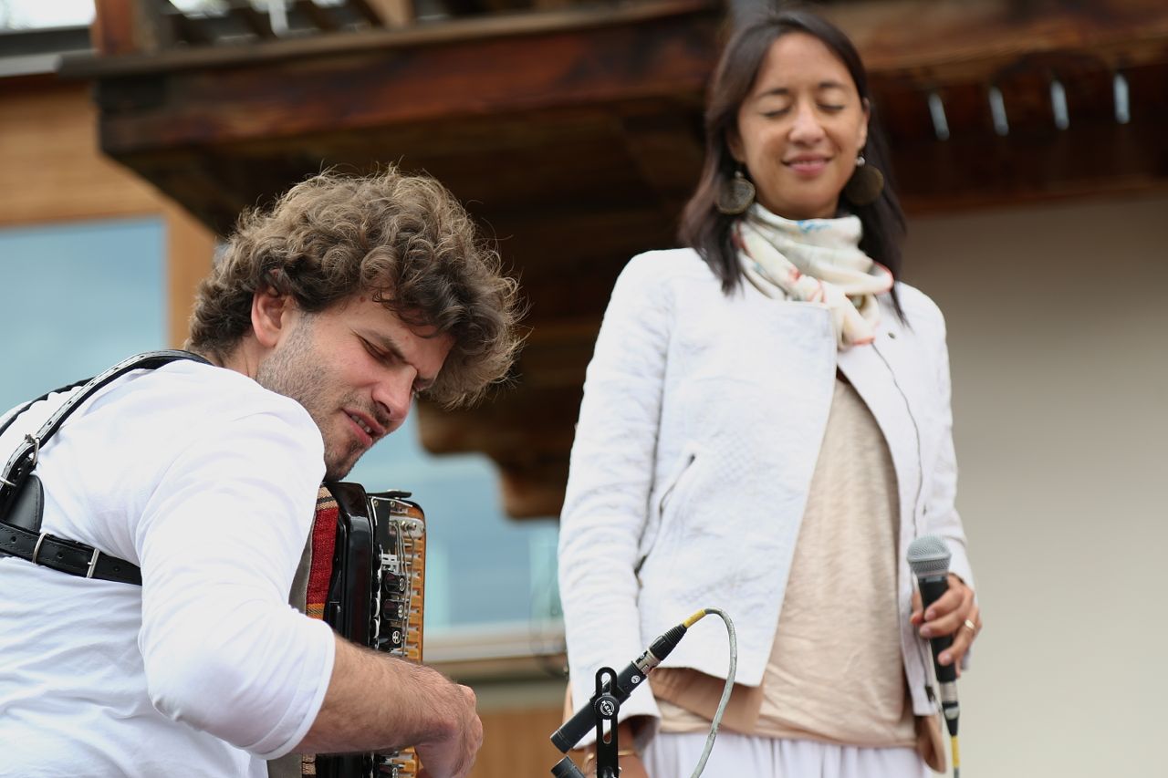 Es verwunderte daher nicht, dass diese Kombinationen nahezu miteinander verschmolzen, dass Peirani seine einmaligen Fähigkeiten, nahezu jedes andere Instrument auf dem Akkordeon erklingen zu lassen, problemlos jeden Einfall improvisatorisch begleiten zu können und sich mit nahezu übermenschlicher technischer Perfektion über alle denkbaren Stilgrenzen hinwegzusetzen, voll ausspielen konnte. Eher verwunderlich war, dass dies in den anderen, teilweise erstmals auf der Bühne zu sehenden Kombinationen genauso gut funktionierte – ob mit der gleichermaßen beeindruckend kraftvollen wie präzisen Sängerin Serena Fisseau oder der aufstrebenden Trompeterin Airelle Besson, die ihre anfängliche Nervosität schnell überstand, oder mit Francois Salque, dem Klassik-Star am Cello. Letzterer, der auch schon zwei weltmusikalische Alben mit Peirani eingespielt hat, spielte hier das erste Mal in seinem Leben zusammen mit einem Schlagzeug („Oh, das ist laut“, sagte er beim Soundcheck) und stand dem Gastgeber an stupender Virtuosität nicht nach.
