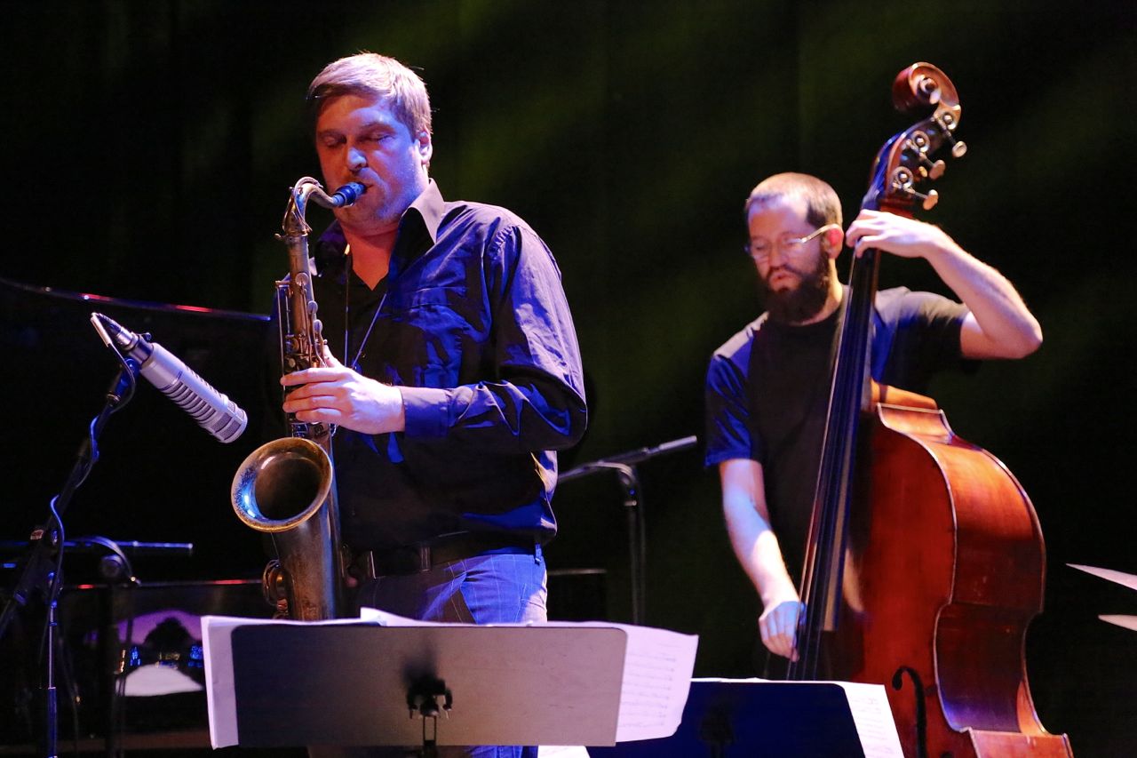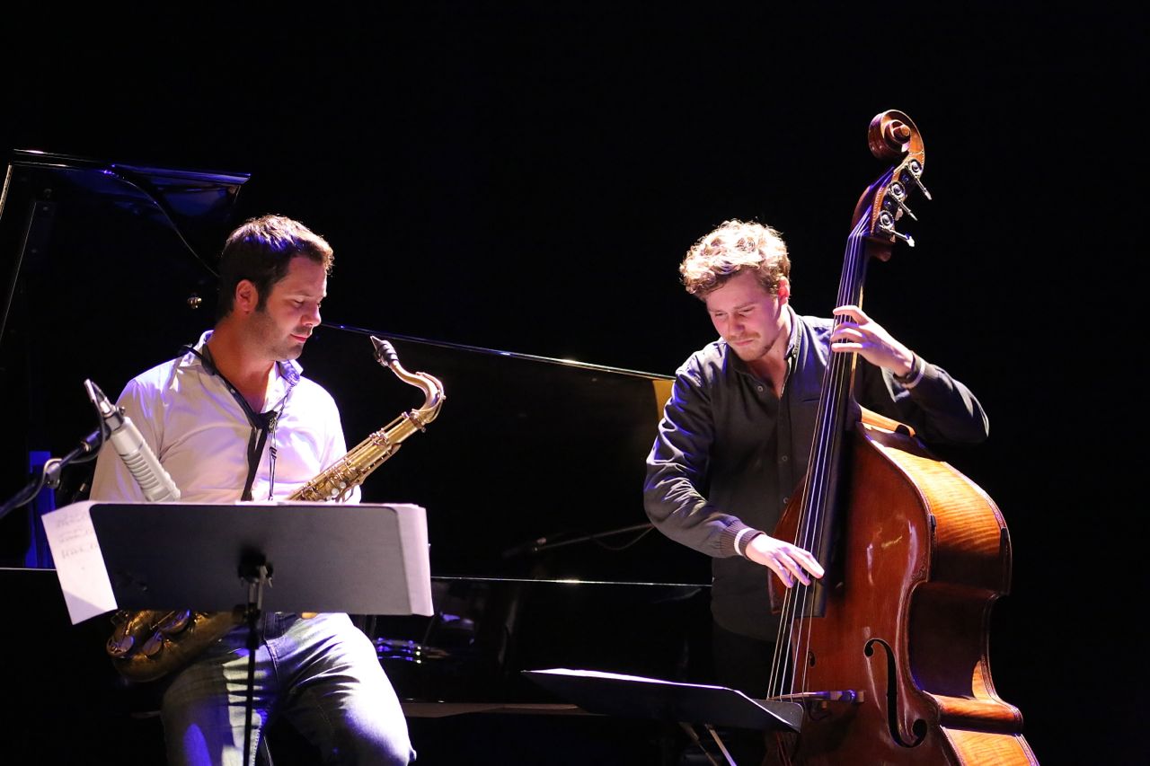 Fotos vom Luxembourg Jazz Meeting Anfang September. Bemerkenswert war vor allem Pascal Schumacher, derzeit europaweit maßgeblicher Vibraphonist, mit zwei intensiven Projekten – Quartett und im Trio mit Francesco Tristano und Bachar Khalife. Einige Musiker tauchen ebenfalls mehrmals auf, etwa der Saxophonist Maxime Bender, Schlagzeuger Paul Fox, Pianist und Drummer Jérome Klein. Herausragend subtil das Quartett von Pianist Michel Reis (Mit Niels Klein, Robert Landfermann, Jonas Burgwinkel), das Trio von Pit Dahm, ebenfalls ein Highlight der zickig-witzige polnische Vokalakrobat Grzegorz Karnas im Trio mit Klein und der Cellistin Annemie Osborne … Wir danken dem Fotografen Ralf Dombrowski!