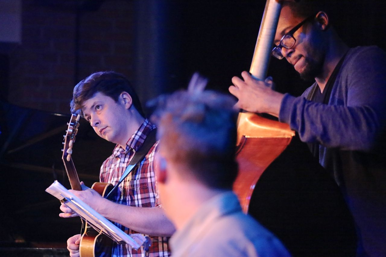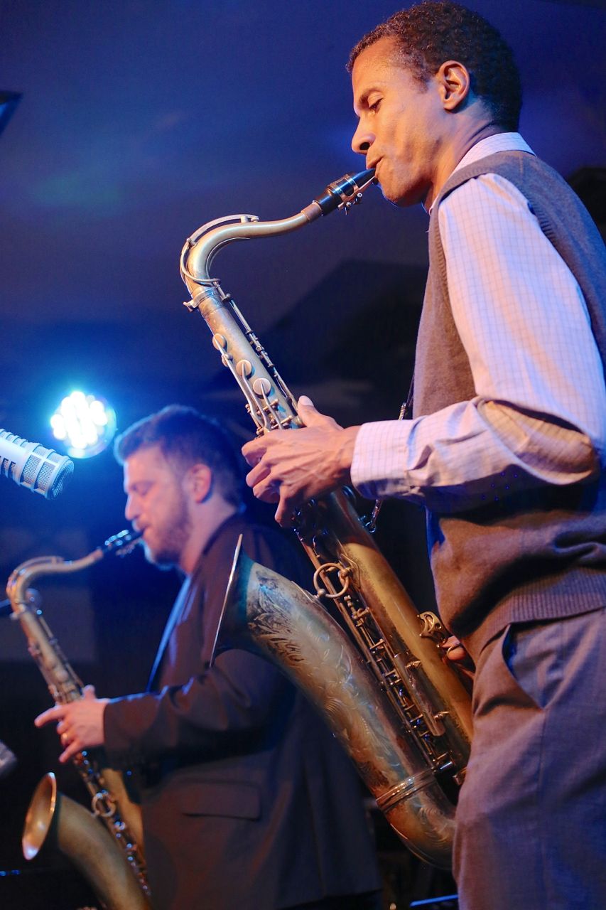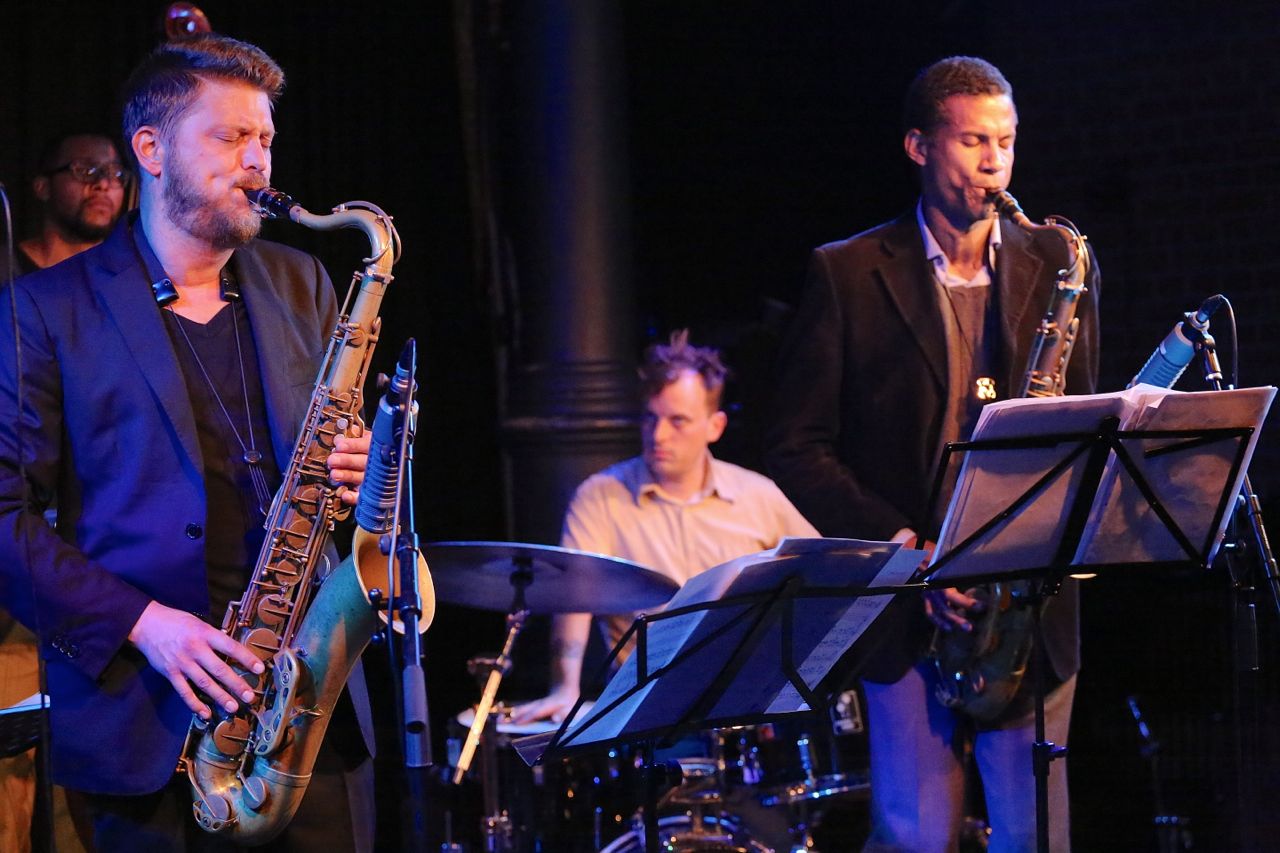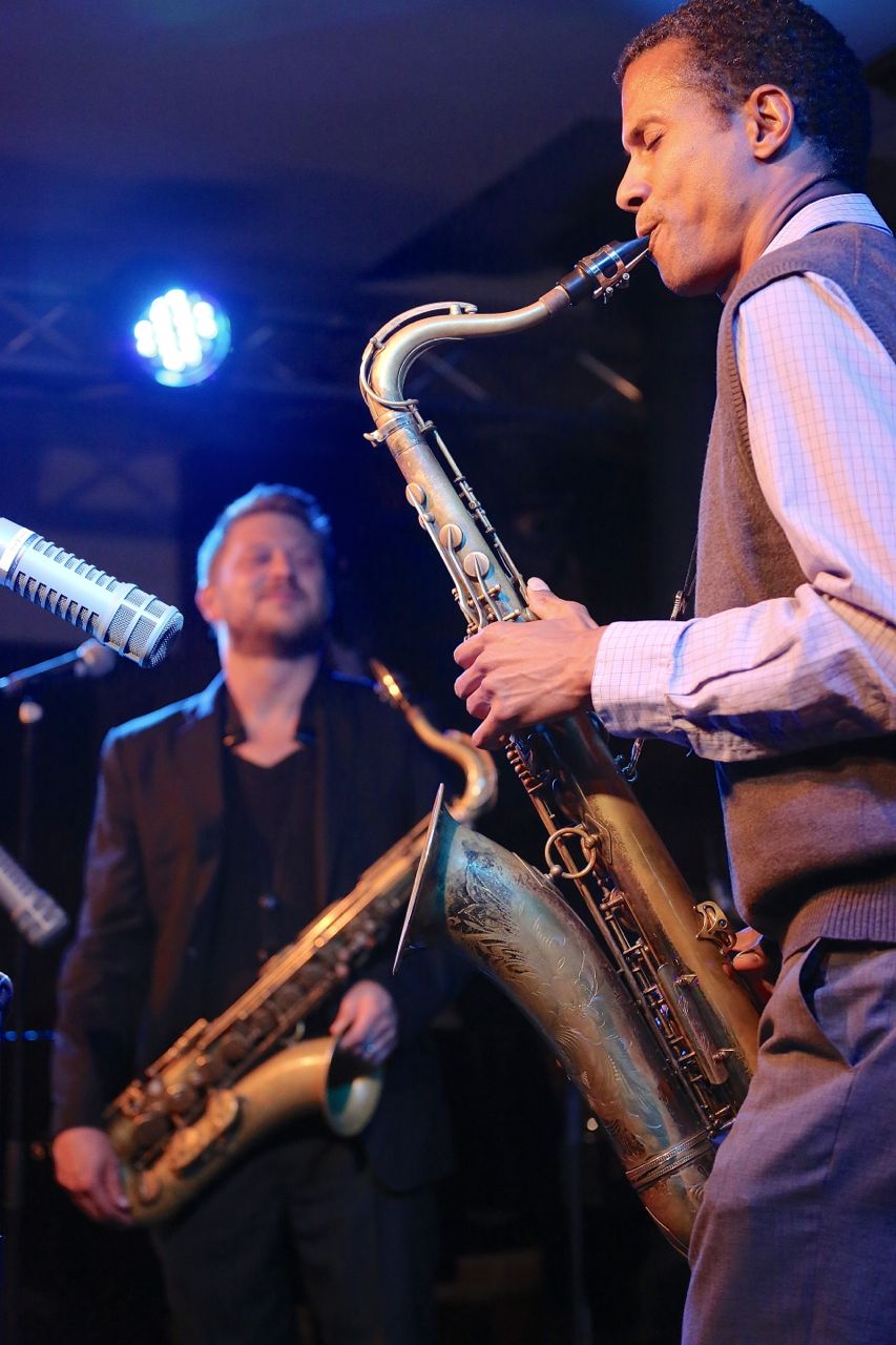 Lutz Häfner mit seinem ausgezeichneten International Sextett in der Unterfahrt am 7. Oktober 2014, fotografiert von Ralf Dombrowski