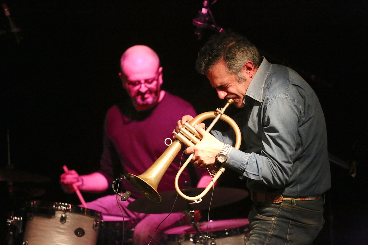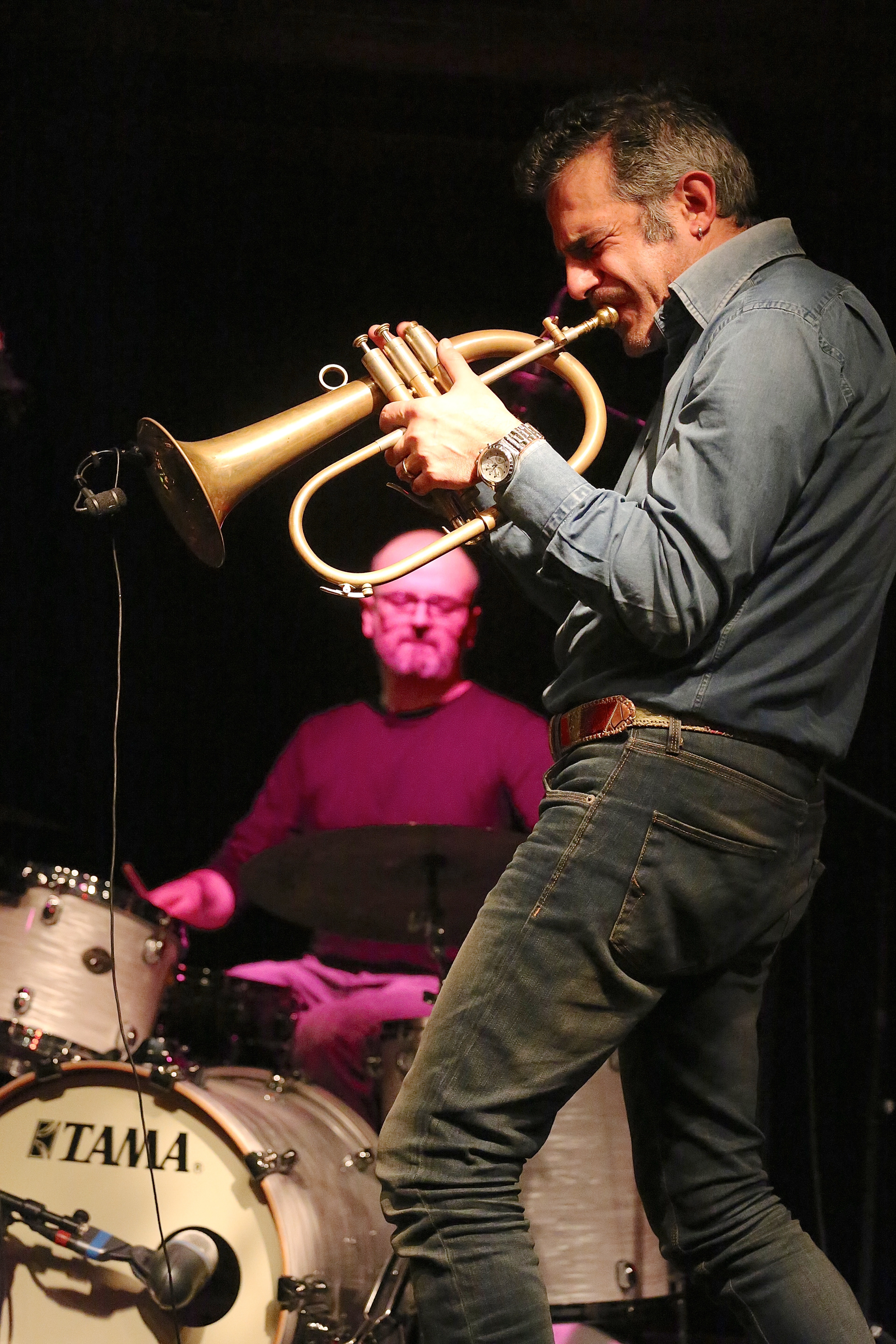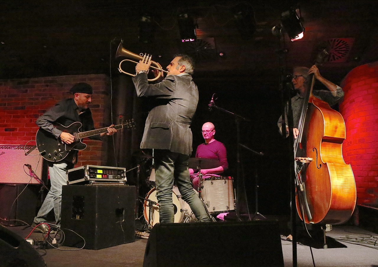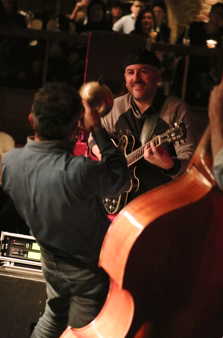 Am 11. Dezember 2014 war Ralf Dombrowski (Fotos) im Bayerischen Hof in München und merkt dazu an: Paolo Fresu mit seinem italienischen Devil Quartett (Bebo Ferra, g; Paolino Dalla Porta, b; Stefano Bagnoli, dr): ungemein inspirierte Musik, sehr kommunikativ, perfekt dialogisierend, kommunizierend mit einem weiten musikalischen Spektrum von eigenwillig freakigen Bearbeitungen etwa des Stones-Klassikers „Satisfaction“ bis hin zu weit ausholenden, sich überlegt steigernden Soloexkursen von Fresu und Ferra … durchaus faszinierend …