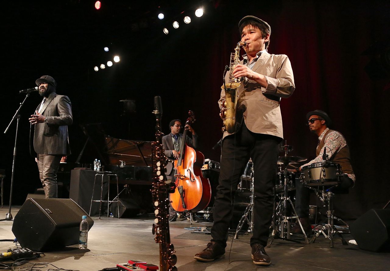 Die Band um den Pianisten Chip Crawford am Flügel ging kaum weniger ab als der Sänger. Allerdings hatte Yosuke Sato am Altsaxofon neben starken auch schwächere Momente. Zu oft verlegt er sich darauf, Porters Stimme mit Saxofon-Girlanden zu umspielen. Und bei manchen Soli klingt er wie ein praller Sack voller Noten, in den jemand aus Versehen ein Loch gebohrt hat.