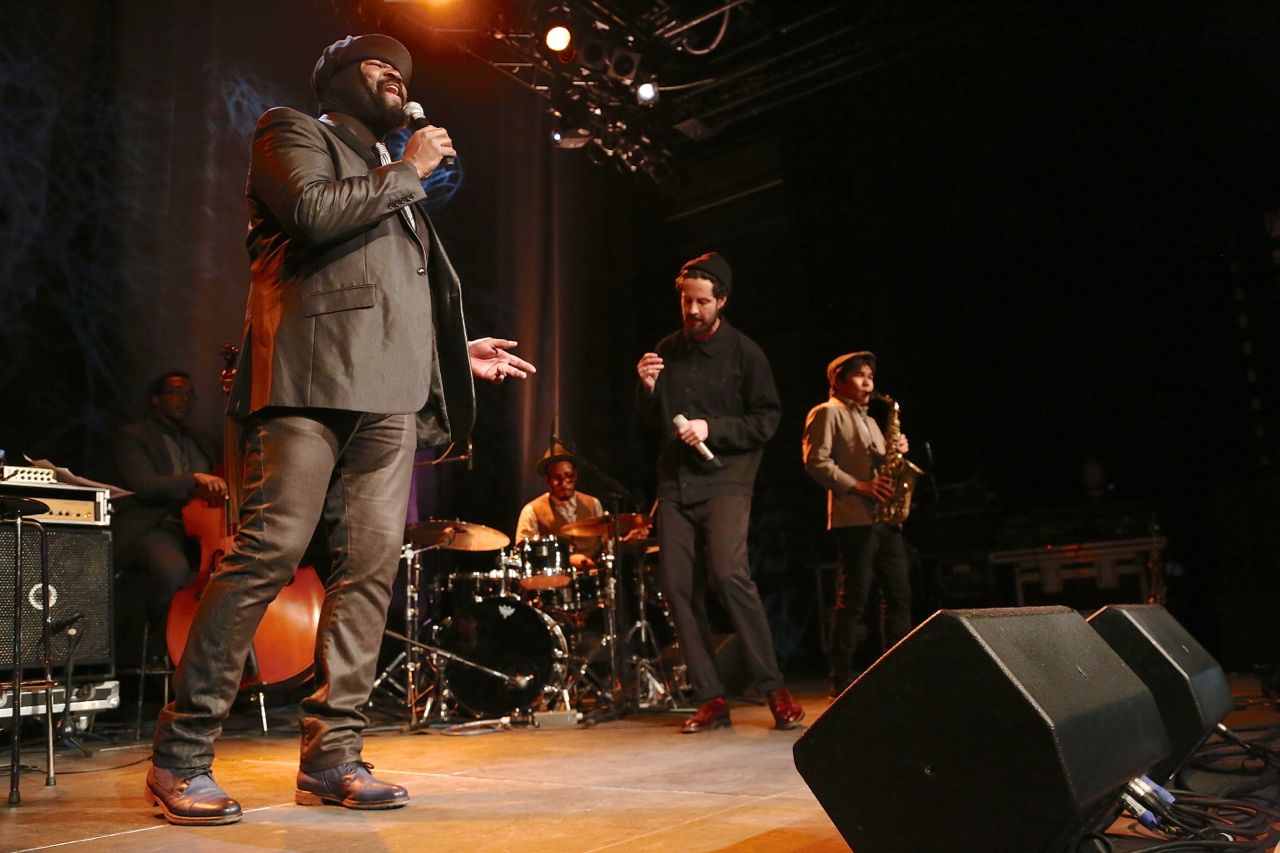 Von Claus Lochbihler, Fotos von Ralf Dombrowski – Soulful und jazzig, das wären gern viele Sänger. Schon deshalb, weil man dann nicht nur das überschaubare Jazzpublikum, sondern auch die vielen Soulfans, vielleicht sogar den einen oder anderen Hip-Hop-sozialisierten Jungen erreicht. Und so nicht nur kleine Clubs oder philharmonisch-steife Konzertsäle wie den Gasteig füllt, sondern auch lässigere Orte wie die Muffathalle. Und das im wortwörtlichen Sinne: Die Halle war beim Konzert vorgestern Abend so ausverkauft und voll, dass sich Gregory Porter nach zwei Nummern bei seinen Fans für die „fast schon illegal“ volle Venue bedankte. Soulful und zugleich jazzig wären gerne viele. Gregory Porter ist es. In Balladen wie „Wolfcry“ oder „Hey Laura“ klingt er so sahnig und klar wie Nat King Cole, den er als kleiner Junge einst als seinen Ersatzvater adoptierte, weil sich der leibliche Vater davon gestohlen hatte.