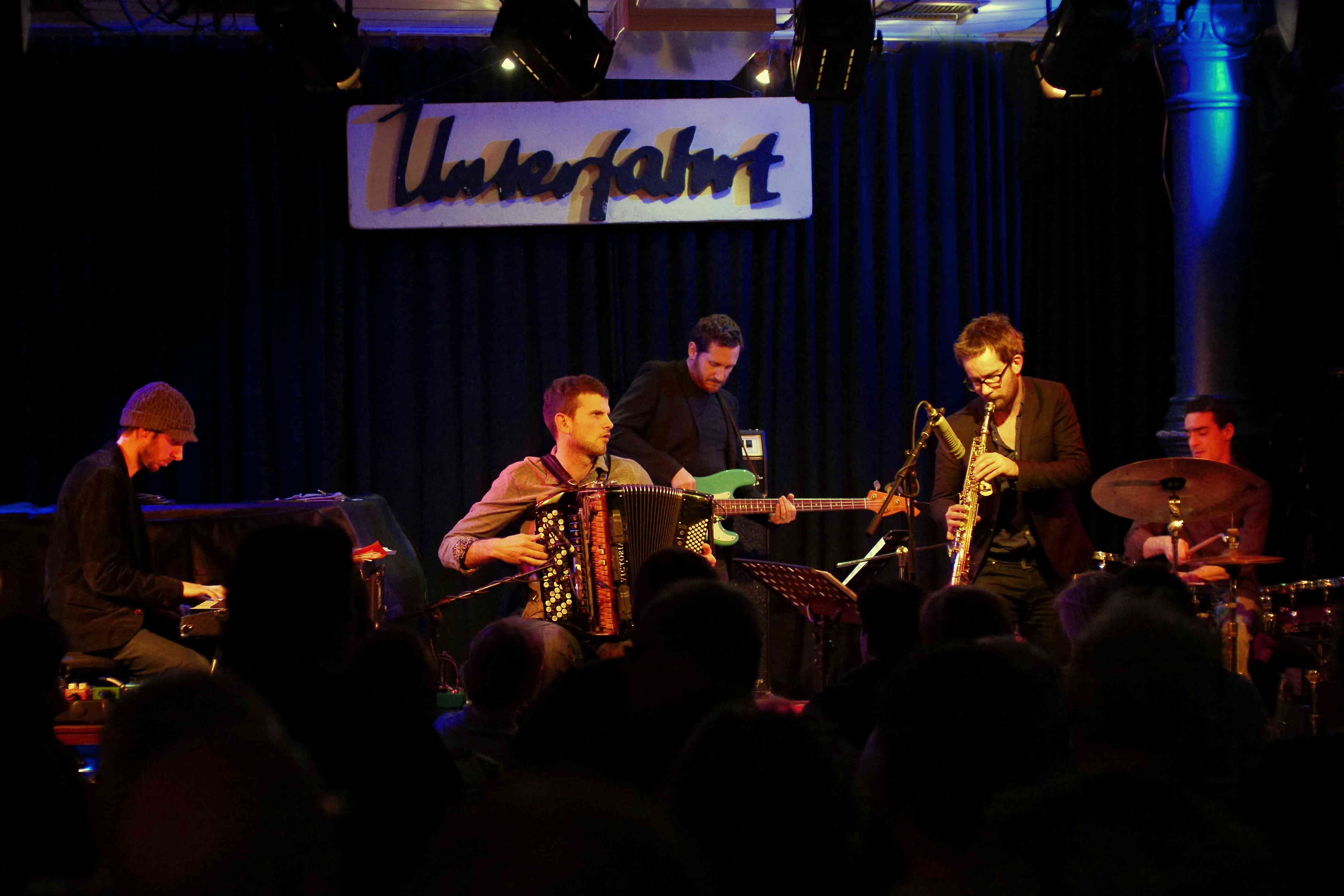 Von Thomas J. Krebs – Der Akkordeonvirtuose Vincent Peirani, in Frankreich letztes Jahr mit dem „Prix Django d’Or“ ausgezeichnet, besuchte die Münchner Unterfahrt diesmal mit seinem aktuellen Projekt „Living Being“ und gleichnamiger CD im Gepäck (veröffentlicht auf dem Münchner ACT Label). Eine facettenreiche Band mit jungen Musikern, die alle aus unterschiedlichen stilistischen Lagern kommen. Mit großer Leichtigkeit musizierte Peirani, entlockte seinem Instrument grenzüberschreitend einzigartige Klänge, fernab aller Traditionen oder musikalischen Konventionen. Gemeinsam mit dem Saxophonisten und Weggefährten Émile Parisien, Tony Paeleman am Fender Rhodes, dem Bassisten Julien Herné und Schlagzeuger Yoann Serra zündete das Quintett ein pulsierendes „Electric Jazz & More“- Feuerwerk, das Maßstäbe setzte und die Zuhörer im ausverkauften Club restlos begeisterte. Alle Fotos: Thomas J. Krebs.