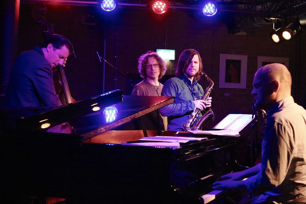 Zhenya Strigalev (as) und seine Formation Smiling Organism (Alex Sipiagin, tp, Liam Noble, p, Matt Penman und Linley Marthe, b, Eric Harland, dr) zeigten in der Münchner Unterfahrt starke rhythmische Strukturen, fest verankerte Basslinien und ganz eigene Melodik. Das Projekt, wie Strigalev es selbst bezeichnet, vereint das enorme musikalische Talent der international höchst anerkannten Musiker mit ihm selbst als Katalysator. Ralf Dombrowski war für uns vor Ort und dokumentierte den Auftritt mit Bildern.
