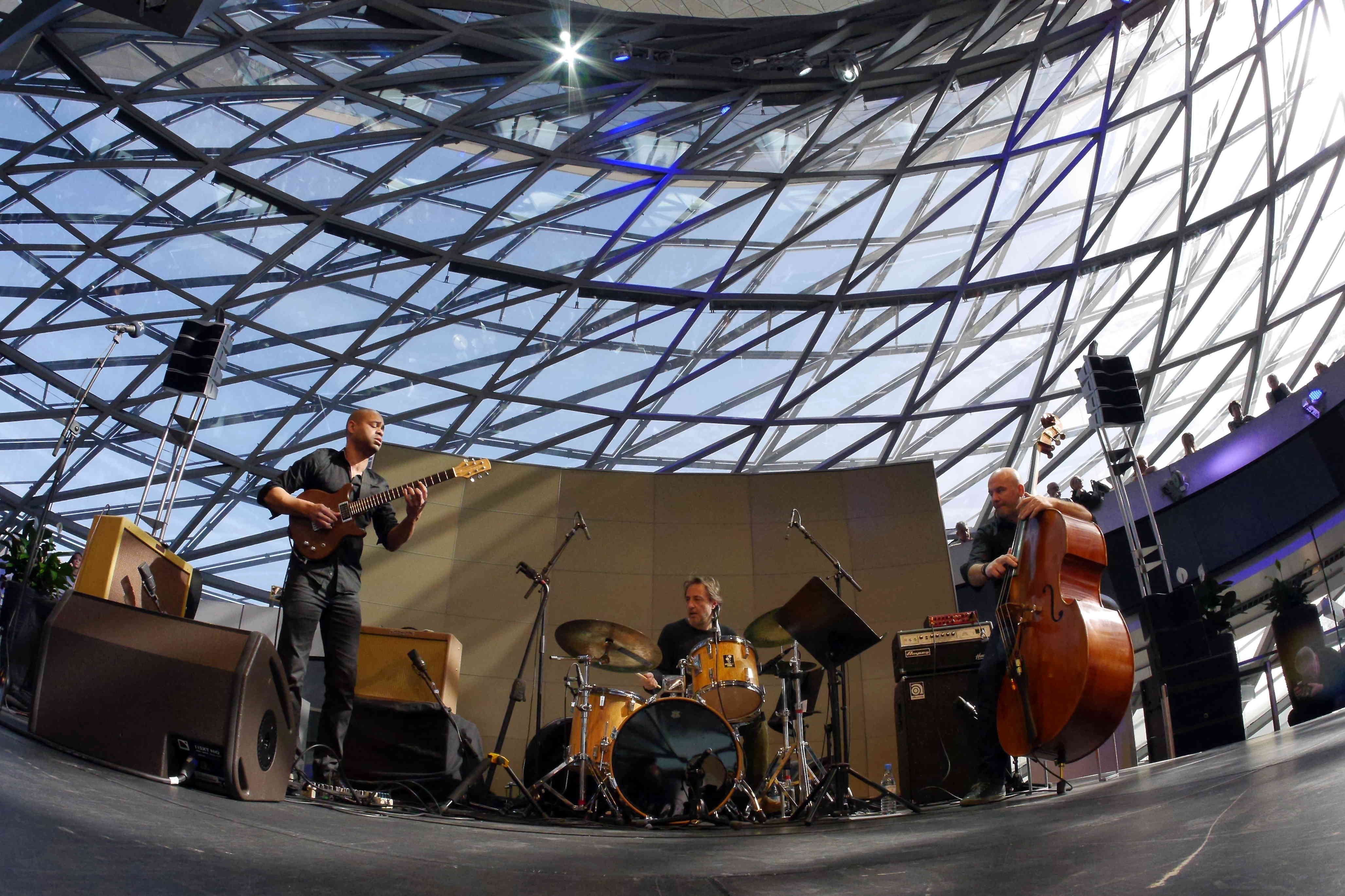 Gestern spielte der französische Gitarrist Manu Codjia mit seinem Trio im Doppelkegel der BMW Welt. Dabei überzeugte er zusammen mit Bassist Jérôme Regard und Schlagzeuger Philippe Garcia mit und präsentierte ein „Potpourri“ aus gecoverten Hits der letzten drei Jahrzente. Thomas J. Krebs war vor Ort und liefert einige Impressionen des Auftritts. Lesen Sie eine ausführliche Konzertkritik von Ssirus W. Pakzad auf nmz.de