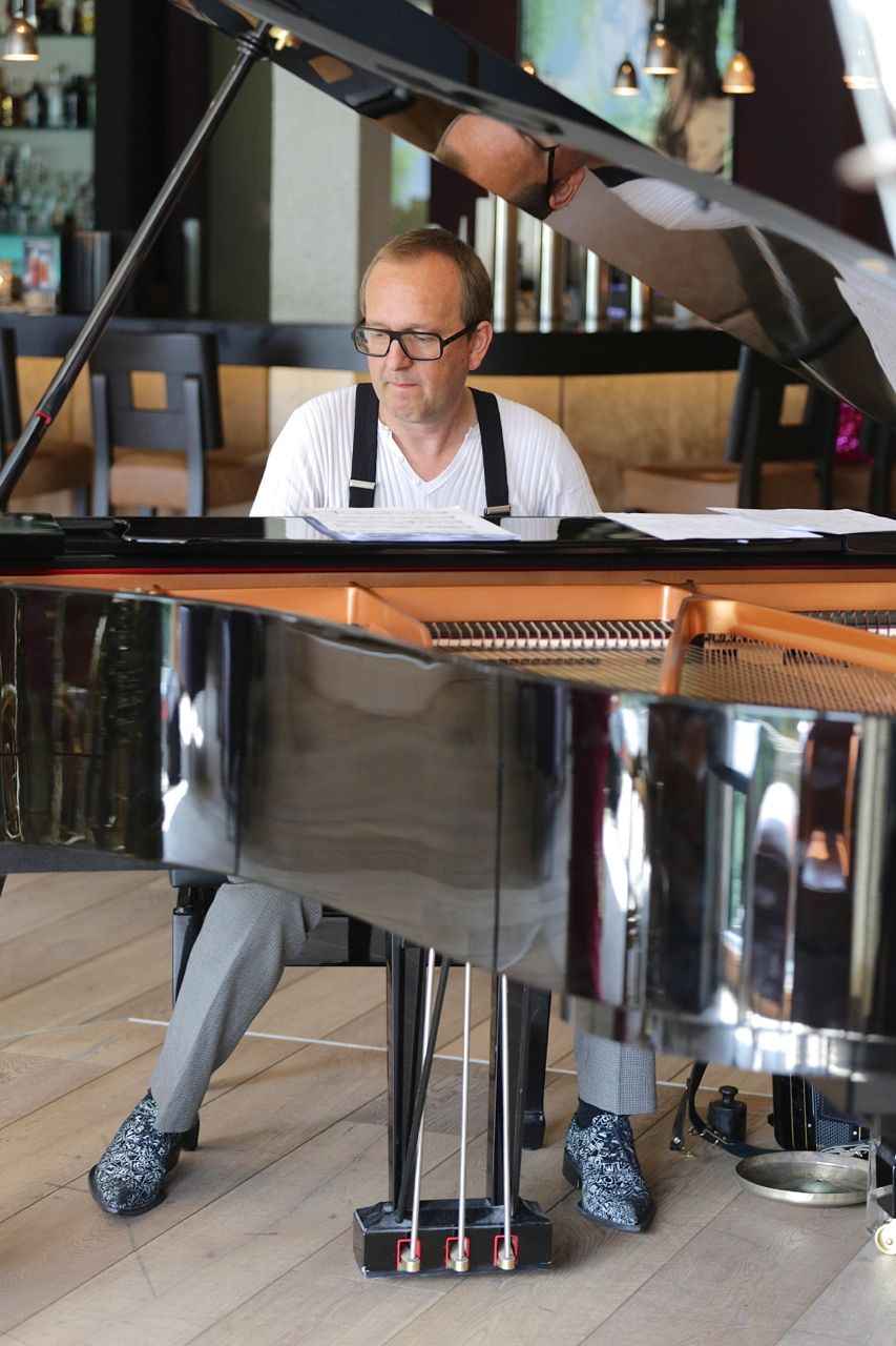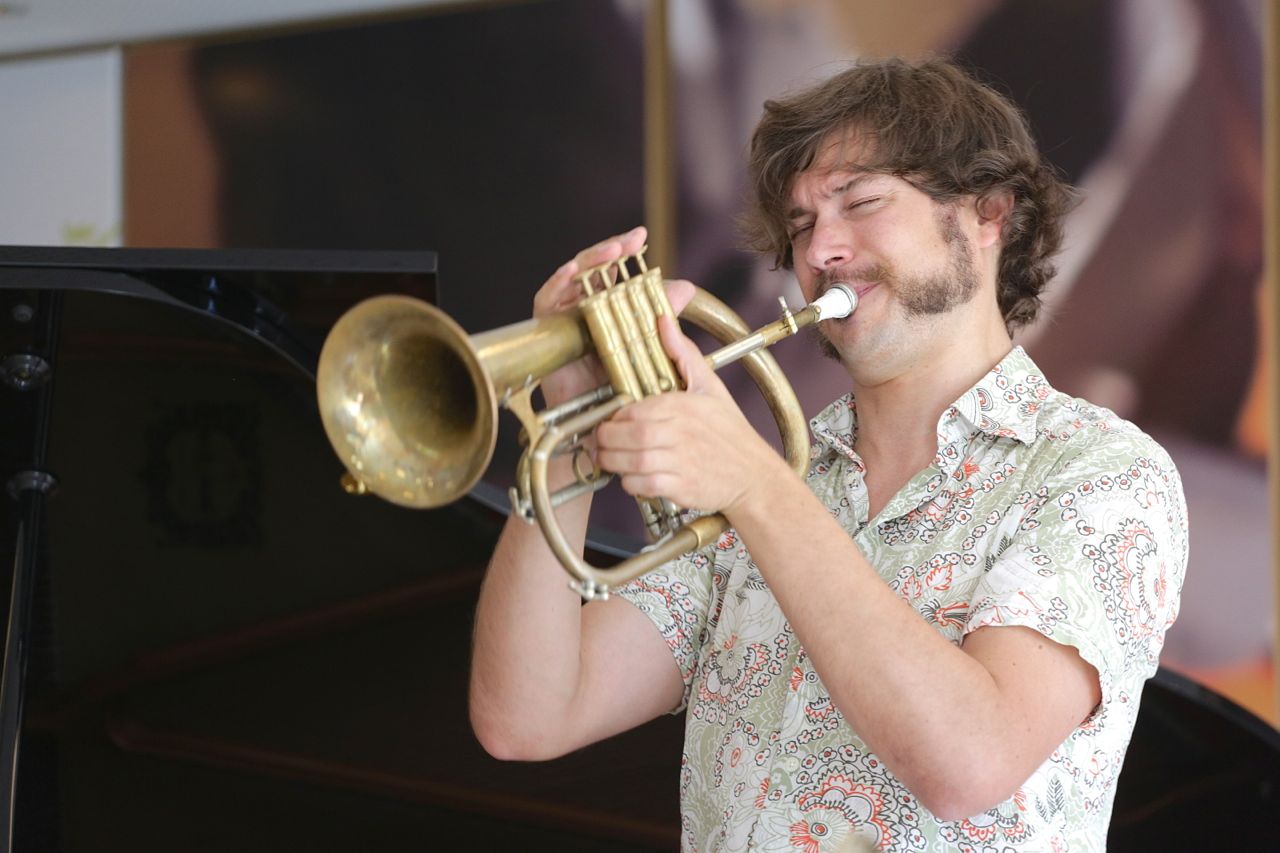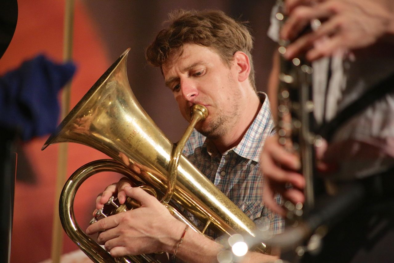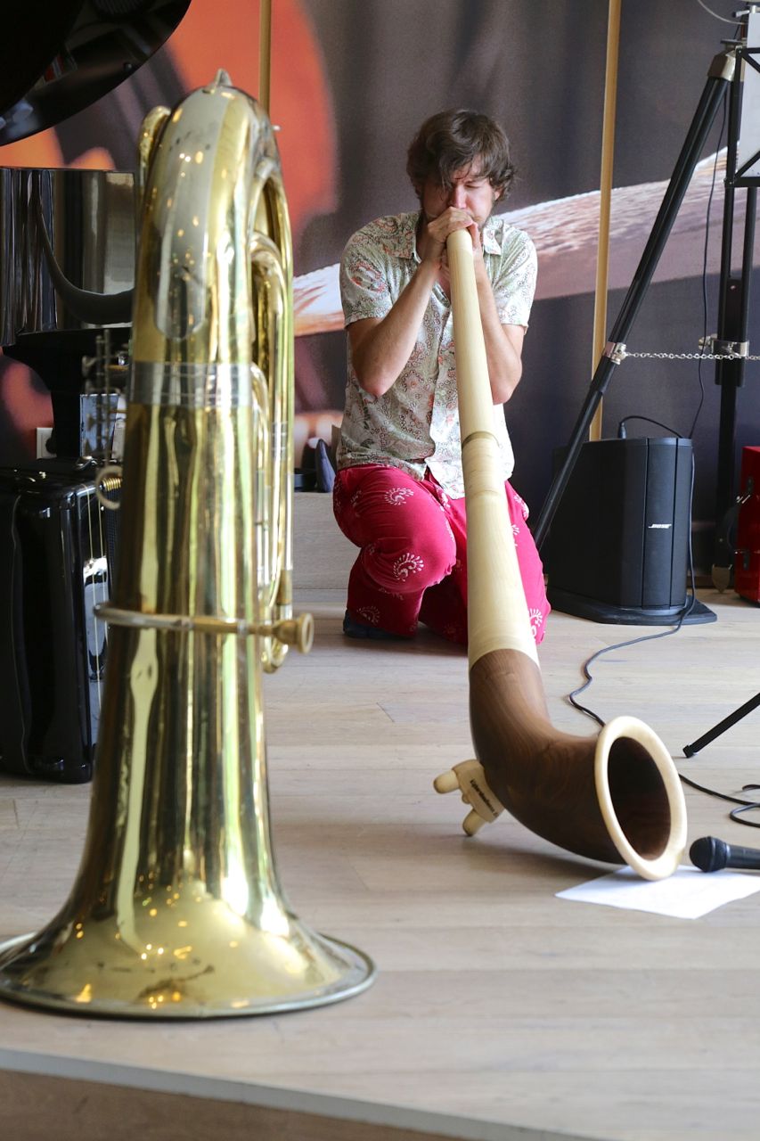 Der zweite Brass Gigant hieß Matthias Schriefl. Er griff von der Königstuba bis zum Alphorn zu diversen Varianten der Instrumentenfamilie und empfahl sich in zwei Projekten darüber hinaus auch als inspirierter Improvisator und sperriger Humorist aus dem Geiste des Musikantischen. Ein Konzert brachte ihn mit dem Streichtrio Netmakisum aus der Steiermark zusammen, drei Musikerinnen mit ähnlichem Spaß an der Relativierung von gestalterischen Gewohnheiten, wie er ihn selbst hatte. Das andere war eine Premiere der Zusammenarbeit mit dem Tiroler Pianisten Christian Wegscheider, dessen pointiert reduzierte Spielweise sich gut mit den Linien der Blasinstrumente ergänzte. In beiden Fällen war die Musik hedonistisch hybrid, eine rasante Mixtur von Einflüssen aus diversen Sphären. Wer bislang zweifelte, dass es so etwas wie Alpenjazz gebe, der konnte am Achensee sich eines Neuen belehren lassen.