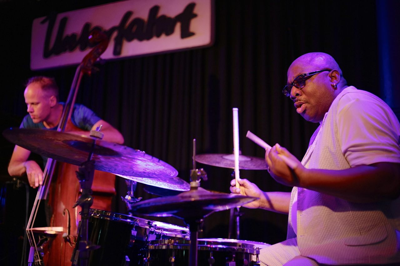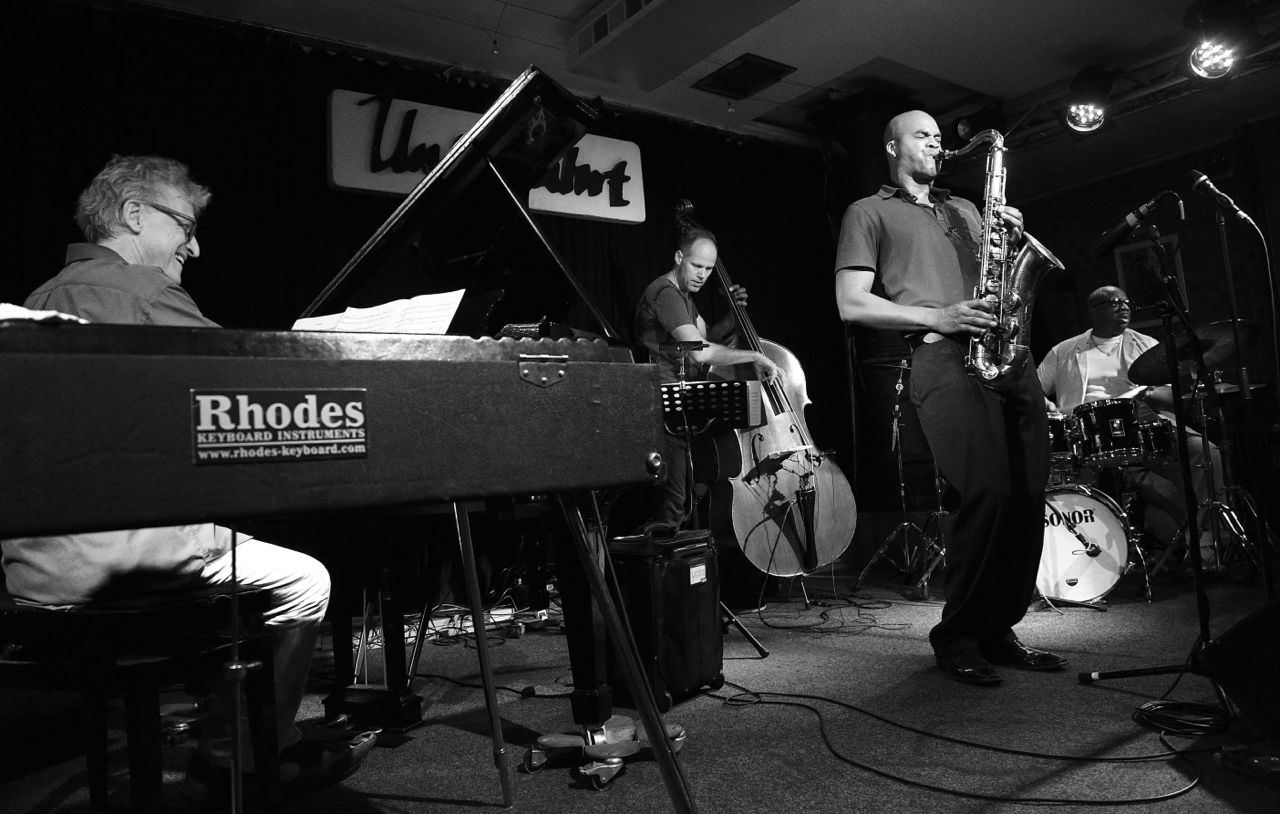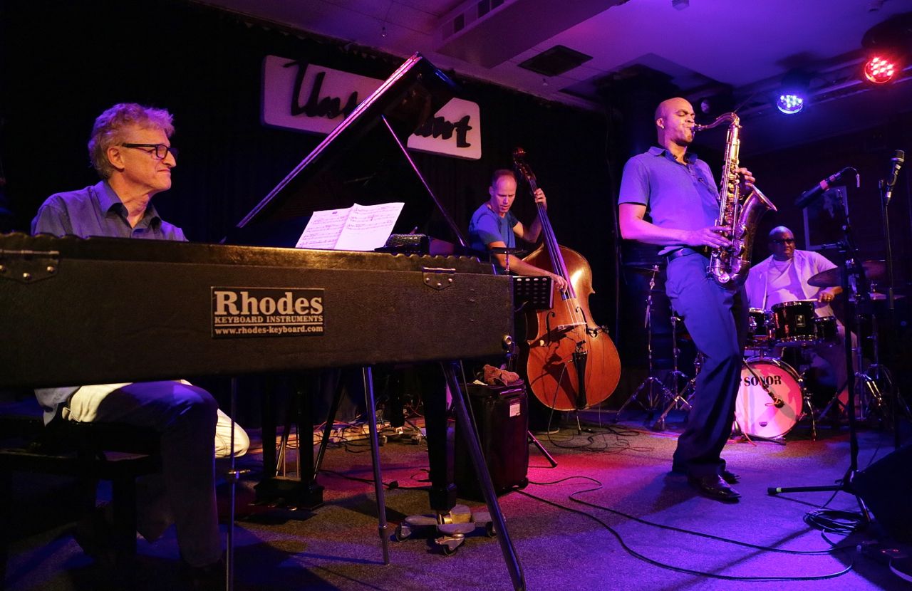 Fotos von Ralf Dombrowski – Am 13./14. August 2015 startete das Wayne Escoffery Quartet seine kleine Europatour in München in den Unterfahrt mit den einzigen beiden Deutschlandkonzerten. Besetzung: Neben Escoffery selbst David Kikoski (Klavier / Rhodes), Ralph Peterson (Drums) und Stefan Lievestro als Ersatz für den verhinderten Ugonna Ukegwo. Die Musik: hardboppig elegant, stellenweise beinahe übervoll, was an den Vieltönern Kikoski und Peterson lag, die in ihrer Gestaltungslust kaum zu bremsen waren. Escoffery wiederum glänzte durch einen ebenso eleganten wie geschmeidigen Ton und die Fähigkeit, seiner Energien enorm umsichtig und pointiert zuspitzen zu können. Gepflegte, geschmackvolle Musik also unterm Strich, die vor allem den Bandleader als Gentleman des coltranesken Spiels hervorhob.