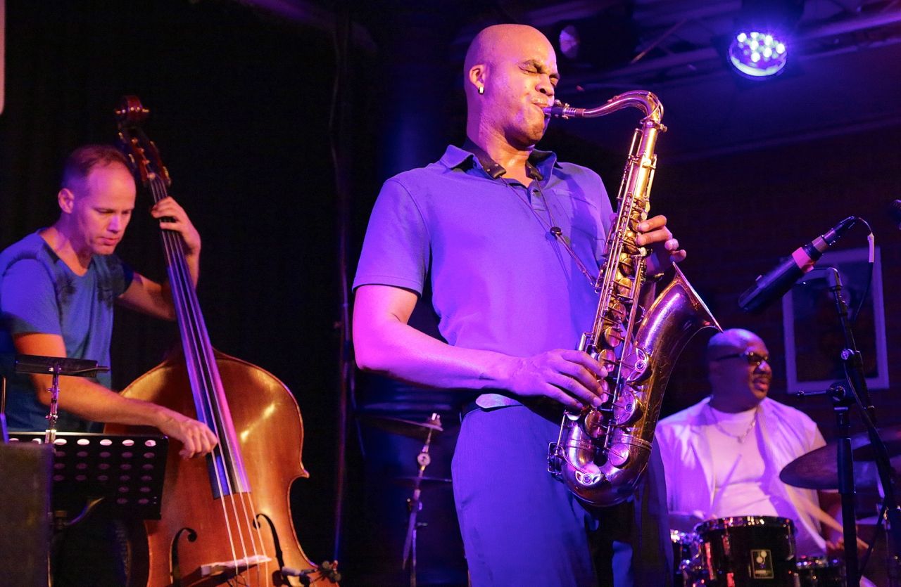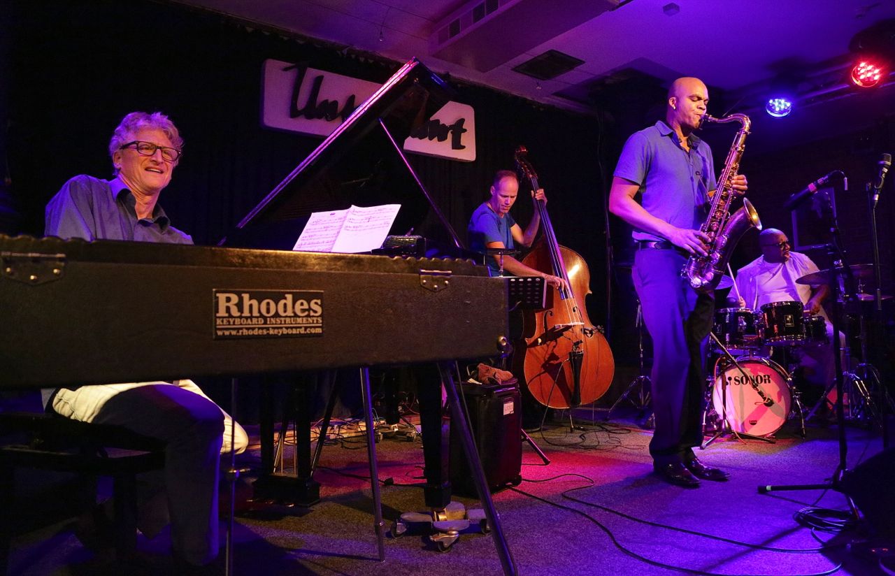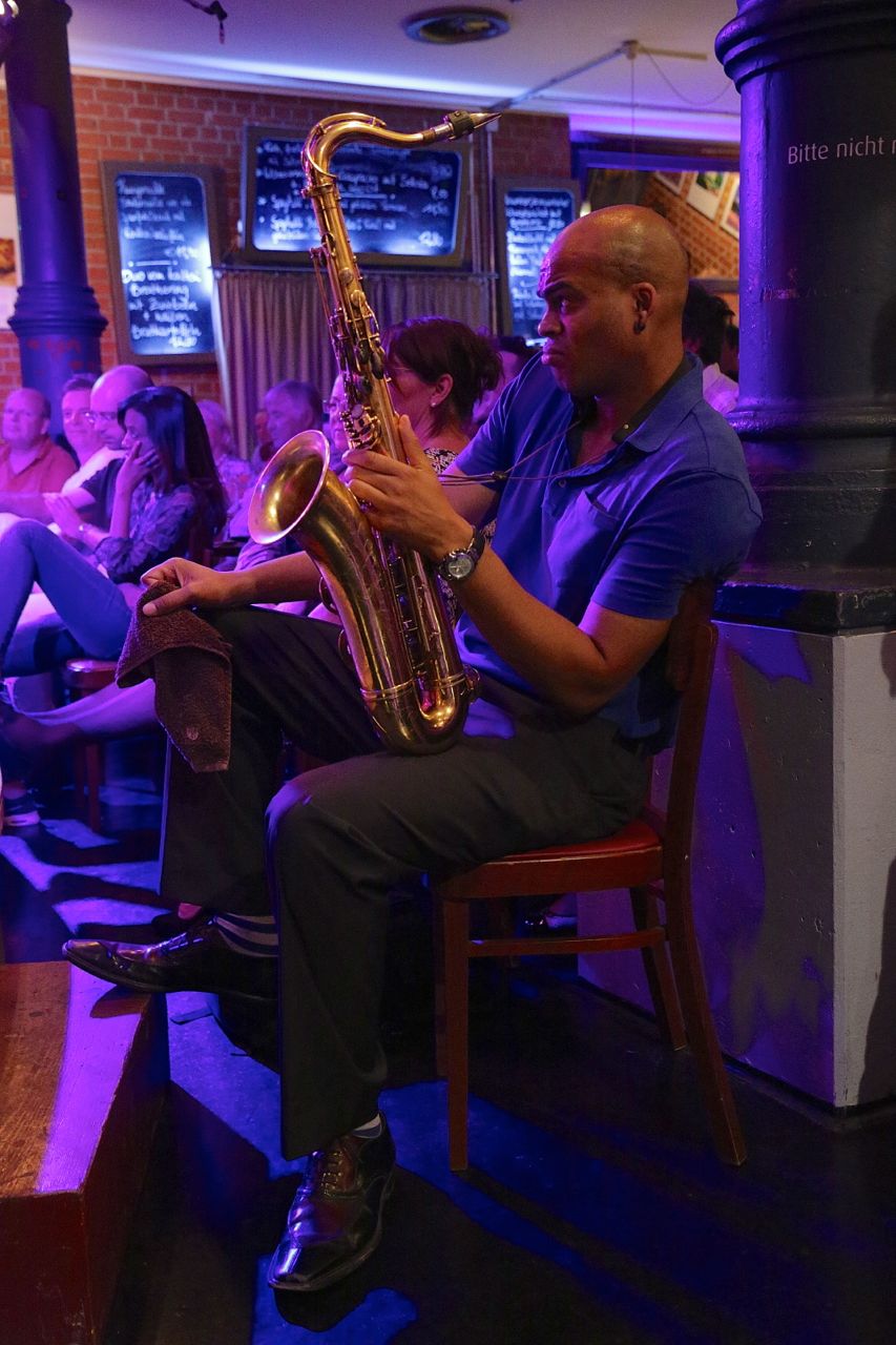 Fotos von Ralf Dombrowski – Am 13./14. August 2015 startete das Wayne Escoffery Quartet seine kleine Europatour in München in den Unterfahrt mit den einzigen beiden Deutschlandkonzerten. Besetzung: Neben Escoffery selbst David Kikoski (Klavier / Rhodes), Ralph Peterson (Drums) und Stefan Lievestro als Ersatz für den verhinderten Ugonna Ukegwo. Die Musik: hardboppig elegant, stellenweise beinahe übervoll, was an den Vieltönern Kikoski und Peterson lag, die in ihrer Gestaltungslust kaum zu bremsen waren. Escoffery wiederum glänzte durch einen ebenso eleganten wie geschmeidigen Ton und die Fähigkeit, seiner Energien enorm umsichtig und pointiert zuspitzen zu können. Gepflegte, geschmackvolle Musik also unterm Strich, die vor allem den Bandleader als Gentleman des coltranesken Spiels hervorhob.
