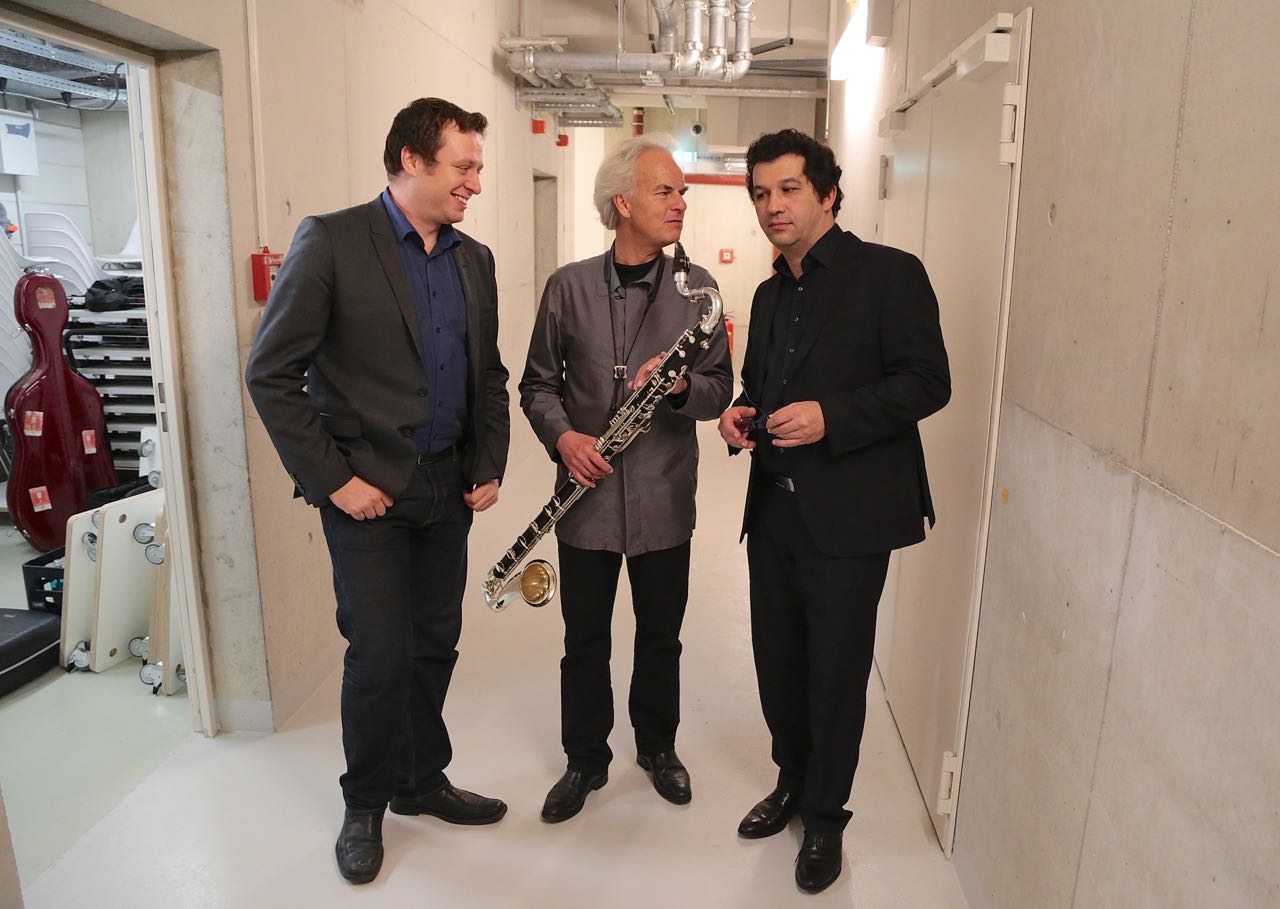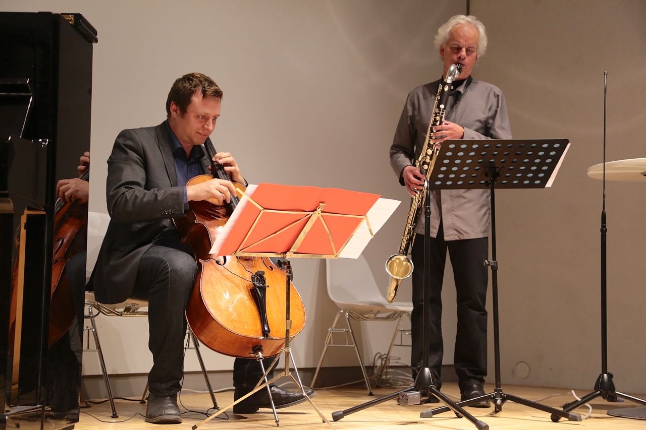 Gestern beleuchteten Tizian Jost (Vibraphon/Klavier), Michael Riessler (Bassklarinette) und Eugen Bazijan (Violoncello) klassische Komponisten der Weimarer Republik und ihr Verhältnis zum Jazz. Im Fokus standen jazzinspirierte Arbeiten von Paul Hindemith, Ernst Krenek, Erwin Schulhoff – „To Make A Lady Out Of Jazz“ und 3. Kurt Weill.