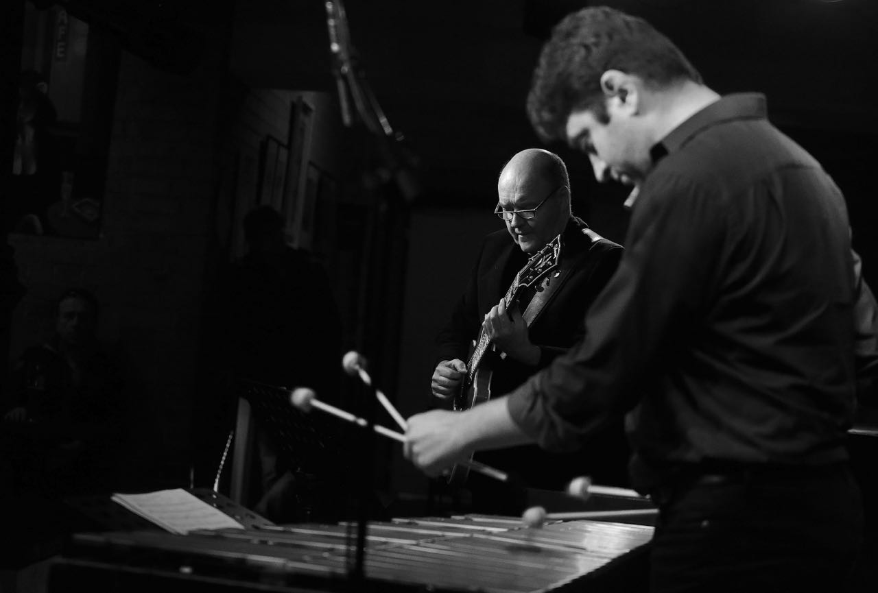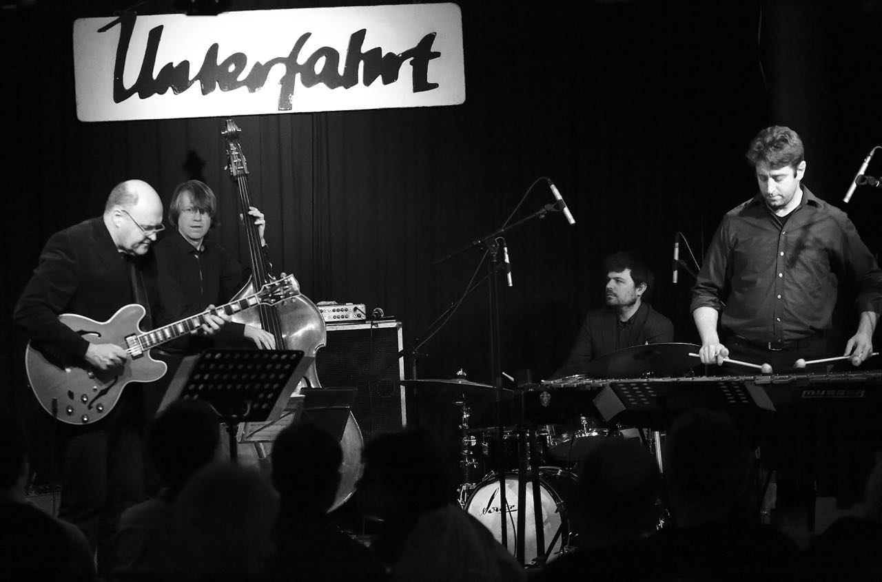 Henning Sieverts Quartett, Henning Sieverts (b), Tim Collins (vib), Peter O’Mara (g), Mattthias Gmelin (dr), Unterfahrt München, Foto Ralf Dombrowsk