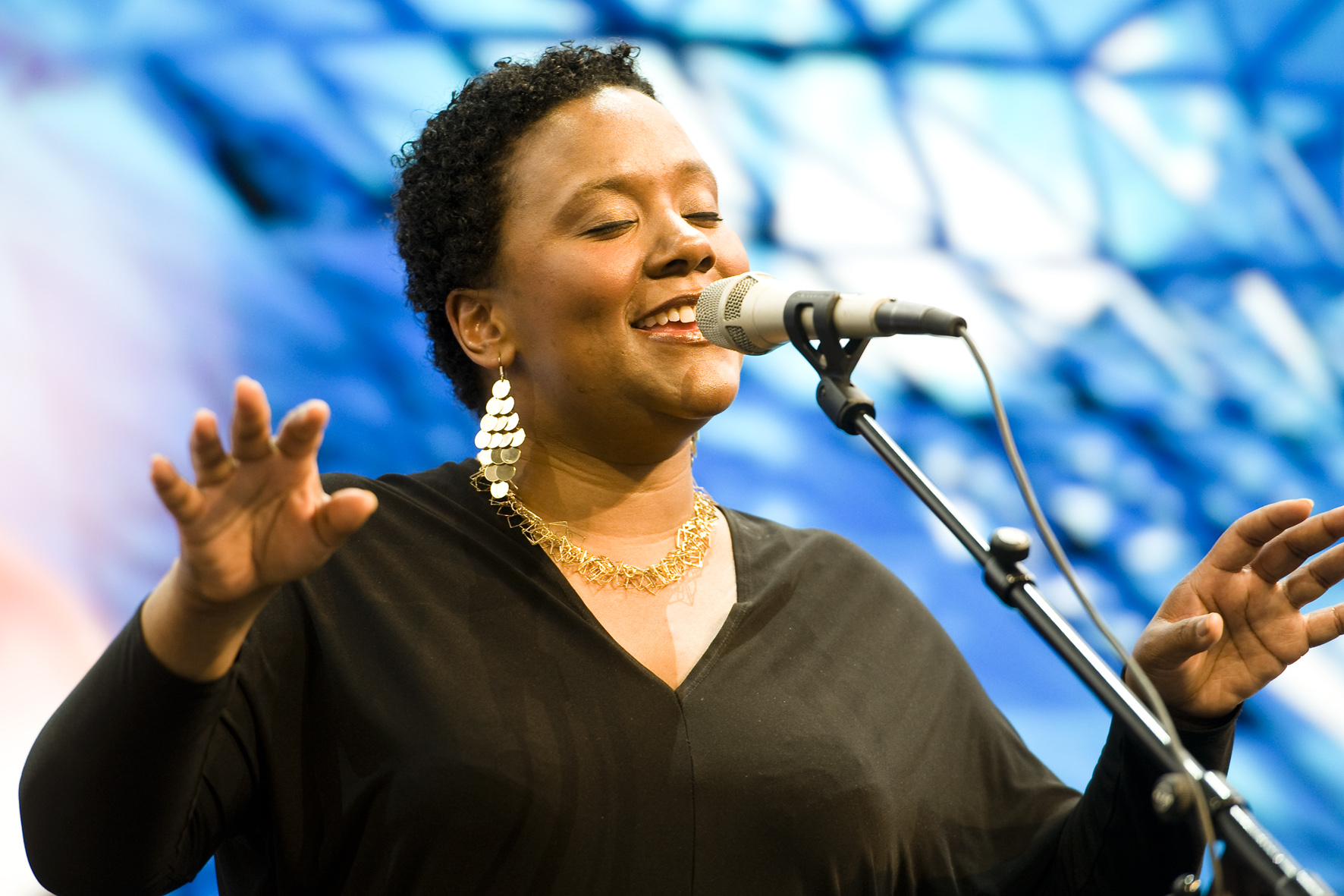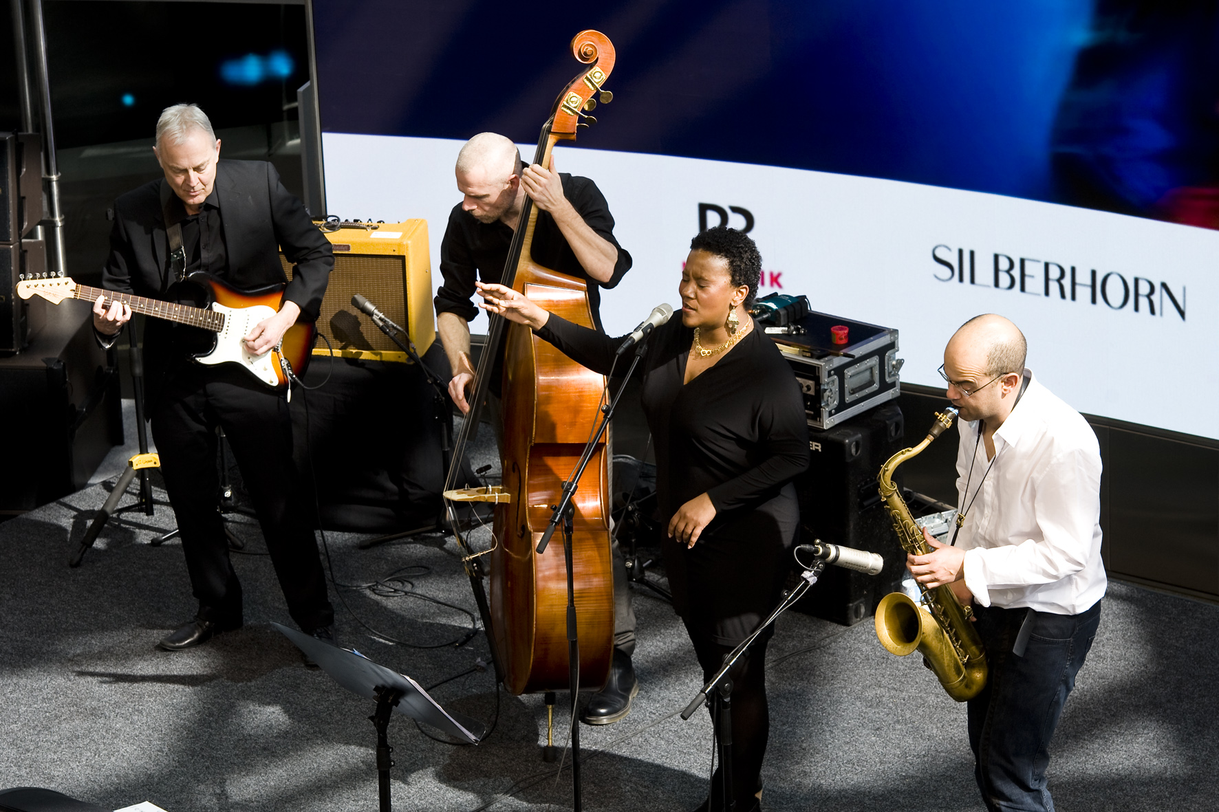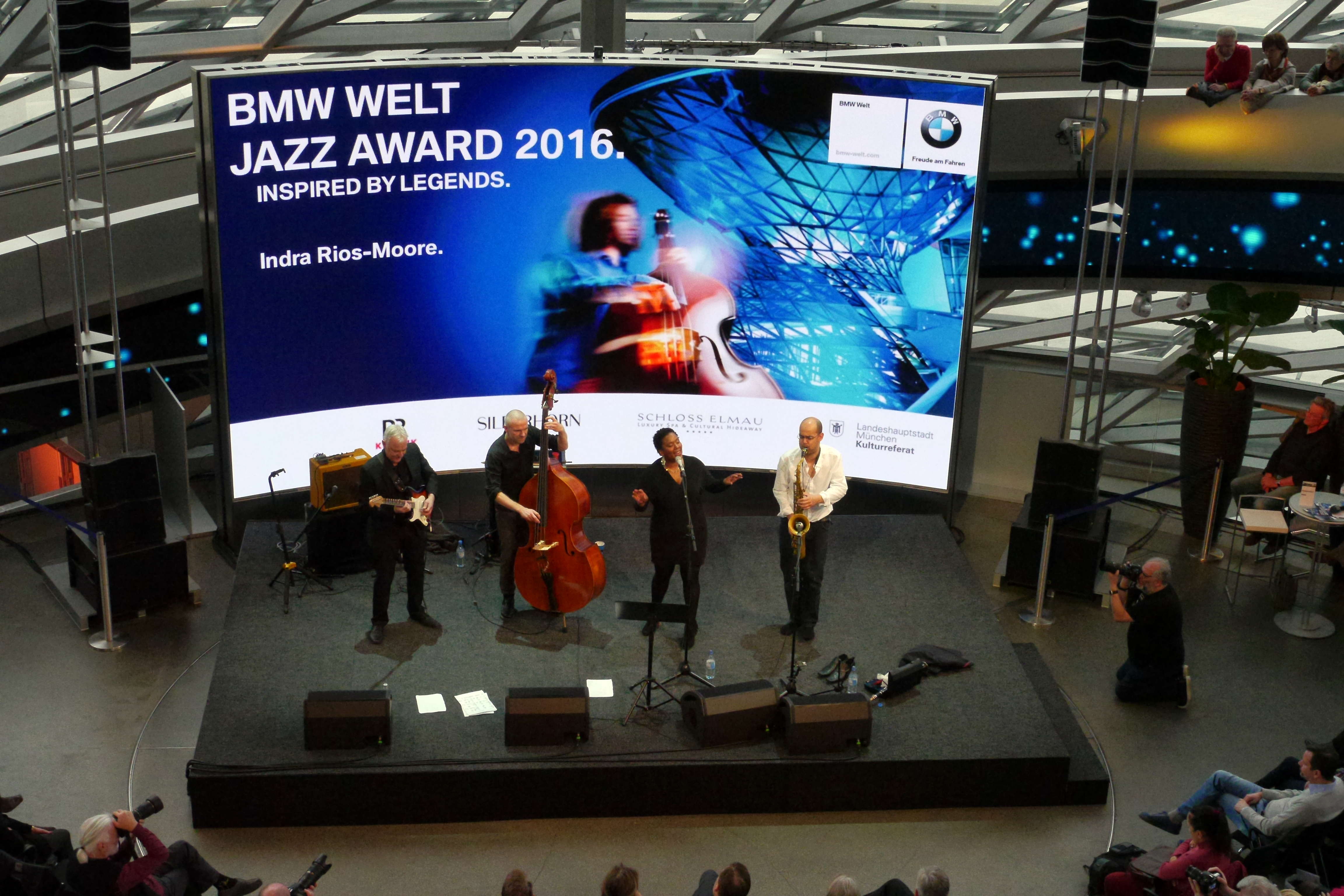 Covern war gestern: Was Indra Rios-Moore und ihr schlagzeugloses Quartett mit den Songs von Neil Young, David Bowie, Johnny Hartmann, Joni Mitchell, Nancy Wilson und Pink Floyd machte, war hohe Jazz-Kunst. Selbst die abgenudelte Jazz-Hymne „What a Wonderful World“ klang wie neu. Thomas J. Krebs und Susanne van Loon liefern die fotografischen Impressionen dieses ungewöhnlichen Konzertes im Rahmen des BMW Welt Jazz Awards. Lesen Sie demnächst mehr in der Kritik von Ssirus W. Pakzad unter www.nmz.de.