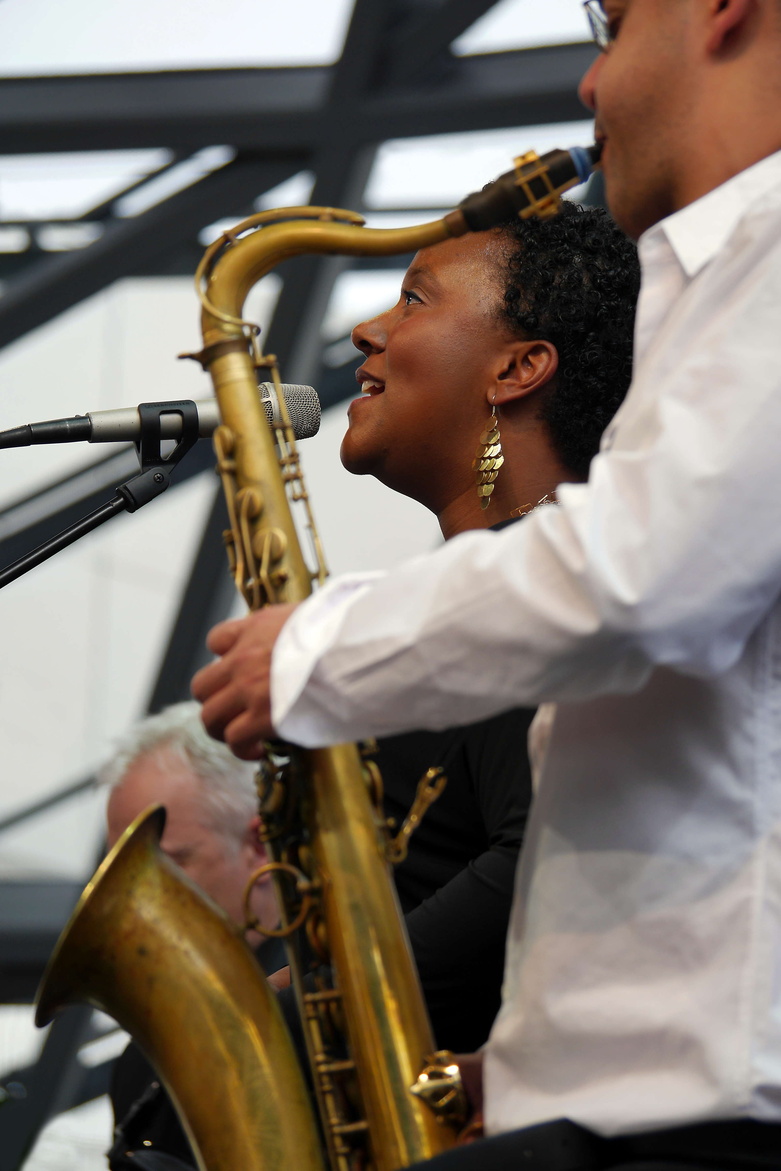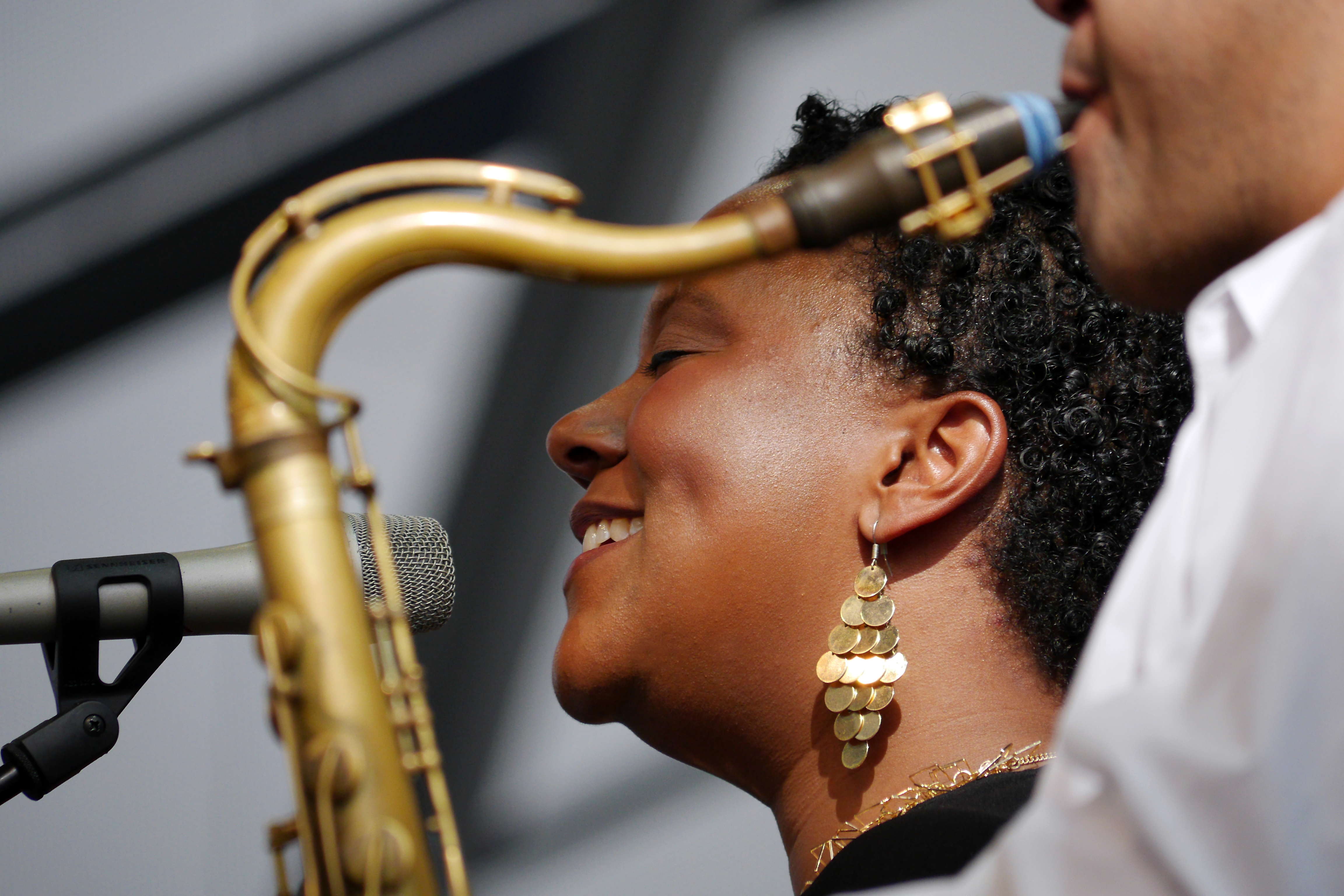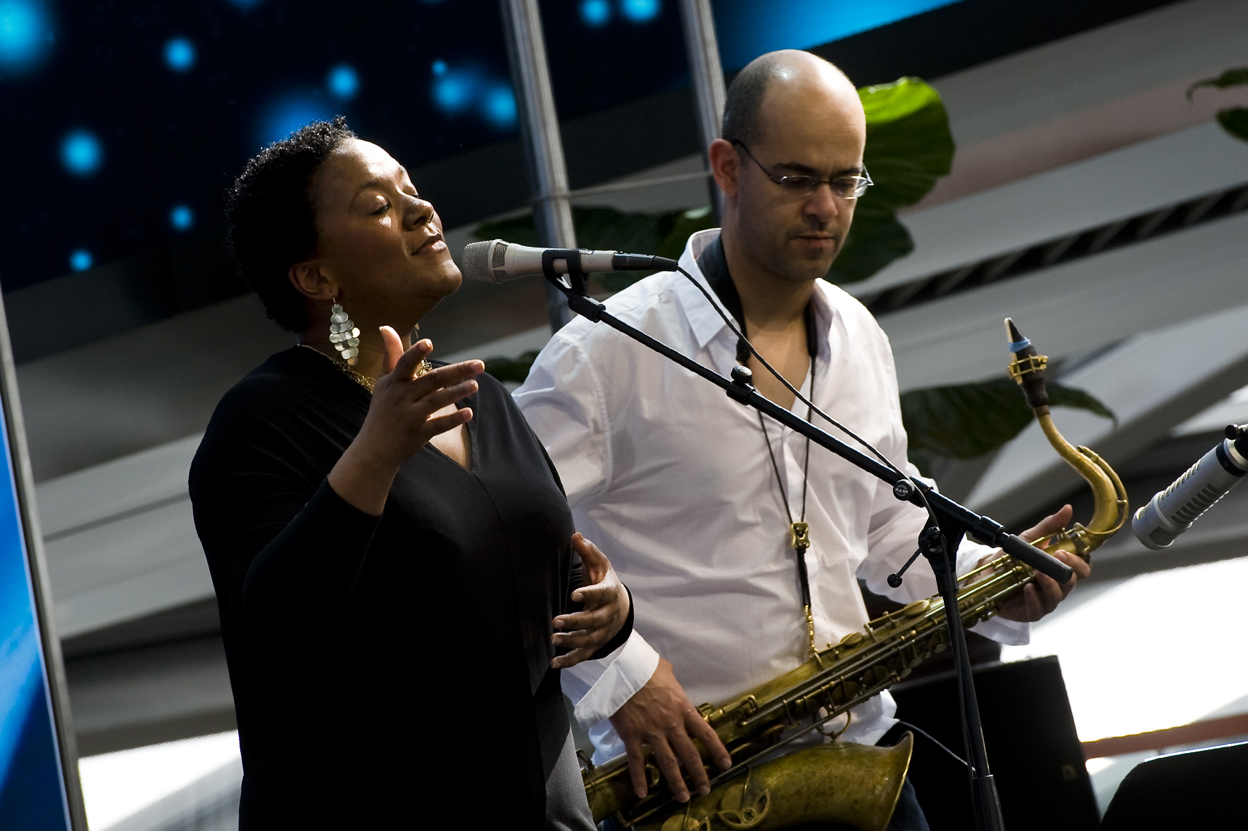 Indra Rios-Moore und Saxophonist Benjamin Traerup. Foto: Susanne van Loon