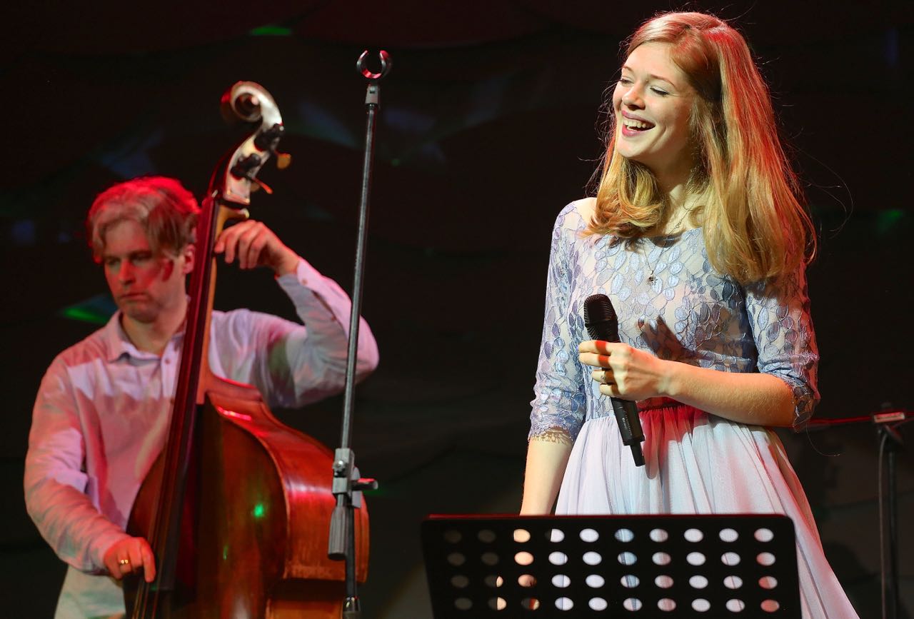 Aber es ging auch anders. So schwor die Grupe Jazz Island ein gutes Dutzend Teenager auf ein Niveau des A Cappella Gesangs ein, das dem Land der Stimmen und Chöre Litauen alle Ehre machte. Der Arrangeur und Bandleader Liutauras Janusatis dokumentierte mit großem, mit zusätzlichem Oktett und Sängerin sich auf der Bühne austauschenden Ensemble einen grandios kraftvollen Zusammenhang der Gegensätze. Und auch Talente wie die junge Sängerin Rita Jakulyte gab es zu entdecken, die zusammen mit ihrer Mitstudenten Marija Grabštaité und einem Trio um deren Professor am Konservatorium von Vilnius Arturas Anusauskas aus tiefster Überzeugung und Musikalität die Freude an der modern jazzigen Ausdruckskraft pflegte.
