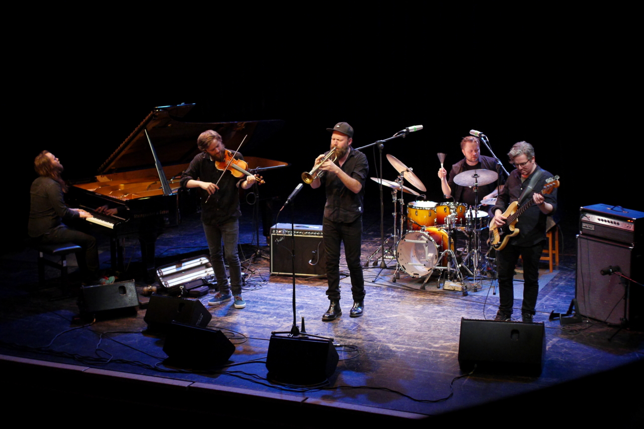 Impressionen des Konzertes von Thomas J. Krebs – Ein weiteres Highlight des skandinavischen Jazz in Landsberg. Mathias Eick präsentierte im Stadttheater sein aktuelles ECM Album „Midwest“, kam, spielte und siegte! Bereits nach dem ersten Stück hatte er das Publikum im Sturm erobert und zauberte mit Andreas Ulvo am Piano, seinem Violinsten Erlend Viken, Audun Erlien am Bass und dem Schlagzeuger Torstein Lofthus eine unglaubliche Stimmung in den wundervollen Saal. Besonders die Klangkombination mit Vikens Violine gab dem Sound, der durch Erlien Bass erdig angetrieben und von Lofthus‘ Schlagzeug taktvoll unterstützt wurde, eine traumhafte Leichtigkeit, die durch das luzide Timbre von Eick Trompete noch verstärkt wurde. Ein wirklich ganz besonderes Konzert.