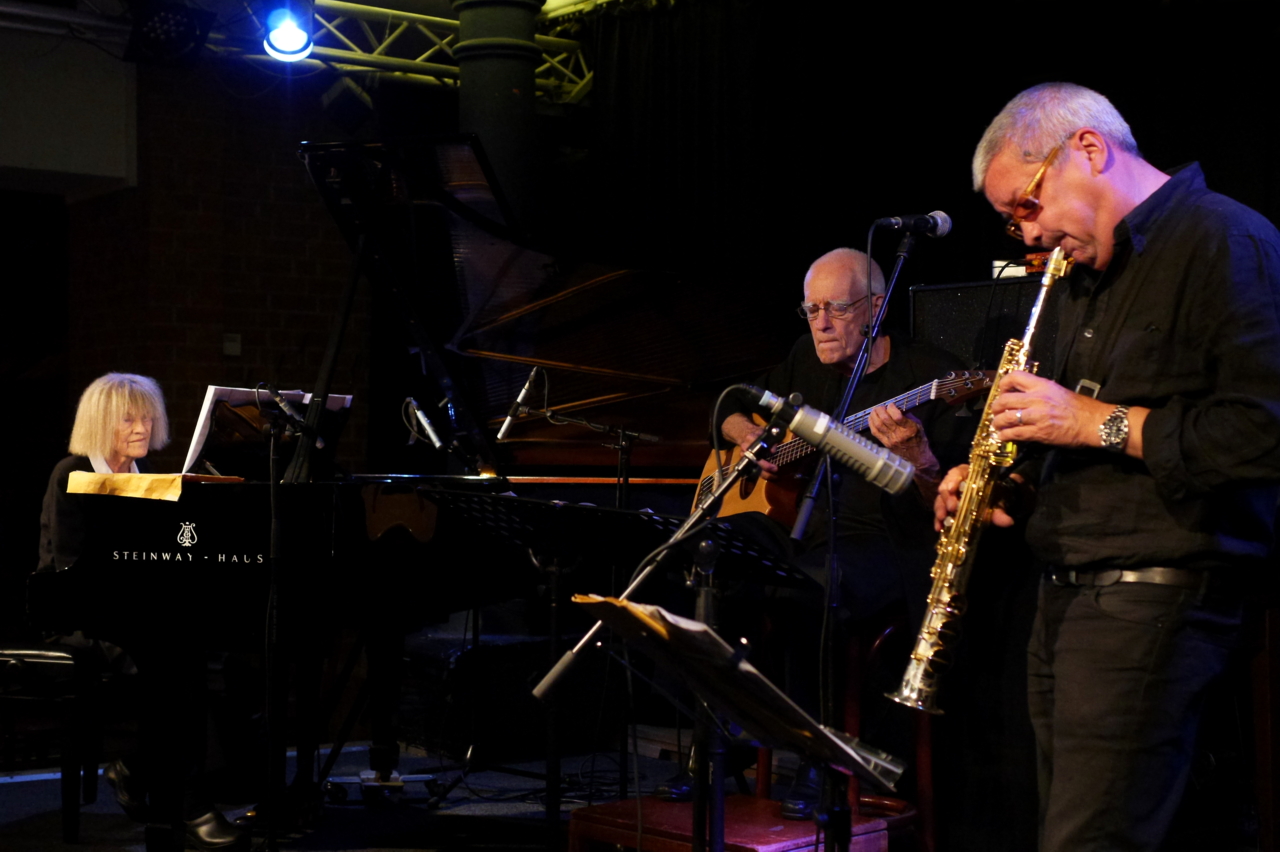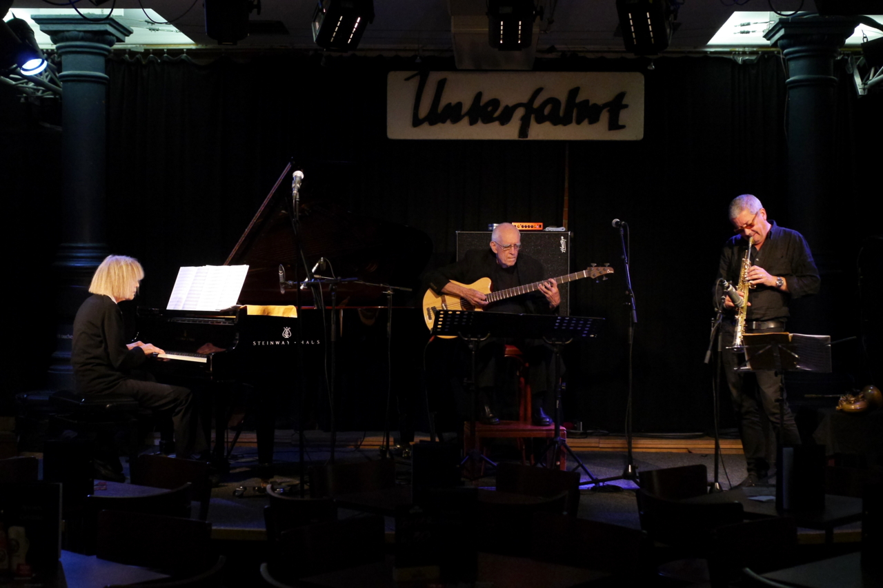 Letzten Donnerstag (14.7.2016) in der restlos ausverkauften Münchner Unterfahrt: 214 Jahre Jazzerfahrung auf der Bühne mit Carla Bley, Steve Swallow und Andy Sheppard, jenem Trio, das vor mittlerweile 22 Jahren(!) in dieser Besetzung ihr erstes, sensationelles Album „Songs with Legs“ einspielte. Vom ersten Ton an zogen die drei das Publikum in ihren Bann und verwandelten den Club in einen kammermusikalischen Raum. Carla Bley’s pointiert typische Harmonien am Piano, der singend swingende Bass von Steve Swallow dazu und das melodisch tönende Saxophon von Andy Sheppard sorgten für ungeteilte Aufmerksamkeit der Zuhörer, die nach 2 Sets mit dem wunderbaren Stück „Lawns“ als Zugabe belohnt wurden. Eine tiefe Verbeugung vor drei Meistern ihrer Zunft – das war eines DER musikalischen Highlights dieses Jahres in der Unterfahrt!