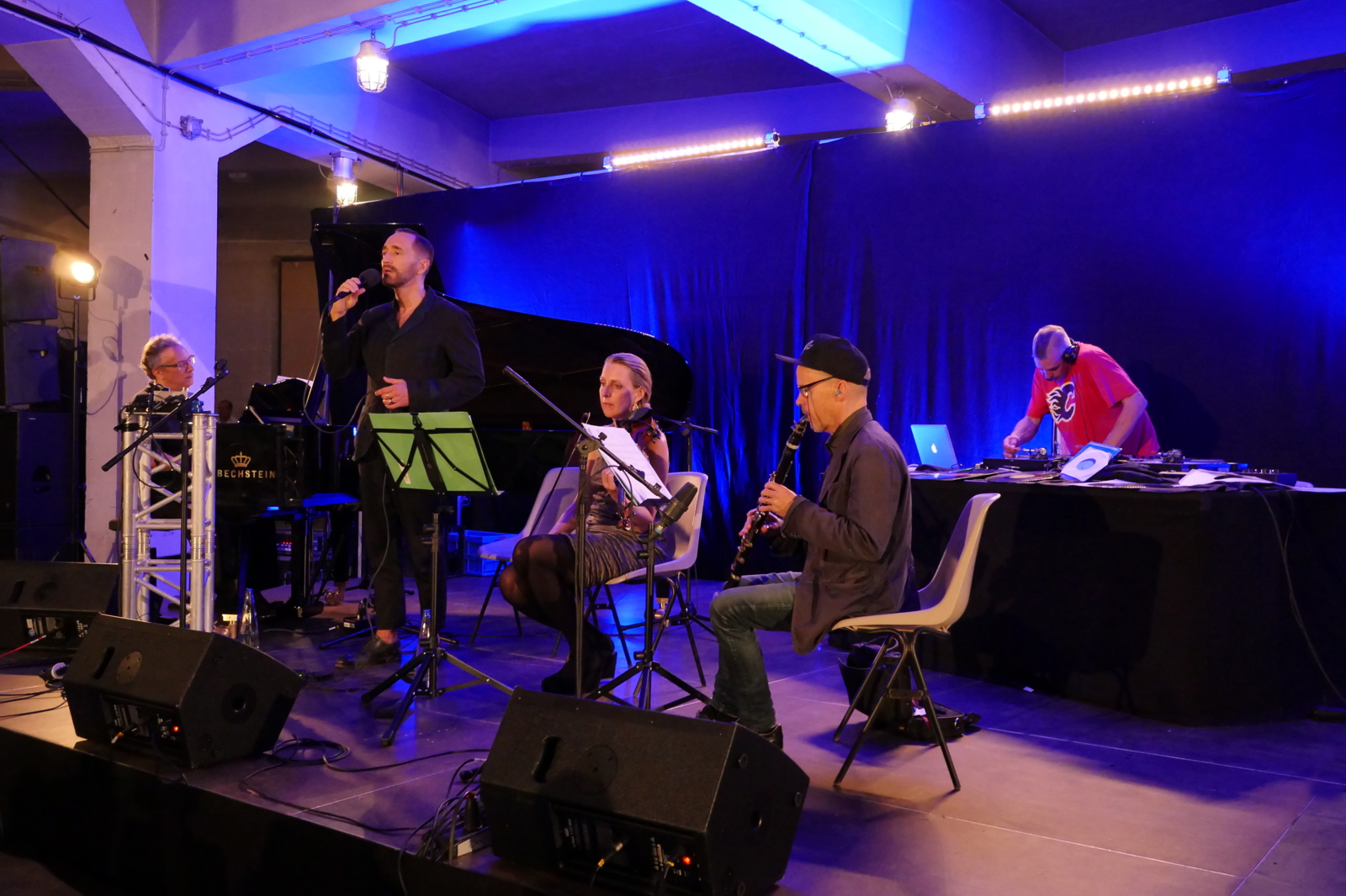 Unter dem imposanten Gaskessel des ehemaligen Augsburger Gaswerks befindet ein Raum, der anlässlich dieses besonderen Tages für ein spezielles Konzert genutzt wurde: Pianist Uri Caine und Vokalist Theo Bleckmann traten dort zusammen mit Chris Speed an der Klarinette, der Violinistin Joyce Hammann und DJ Olive mit einem -zur Stadt Augsburg passenden- Brecht/Eisler/Weill Programm auf. Ob Bilbao Song, Als ich dich gebahr, Alabama Song, Es regnet, Kanonensong oder als Zugabe German Misere … die Musiker begeisterten vom ersten Ton an und verwandelten den schmucklosen Raum in einen atmosphärischen Konzertsaal. Der Klangkörper überzeugte, war in sich geschlossen und fesselte die Zuhörer von der ersten bis zur letzten Minute.