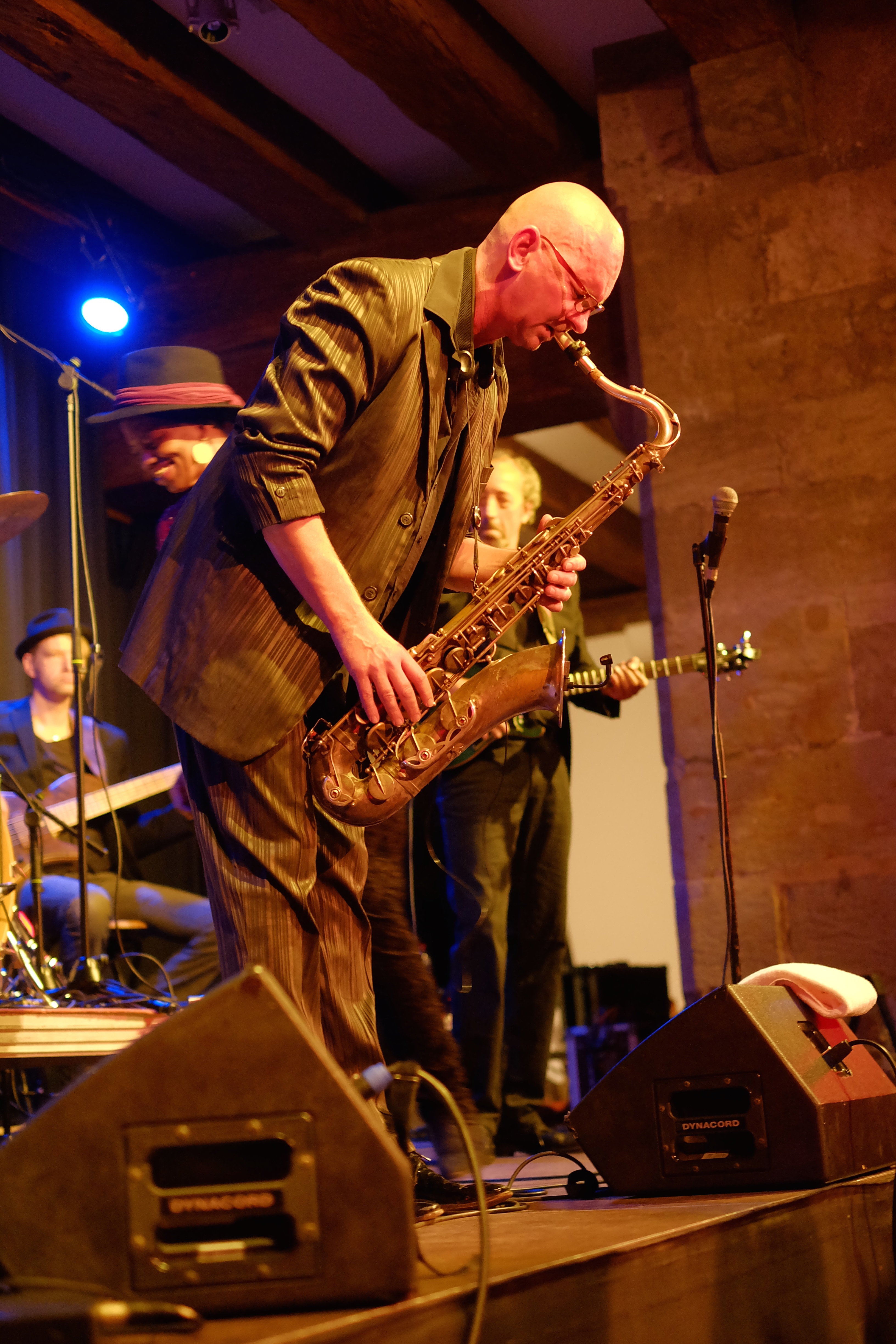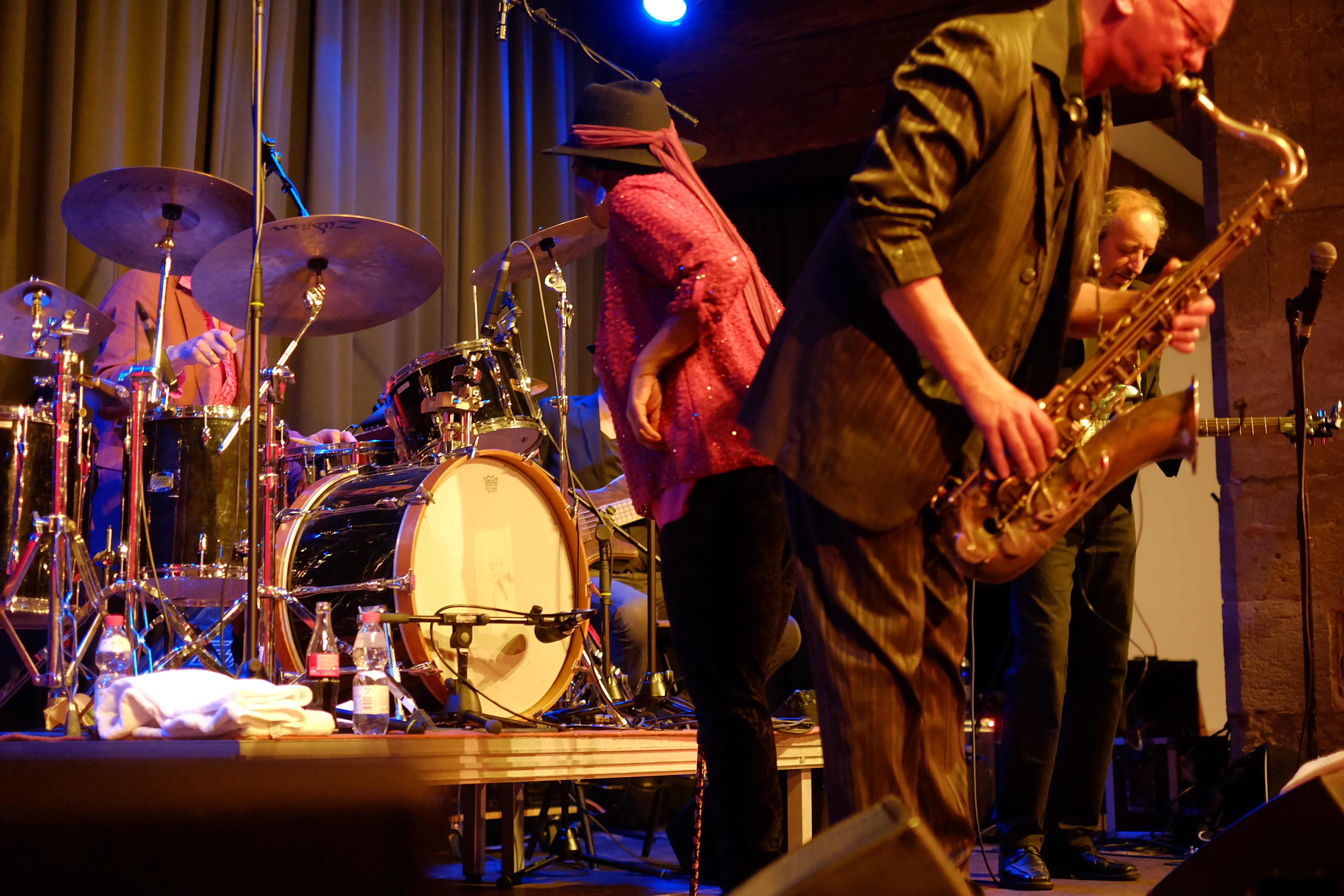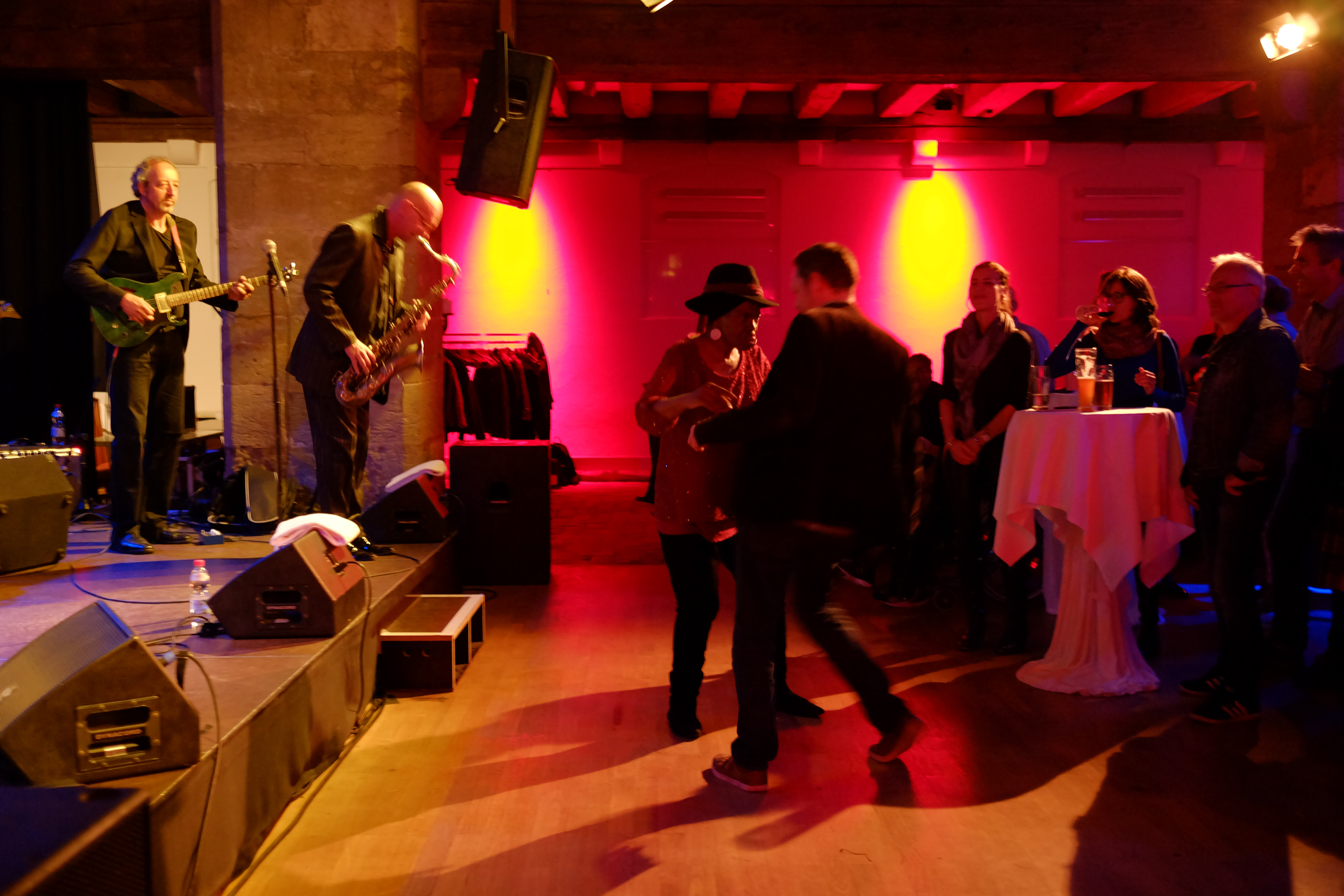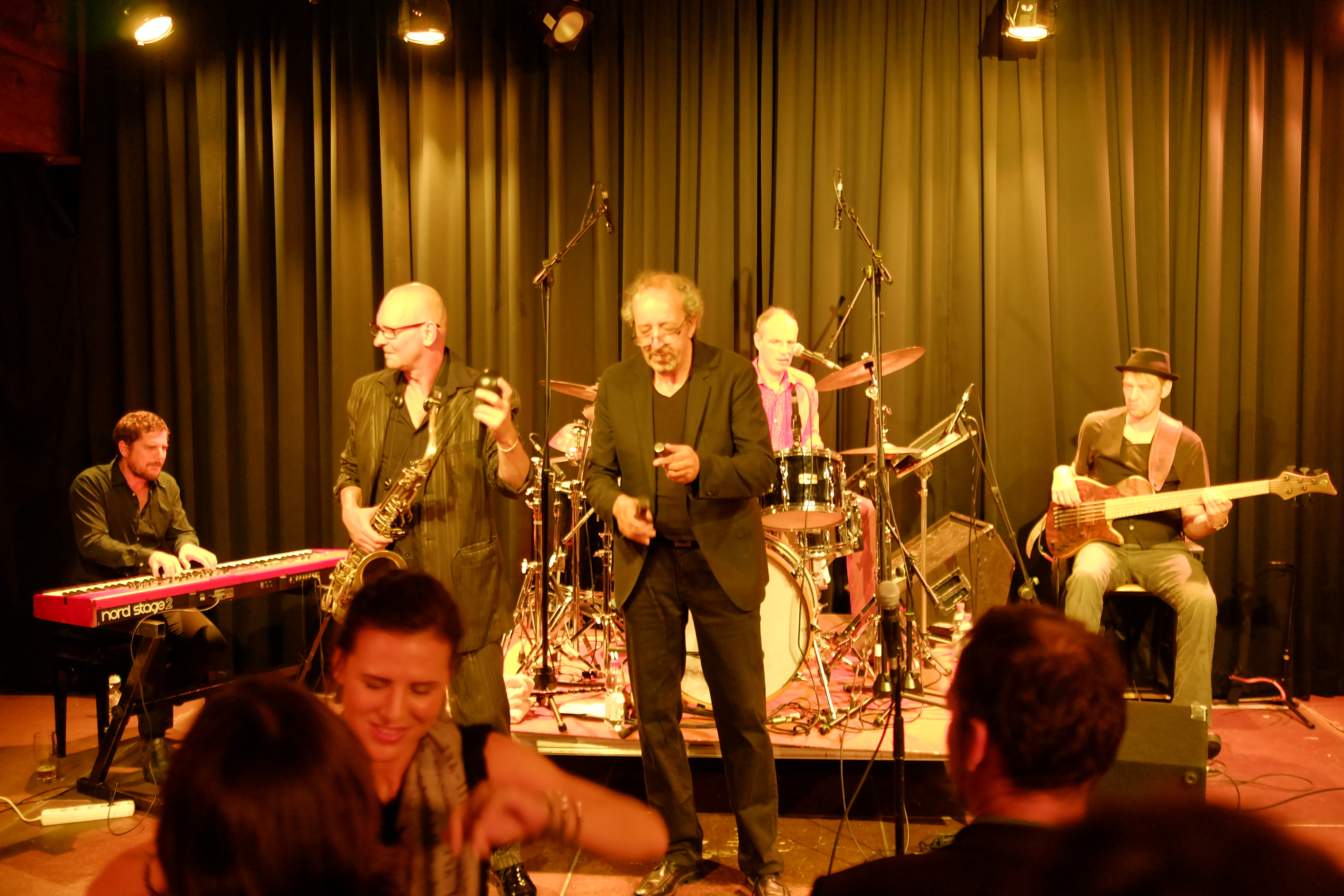 Das hat von Anfang bis Ende sowas von gefetzt! Die Nujazz-Formation „Club des Belugas“ aus Wuppertal brachten den Saal im Leeren Beutel am 6. Oktober zum Kochen. Gleich während des zweiten Liedes forderte Sängerin Brenda Boykin einen Herrn zum Tanzen auf. Die aufgeweckte Dame sorgte sowieso eine wunderbare Stimmung mit ihren Witzchen, Anekdoten und ungebrochener Lebensfreue – ganz abgesehen von ihrer Wahnsinnsstimme. Aber auch ihre Mitstreiter, darunter Mickey Neher am Schlagzeug, Matze Bangert, Bass, Roman Babik am Keyboard und Detlef Höller Gitarre, boten höchste inspirierte Instrumentalkunst. ug – Fotos von Dietmar Grün