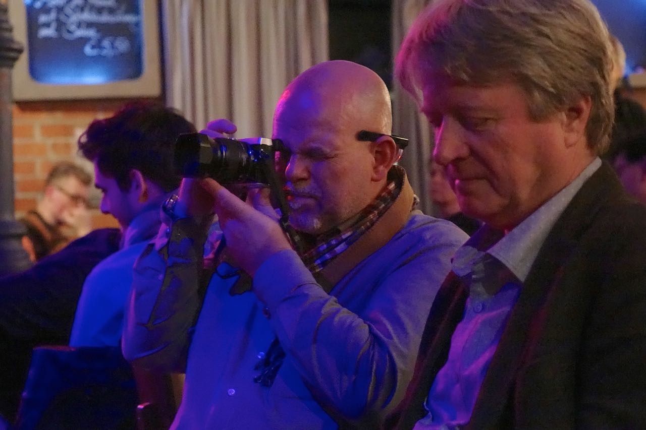 Thomas J. Krebs fotgrafiert seid genau 50 Jahren. Mit 6 Jahren bekam er seine erste Kamera geschenkt. Seitdem macht er Bilder – heute vor allem von Jazzern, seit 1992 auch für die JazzZeitung. Am vergangenen Sonntag eröffnete der Jurist seine Vernissage „Jazz – Live, Keys & Sticks, Fotografien von Thomas J. Krebs“ in der Münchner Unterfahrt. Die bis zum 3. Februar geöffnete Ausstellung zeigt Aufnahmen von Konzerten und Künstlern und zum ersten Mal auch Bilder aus Krebs Projekt „Keys & Sticks“, für welches er Künstler mit einem Mini-Piano und übergroßen Schlagzeug-Sticks ablichtete. Zur Eröffnung hielt Carsten Neff (Chefredakteur der News & Art Media Company) eine Werkeinführung, anschließend improvisierte der Pianist Cornelius Claudio Kreusch. Ralf Dombrowski hat den Abend mit der Kamera begleitet.