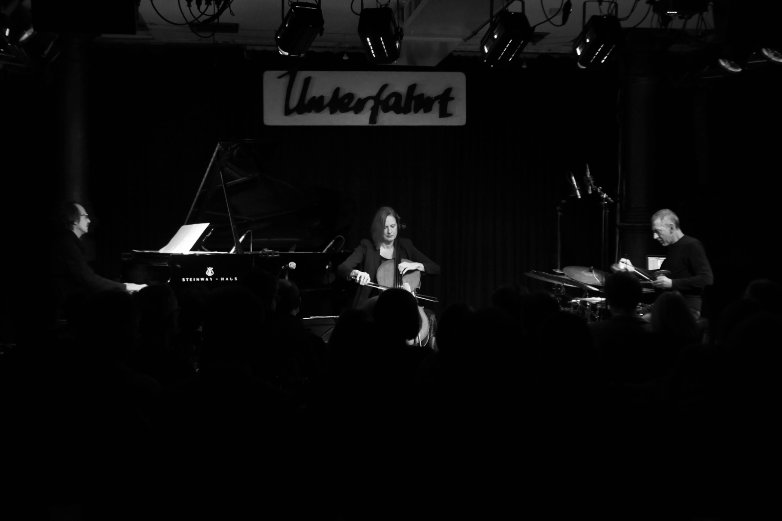 Die großartige Cellistin Anja Lechner, Maestro Francois Couturier am Piano und der Klangwerker Michele Rabbia präsentierten ihr aktuelles Programm Il Pergolese live, ohne die leider kurzfristig erkrankte Sängerin Maria Pia de Vito, in der Münchner Unterfahrt kurzerhand im Trio. Zusätzlich flossen dabei Kompositionen von Couturier oder auch Mompou mit ein; ansonsten wurde einfach improvisiert – mit Hingabe und Verve, ein wahre musikalische Freude. Immer wieder wechselten dabei klassische Momente mit überraschenden, freien Klängen, die Raum boten für die Musiker und den Klang ihrer Instrumente. Text & Fotos: Thomas J. Krebs