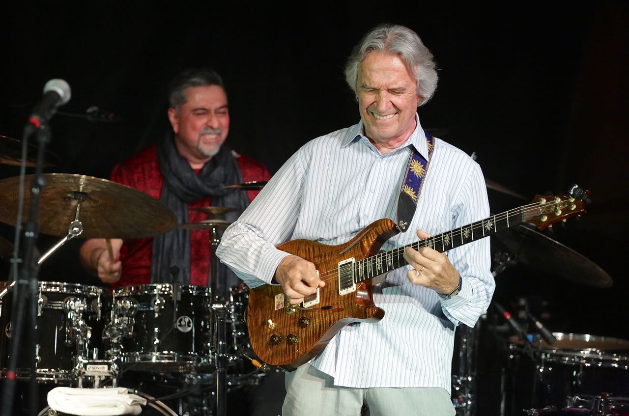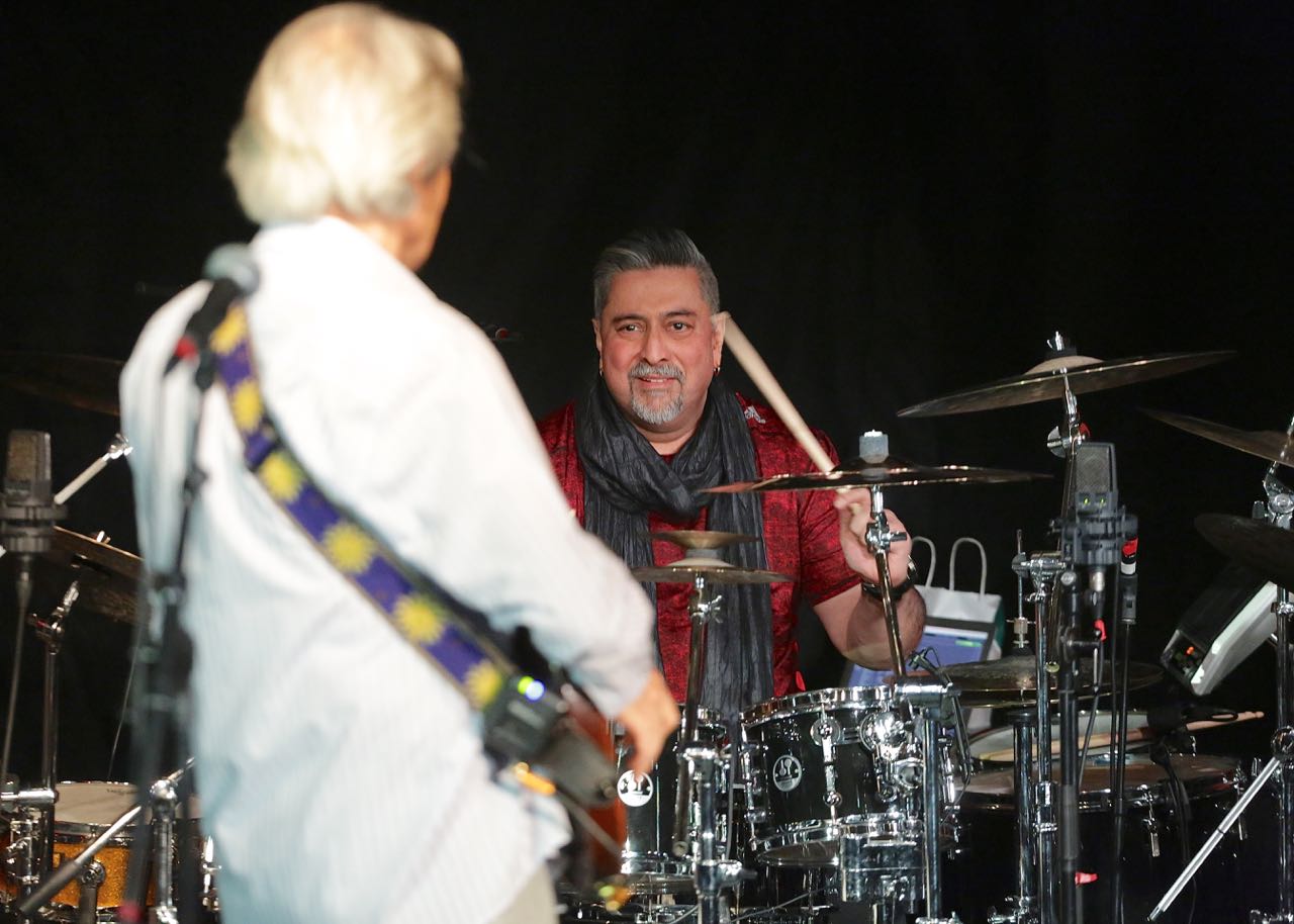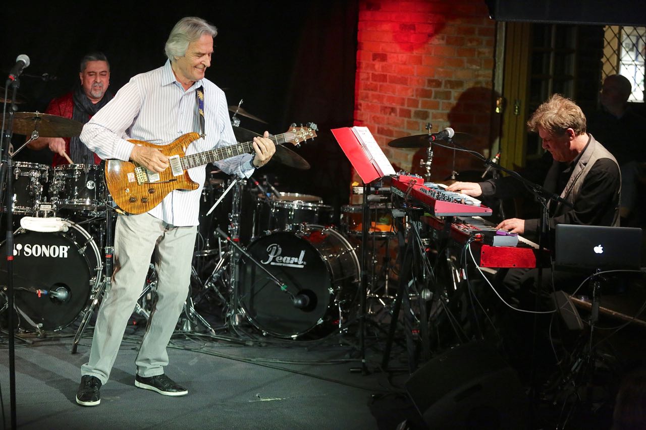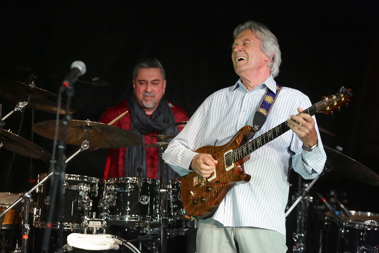 John McLaughlin (g), Etienne M’Bappe (b). Gary Husband (keys, dr), Ranjit Barot (dr), Bayerischer Hof München, Foto Ralf Dombrowski