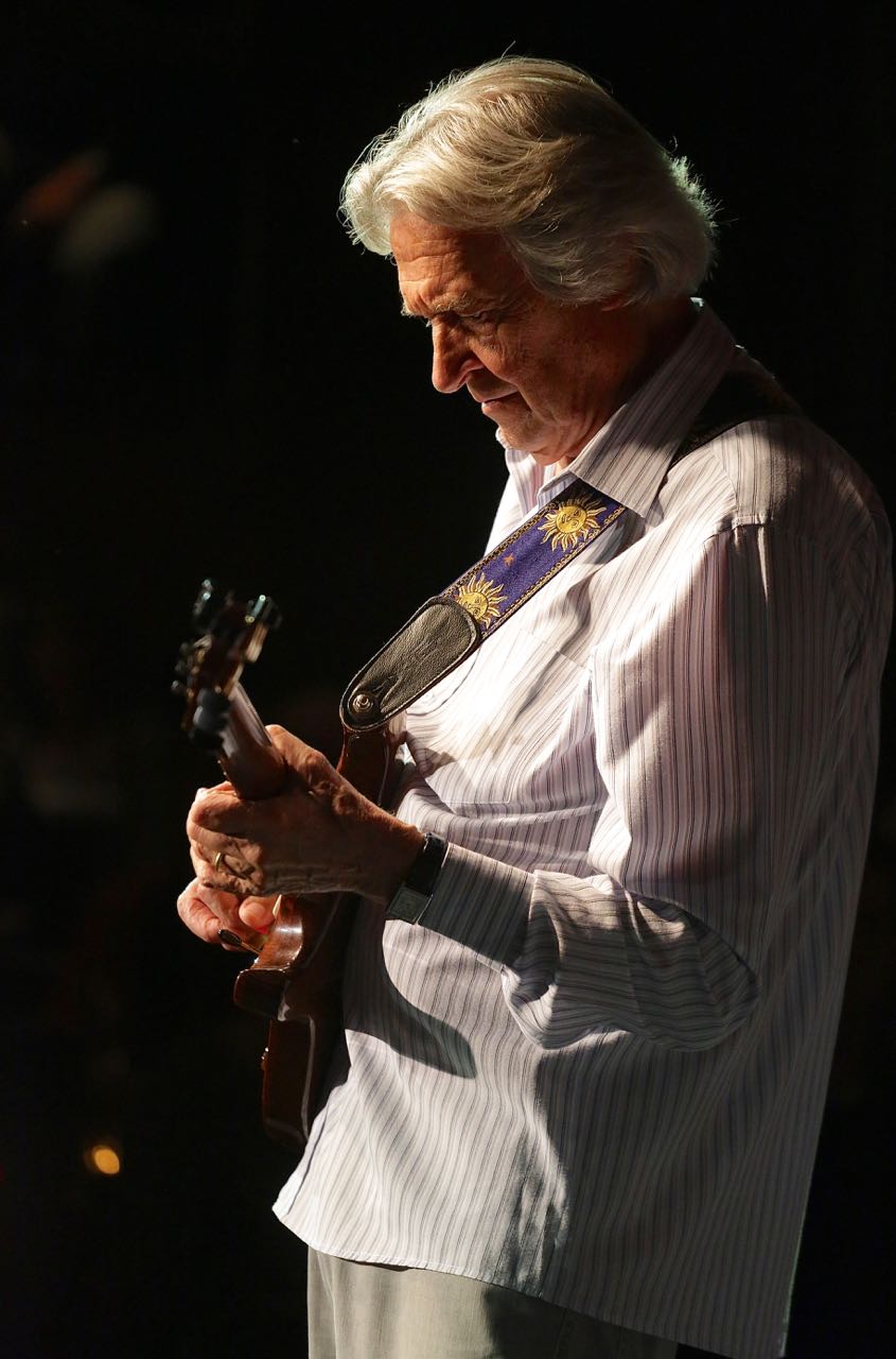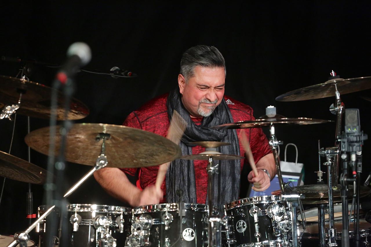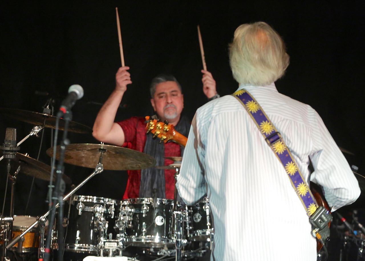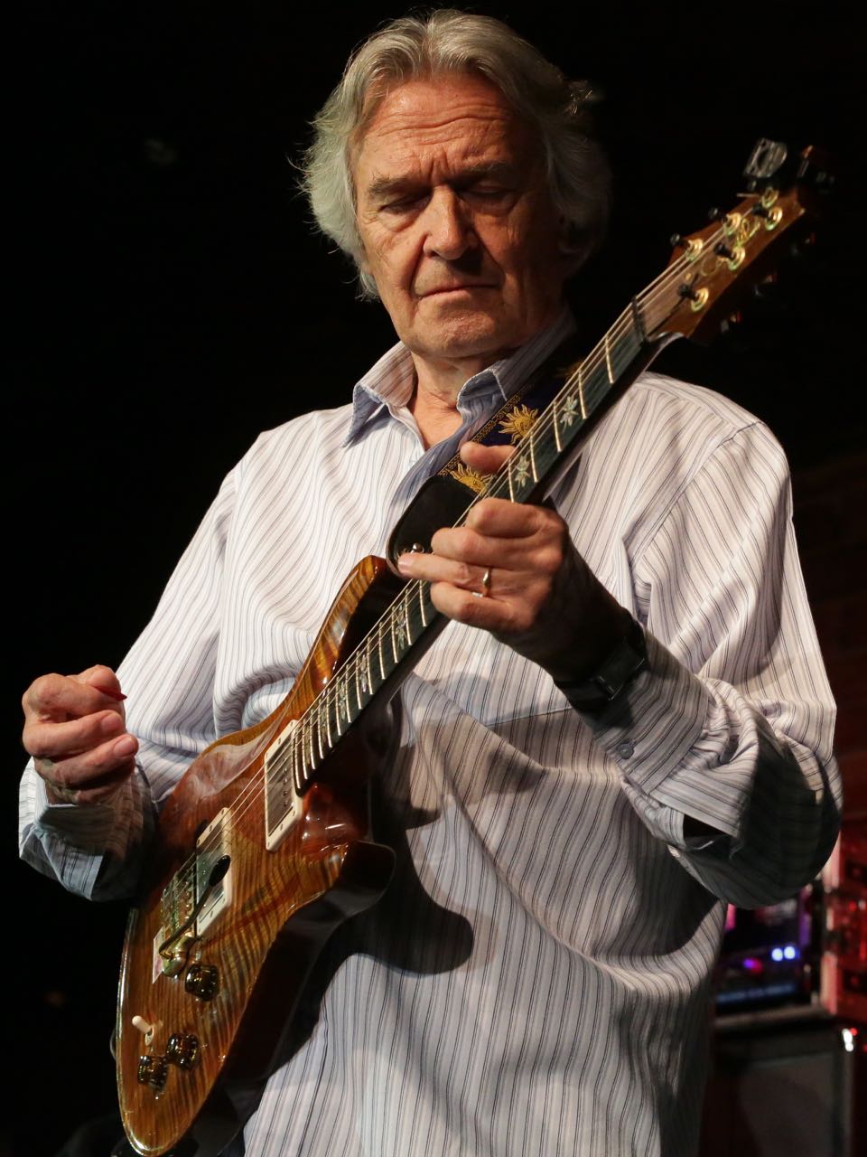 John McLaughlin (g), Etienne M’Bappe (b). Gary Husband (keys, dr), Ranjit Barot (dr), Bayerischer Hof München, Foto Ralf Dombrowski