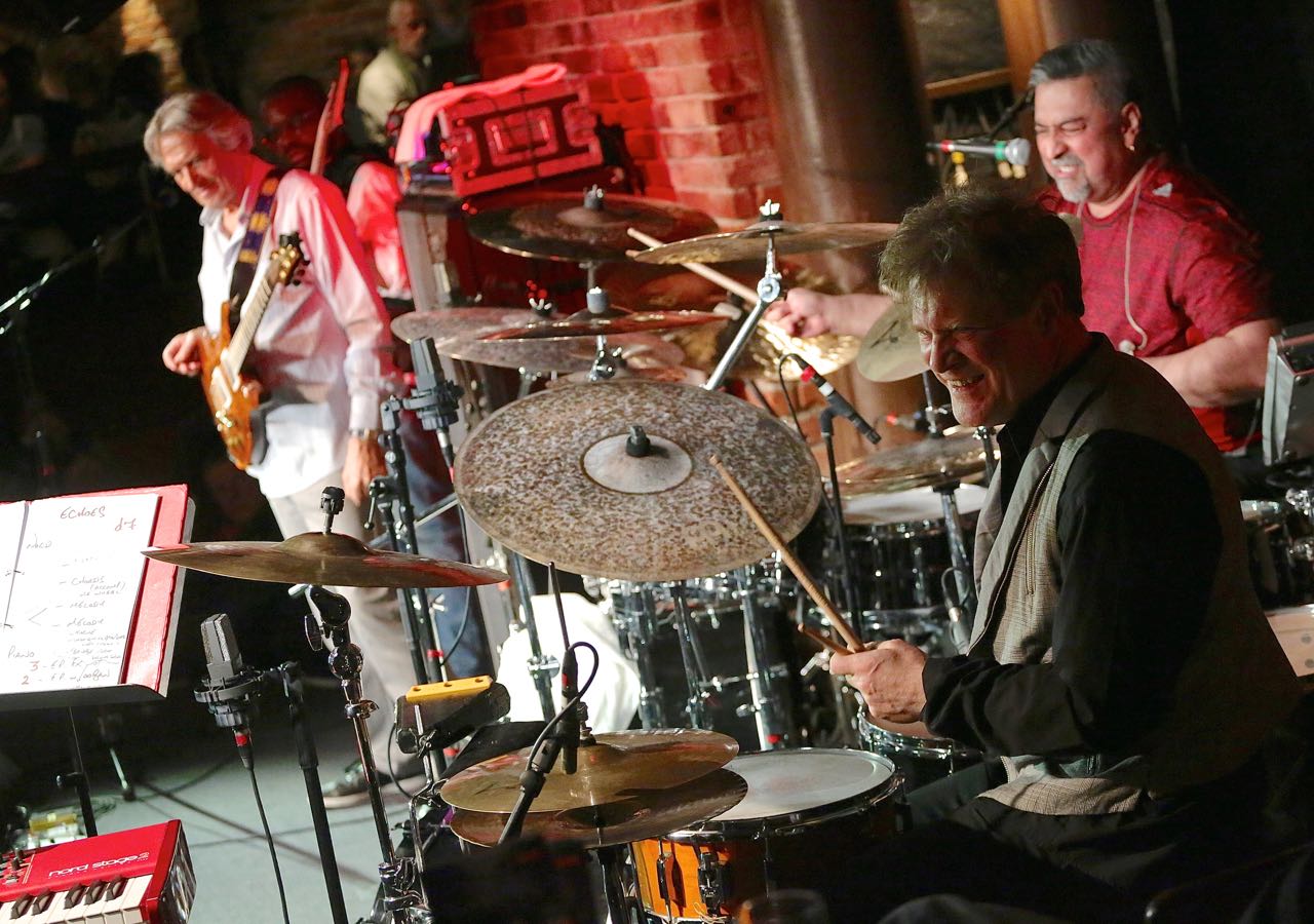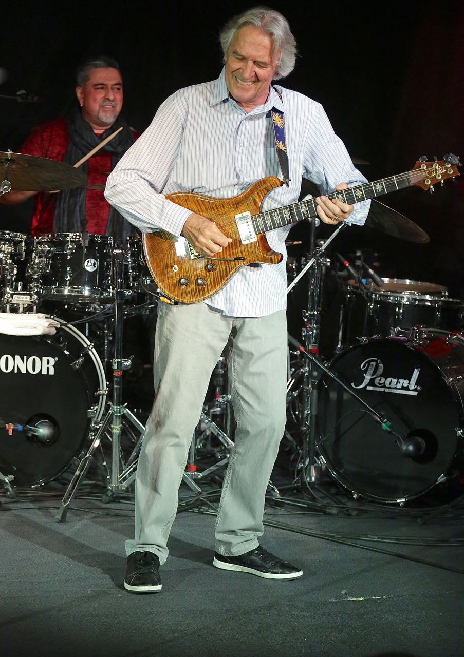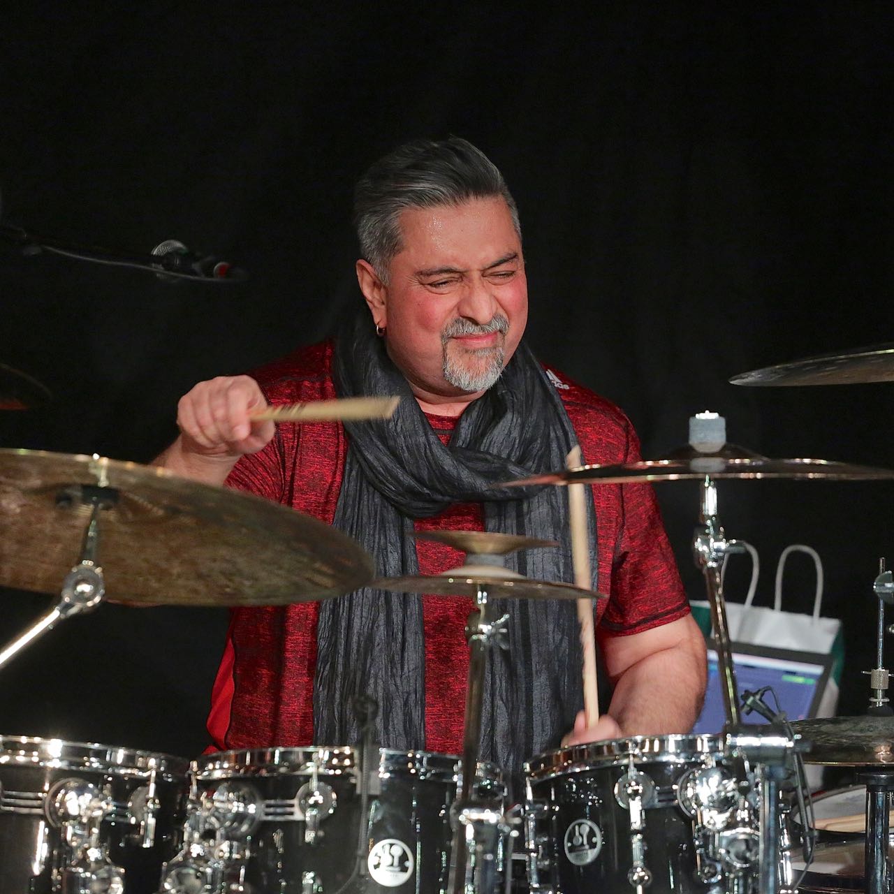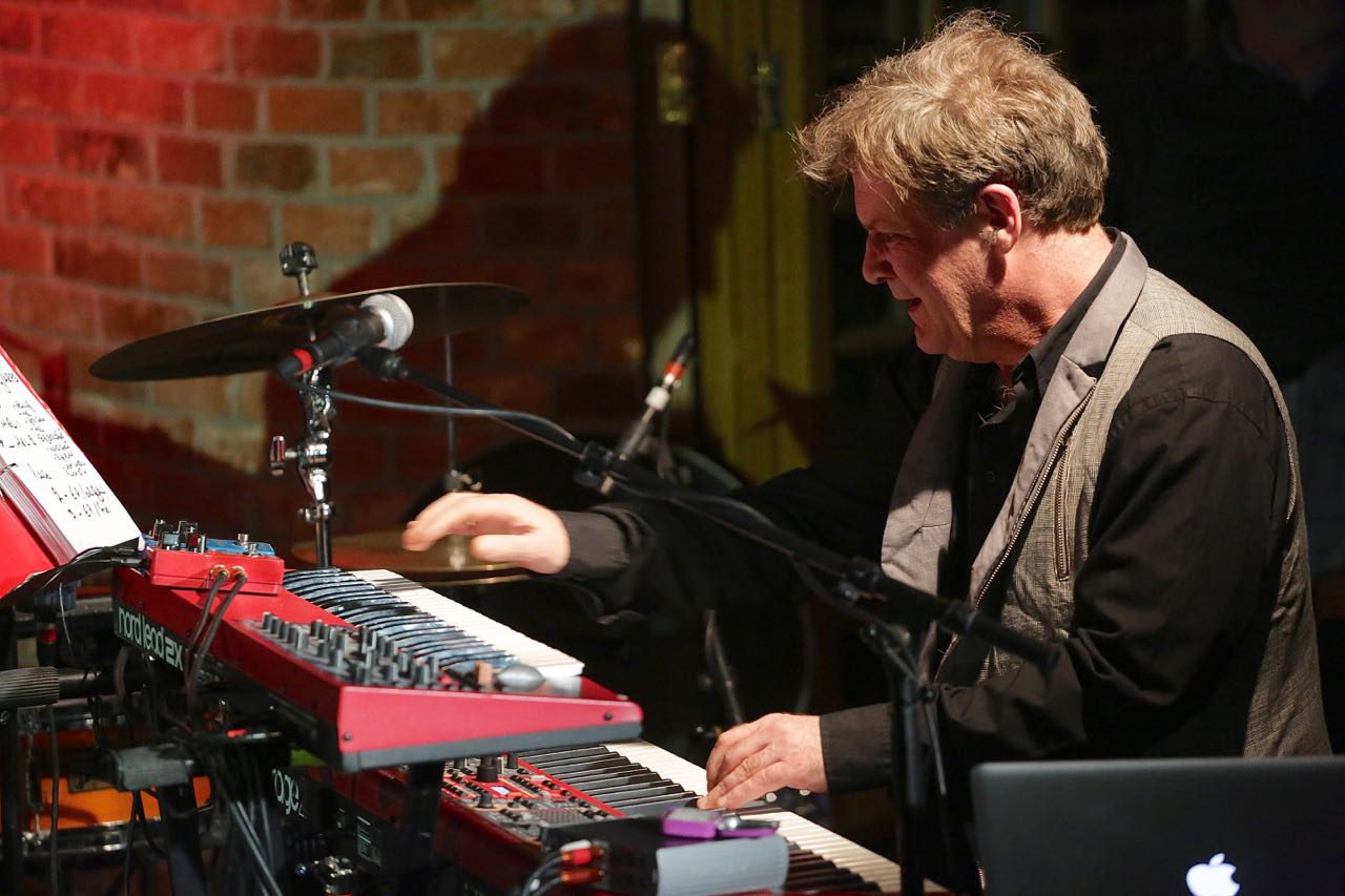 John McLaughlin (g), Etienne M’Bappe (b). Gary Husband (keys, dr), Ranjit Barot (dr), Bayerischer Hof München, Foto Ralf Dombrowski