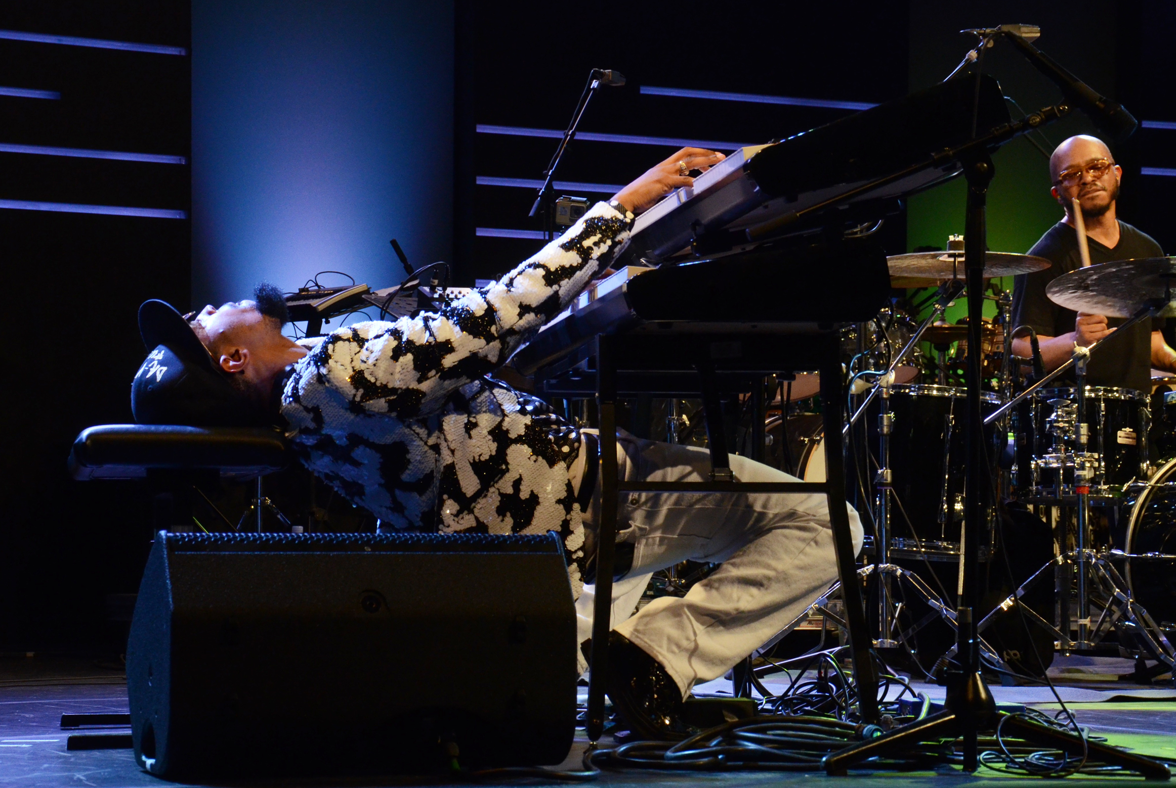Dagegen geriet die durchaus packende Interpretation der rhythmisch und harmonisch vertrackten, fünfteiligen „Meridian-Suite“ des Schlagzeugers Antonio Sanchez nicht durchgehend zu einem intellektuellen Genuss. Der sich türmende energetische Sound der musikalischen Novelle aus „electro, latin, jazz and classical“, wie es der durch den Film „Birdman“ berühmt gewordene Sanchez beschrieb, geriet phasenweise zu einem viel zu lauten wuchtigen Soundgebirge, das einen zu begraben drohte. Schade, denn zu sagen hatten Seamus Blake (tsax), Thana Alexa (voc), Matt Brewer (bass) und John Escreet (piano) allemal etwas.