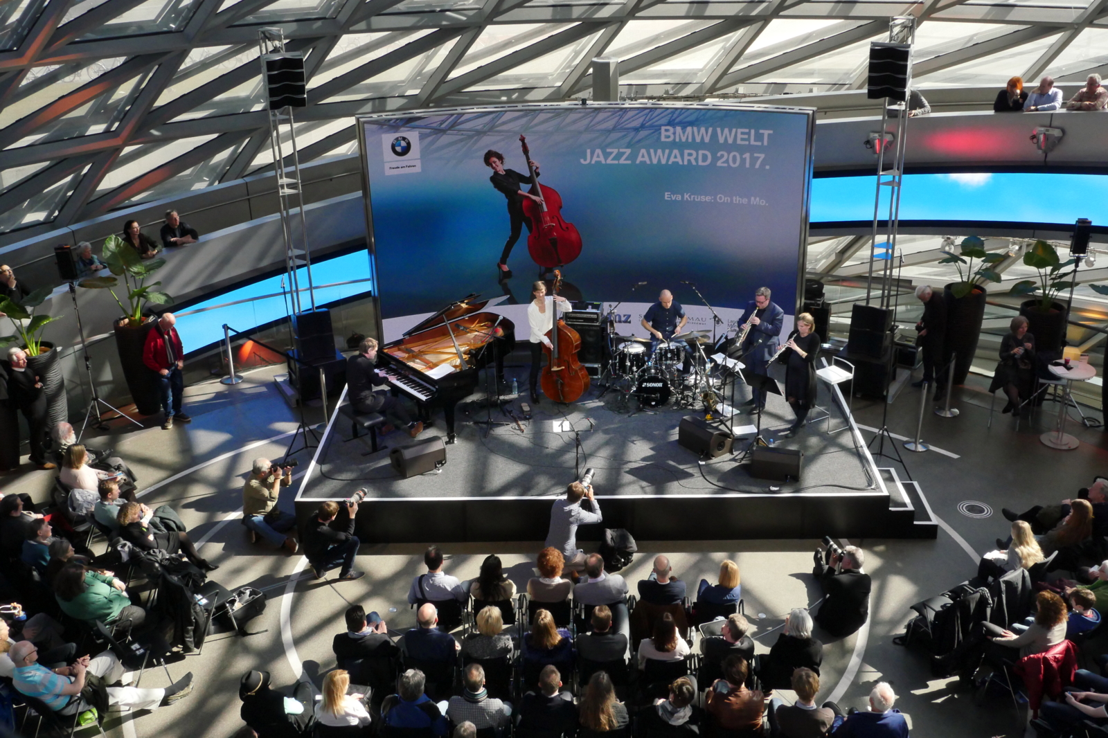Wiedersehen macht Freude, dachte sich die gefeierte Bassistin und BMW Welt Jazz Award 2009 Gewinnerin Eva Kruse. Am 12. März stellte sie im Quintett mit Eric Schaefer am Schlagzeug, Christian Jormin am Klavier, Uwe Steinmetz am Saxofon und Tjadina Wake-Walker an der Oboe ihr faszinierendes Programm „On The Mo“ vor. Das Konzert war auch der Abschluss der Matineen 2017. Man darf gespannt sein welcher Bassist am 6. Mai im Auditorium der BMW Welt um das Preisgeld von 10.000 Euro und den Pokal spielt. Zur Wahl stehen der Chris Minh Doky, Lars Danielsson/ Grégory Privat, Henning Sieverts, Renaud Garcia-Fons, Linda Oh und eben Eva Kruse. Am 16. März soll die Entscheidung bekannt gegeben werden.