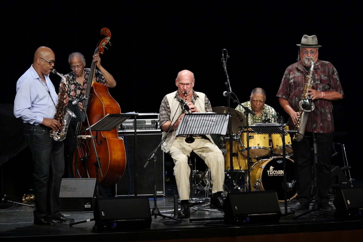 Mit von der Partie waren diesmal das Saxophon Summit, um die Saxophonisten David Liebman, Joe Lovano & Greg Osby, begleitet von Phil Markowitz am Klavier, dem Bassisten Cecil McBee und Billy Hart am Schlagzeug. Die Band kam direkt aus Portugal, hatte kaum etwas gegessen, geschweige denn ausreichend geschlafen und spielten trotzdem mit soviel Power, dass sich selbst das „Küken“ der Formation, Greg Osby, mit seinen 57 Jahren fragte, wie er das so hinbekommt. Aber bei einem solchen Publikum springt der Funke von selbst über und lässt die Band spielerisch einfach von der Leine. Am zweiten Abend begeisterte dann das Aki Takase Trio, mit Jan Roder am Bass und Akis „Lieblingsschlagzeuger“ Oliver Steidle. Im der ersten Hälfte ausgelassen, folgte nach der Pause dann ein etwas geruhsameres, aber trotzdem spannendes Set.