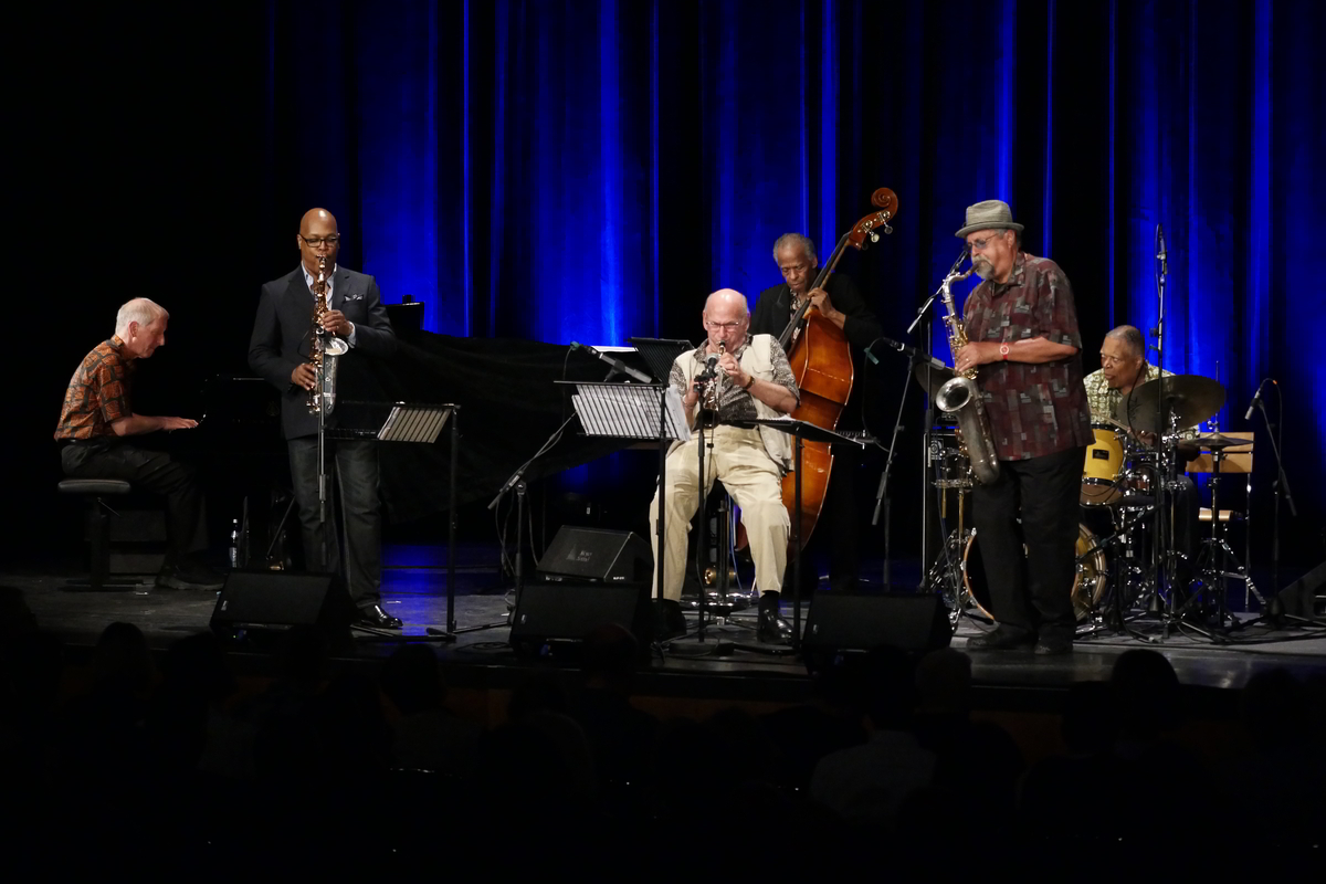 Was das ganze Konzept der Konzerte in Ottobrunn und des Festivals einmalig und „rund“ macht, ist das begleitende musikalische und kommunikative Konzept zu den Konzerten. Zusätzlich gibt es vor Ort begleitende Workshops mit den Musikern, und nach den Konzerten finden dann im Ratssaal Künstlergespräche mit dem Publikum statt. Diesen Teil des Abends mit dem Saxophon Summit moderierte Tom R. Schulz aus Hamburg und förderte mit viel Fingerspitzen- und feinem Taktgefühl wunderbare Anekdoten wie interessante Fakten zu Tage. Auf die Frage eines 11-jährigen Jungen z.B. welche Saxophone die Herren denn spielen, legten die „Stars“, ohne jegliche Allüren, alle Einzelheiten und Besonderheiten offen und gaben dem jungen Saxophonisten schließlich noch praktische Tipps mit auf den Weg (es kommt weniger auf das Instrument selbst an als auf die Seele, die der Spieler ihm einhaucht). Die Bedeutung ihrer Musik, wann sie proben, wie oft sie touren, was im Laufe der Zeit alles passierte und wie sich die Musikszene im Laufe der Jahre verändert, all das kam im Rahmen der Diskussion zu Sprache und auch an zweiten Abend folgte ein spannendes Künstlergespräch mit Aki Takase und ihrer Band, diesmal moderiert von Jürgen Jung.