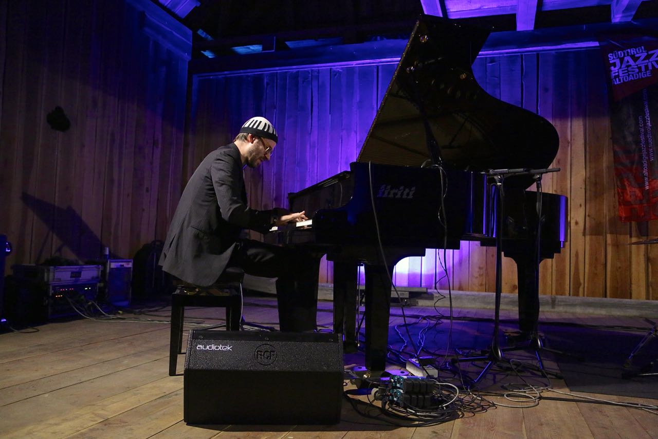 Damit nicht genug. Während der folgenden Tage ist Baas viel beschäftigt, mit Workshops und kleineren Besetzungen wie etwa dem Duo mit dem Saxofonisten Ben van Gelder vor imposanter Dolomitenkulisse auf der Malga-Fornella-Alm am Würzjoch. Überhaupt sind die ungewöhnlichen Orte neben den jungen Musikern, den Länderschwerpunkten wie in diesem Jahr Benelux und dem durchdachten künstlerischen Konzept eine Besonderheit des Südtirol Jazzfestivals Alto Adige. Der Pianist David Helbock beispielsweise gastierte mit seinem Trio in einem Heustadel beim Weihrerhof am Ritten. „Der Sound war ganz speziell, man spürte das Holz schwingen“, meinte er nach dem Konzert, sichtlich angetan von der Atmosphäre und dem begeisterten Publikum. Auf dem Programm standen die Songs des „Into The Mystic“-Albums, die Helbock, der Bass-Ukulele-Spieler Raphael Preuschl und der Schlagzeuger Reinhold Schmölzer mit routinierter Perfektion und viel Emphase präsentierten. Auch hier wurde klar, dass sich das Festival längst zu etwas Eigenständigem entwickelt hat. Denn es feiert die Musik für sich, aber auch als Kombination von regionaler Verortung, außergewöhnlichem Ambiente und zukunftsträchtiger Konzeption. „New Sounds – Fresh Perspectives“ ist als Motto auf die Flyer gedruckt. Passt.
