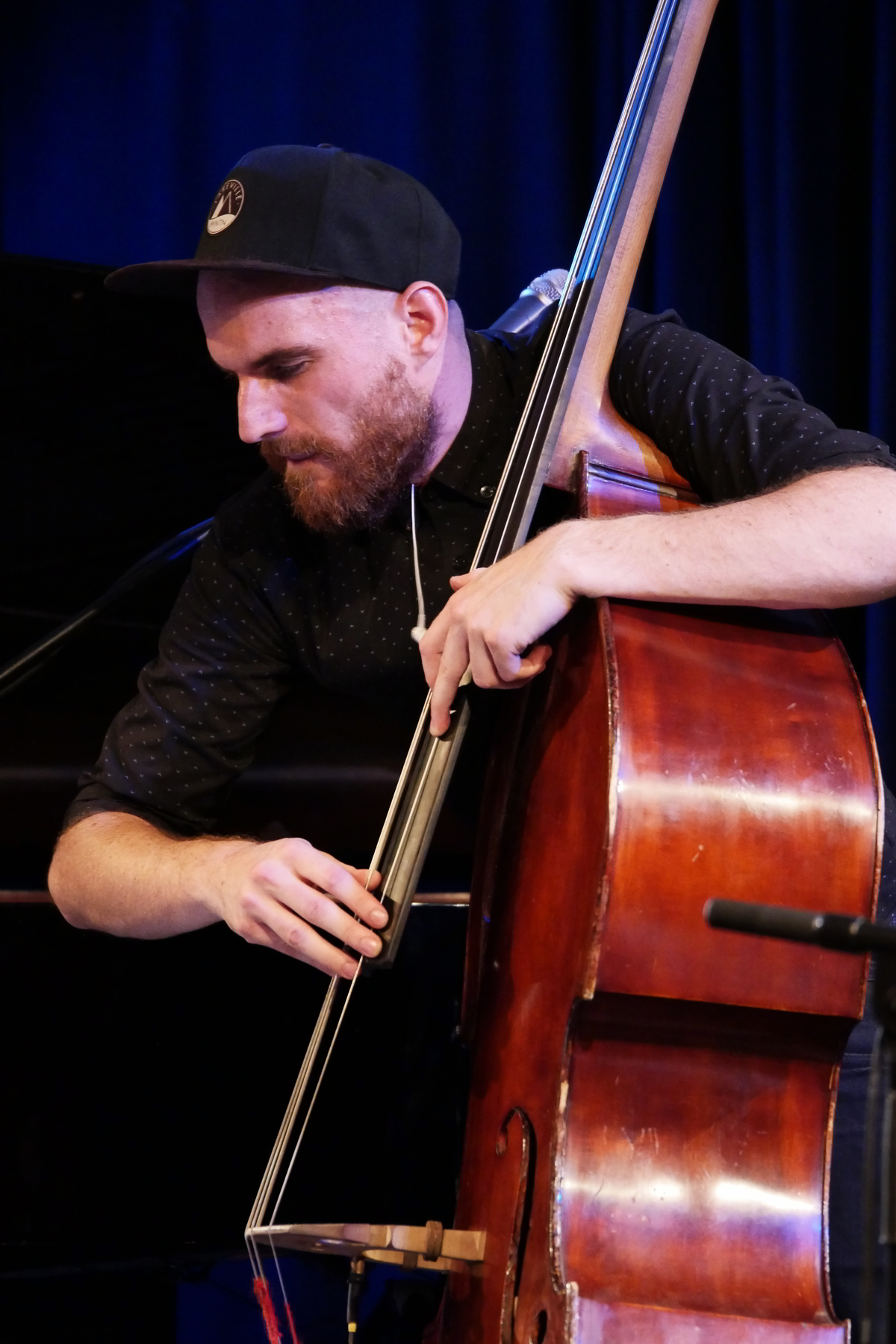 Leo Betzl ging in die pianistischen Vollen und überzeugte auf ganzer Linie. Komplett losgelöst präsentierte er mit dem Trio Standards, ausgewählte Stücke wie Eigenkompositionen, spielte die Themen an, zerlegte diese virtuos, um sie danach spielerisch geschickt wieder zusammen zu fügen. Beeindruckende Arrangements, die er dem Publikum und der Jury darbot. Maximilian Hirning begab sich dann auf komplett anderes Terrain: er spielte das komplette zweite Set technoiden Jazz, mit erfrischender Dynamik, abwechslungsreichen Clustern und mit von Sebastian Wolfgruber verblüffend gespielten, klar strukturierten Technorhythmen ohne elektronische Zusätze. Hirning spannte einen energiegeladenen musikalischen Bogen mit facettenreichem, analogen Bassspiel. Zwei wunderbare, komplett unterschiedliche, begeisternde Sets – Gratulor!