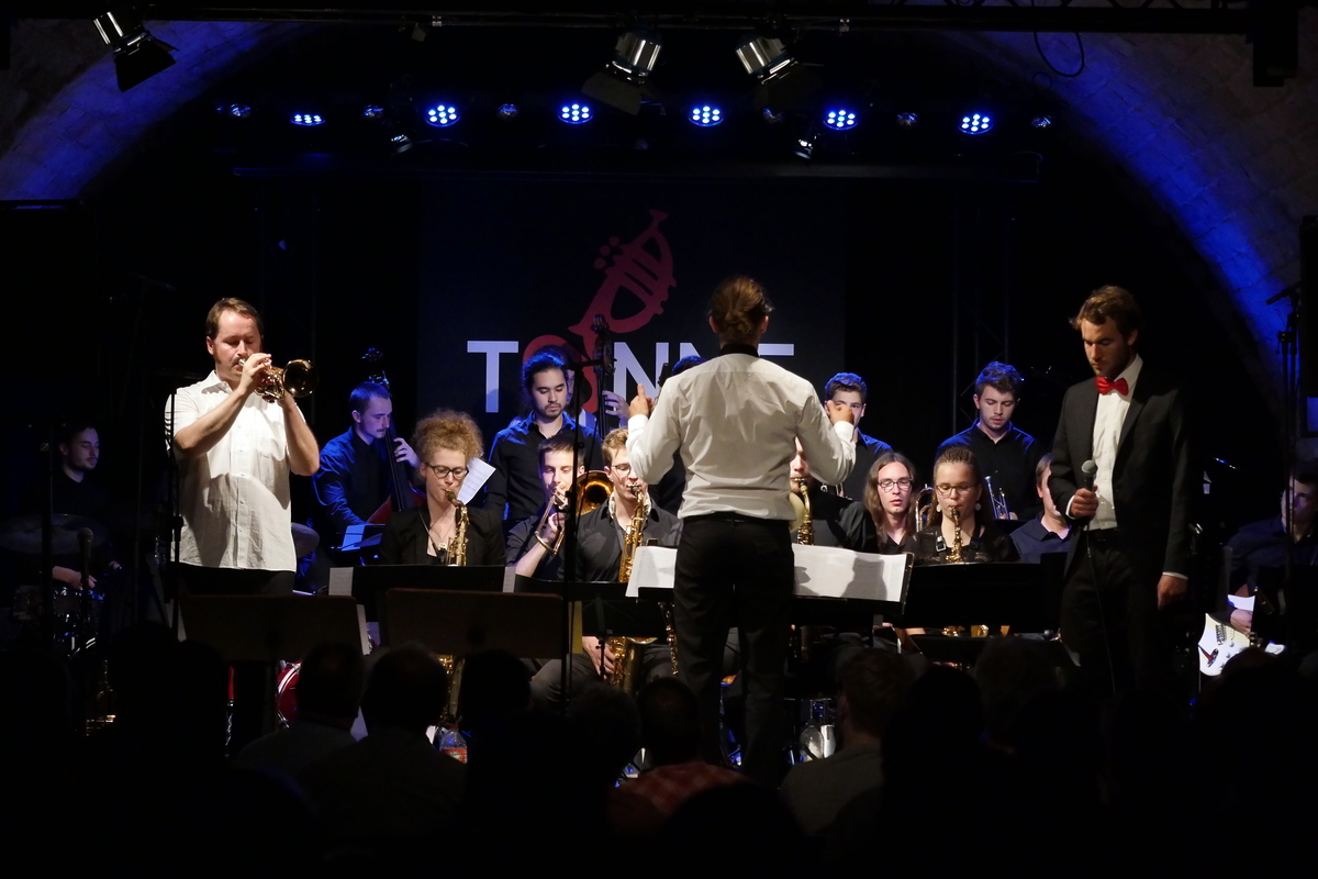 Der Dresdner Jazzclub Tonne, im August normalerweise noch in der Sommerpause, öffnete seine Pforten. Mit guter Stimmung und tosendem Applaus dankte das zahlreich erschienene Publikum für die Aufführung des „Martin-Auer-Quintett trifft JJO“. Originals der Quintett Musiker wie „Computerhead“, „The Streamdreamer“, „Watsoning“ oder das von Jütte komponierte, vertrackte „Four on & Of Five“ wurden einfach klasse gespielt und auch die Soli der JJO-Mitglieder ließen aufhören: ja, es gibt sie, die jungen Talente – bleibt zu hoffen, dass sie dabei bleiben und ihre Spiellaune weiter ausleben. Die Arrangements passten für das JJO wie die Faust aufs Auge, waren unprätentiös und groovten herrlich. Zum Schluss des Konzertes gab das Publikum keine Ruhe und bekam schließlich was es wollte, eine erstklassige Zugabe: „Ex(ercise) 33“ – mit Spielwitz vorgetragen, entließen die Musiker ihr Publikum schließlich in eine sternenvolle Dresdner Sommernacht.
