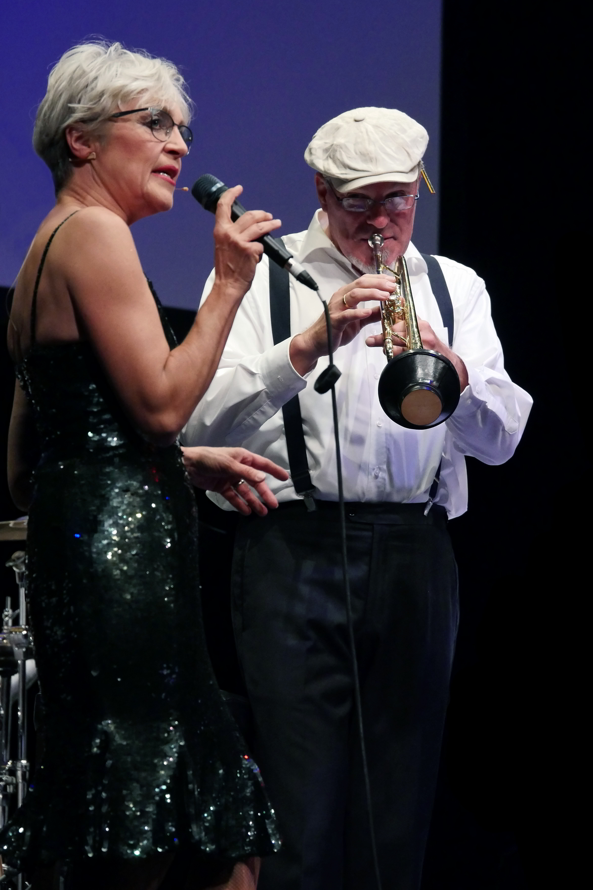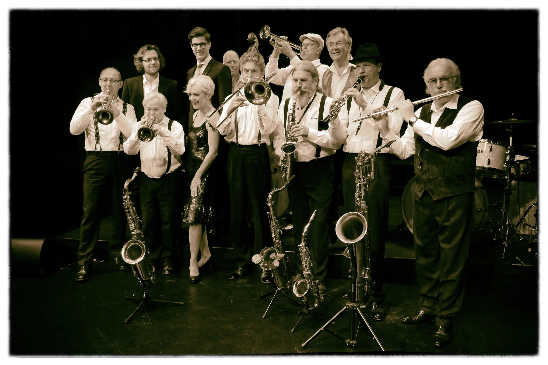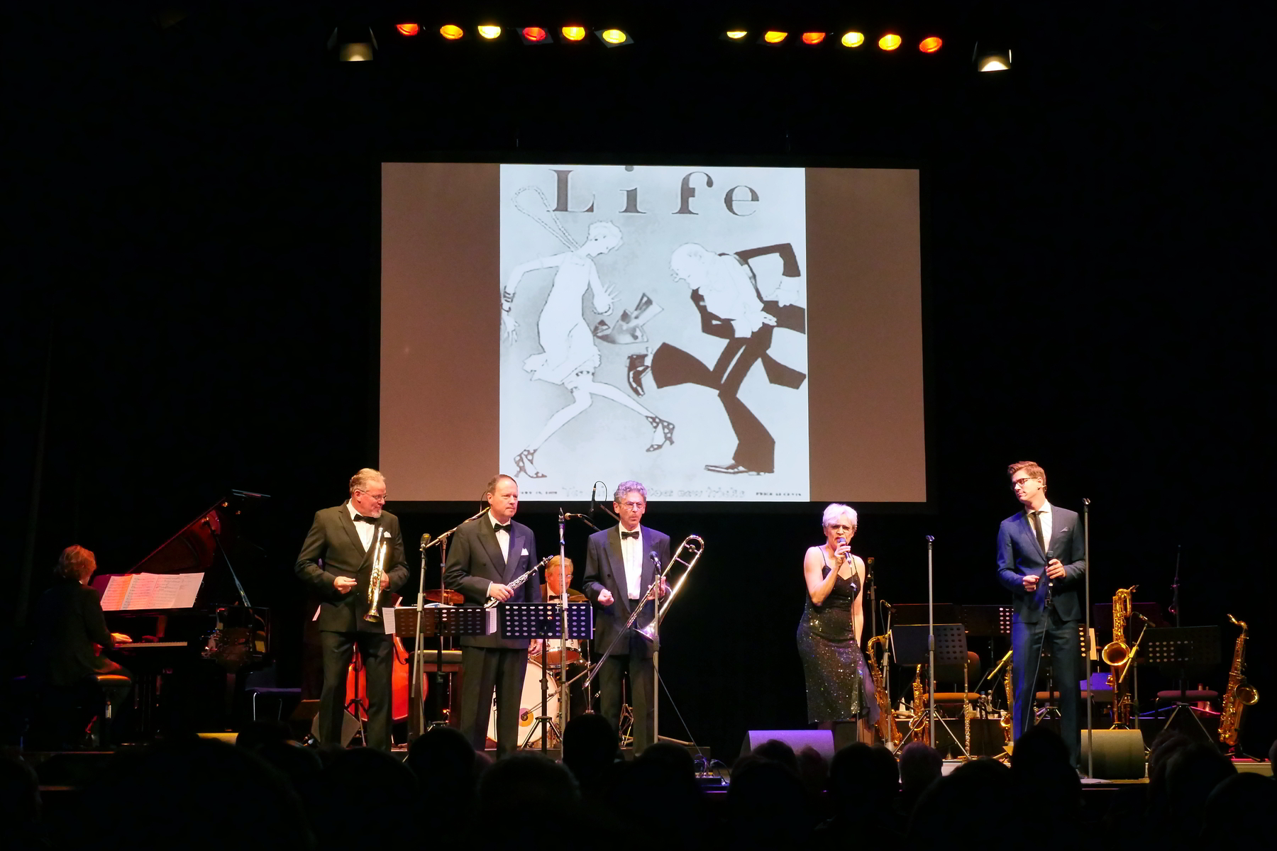 Der tragikomischen Story einer offiziellen Jazzband im dritten Reich haben sich die Autoren Oliver Hochkeppel und Peter Wortmann angenommen und daraus ein abendfüllendes Programm im Bürgerhaus Unterföhring gestaltet. Zusammen mit Heinz Dauhrer und dem „WINE AND ROSES SWING ORCHESTRA“ mit Pete York am Schlagzeug, wurden die illustren Stücke von „Charlie and his Orchestra“ gespielt. Akribisch haben dafür Michael Keul, Matthias Bublath, Bernhard Ulrich sowie Heinz Dauhrer die Originalstücke abgehört, zu Papier gebracht und für ihre Band arrangiert. Zwischen den Stücken eingeflochten sind szenische Texte, eindrucksvoll und mit Esprit vorgetragen von April Hailer und Maximilian Höcherl.