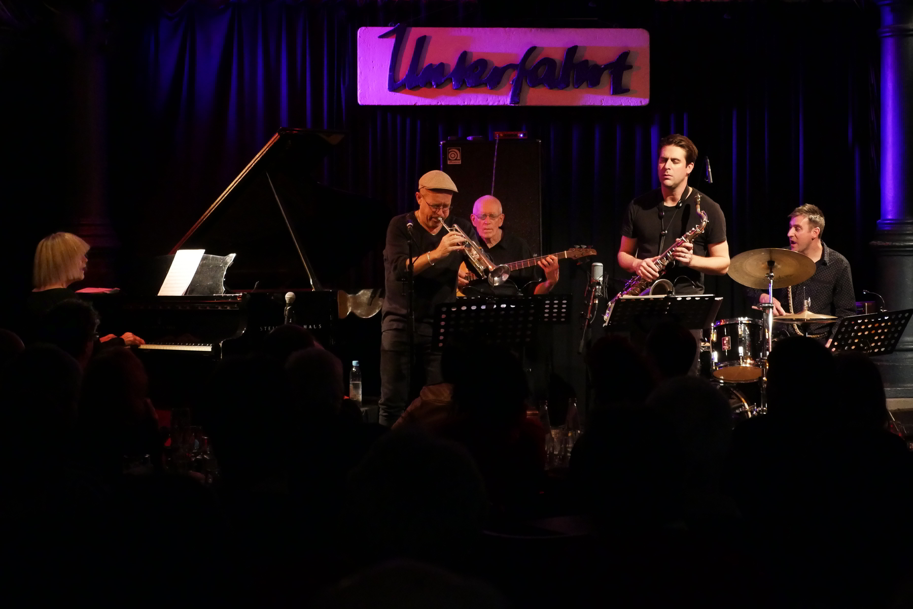Als Carla Bley über ihren Partner Steve Swallow, gleichzeitig der Bassist des Riverside-Quartetts, davon erfuhr, beteiligte sie sich spontan mit ein paar Eigenkompositionen für die Band. Zu guter Letzt ließ sich Carla Bley dann auch noch überreden, gemeinsam mit der Band zusammen zu touren – ein wahrer Glücksfall! Letzte Woche war es dann endlich soweit und das Riverside-Quartett mit Carla Bley gab ein spannendes, abwechslungsreiches und umjubeltes Konzert in der Münchner Unterfahrt. Höhepunkt war eine von Carla Bley komponierte musikalische Suite zur aktuellen politischen Lage den USA.
