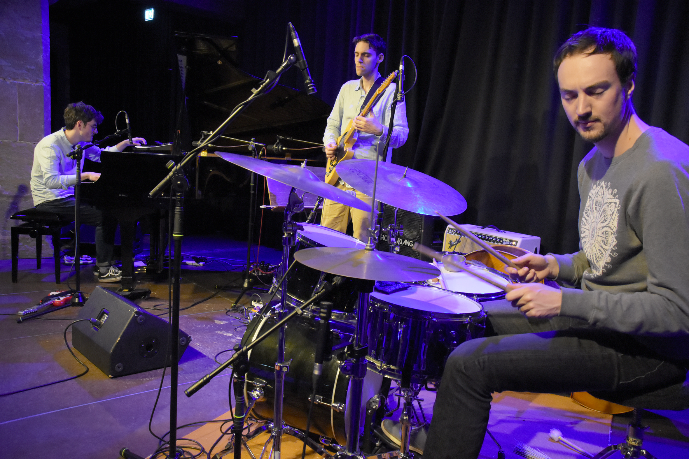 Eine gehörige Portion Enthusiasmus und künstlerischer Ehrgeiz. Abgesehen von Musikalität und technischer Brillanz, sind das die Eigenschaften die das britische Elliot Galvin Trio nach Regensburg geführt haben müssen. Zwischen London, wo sie öfter auftreten, Manchester und Paris, dort gastieren sie demnächst, war der Leere Beutel der einzige Auftrittsort in ganz Deutschland. Und der Jazzclub hat mit den, auf dem Kontinent noch unbekannten, jungen Musikern eine gute Nase für Talente bewiesen.