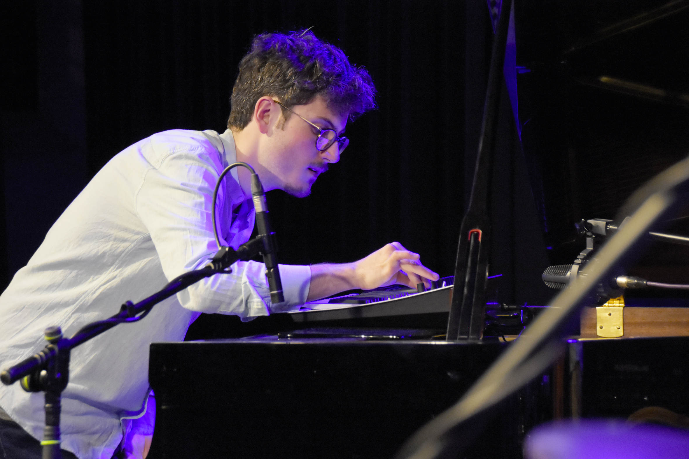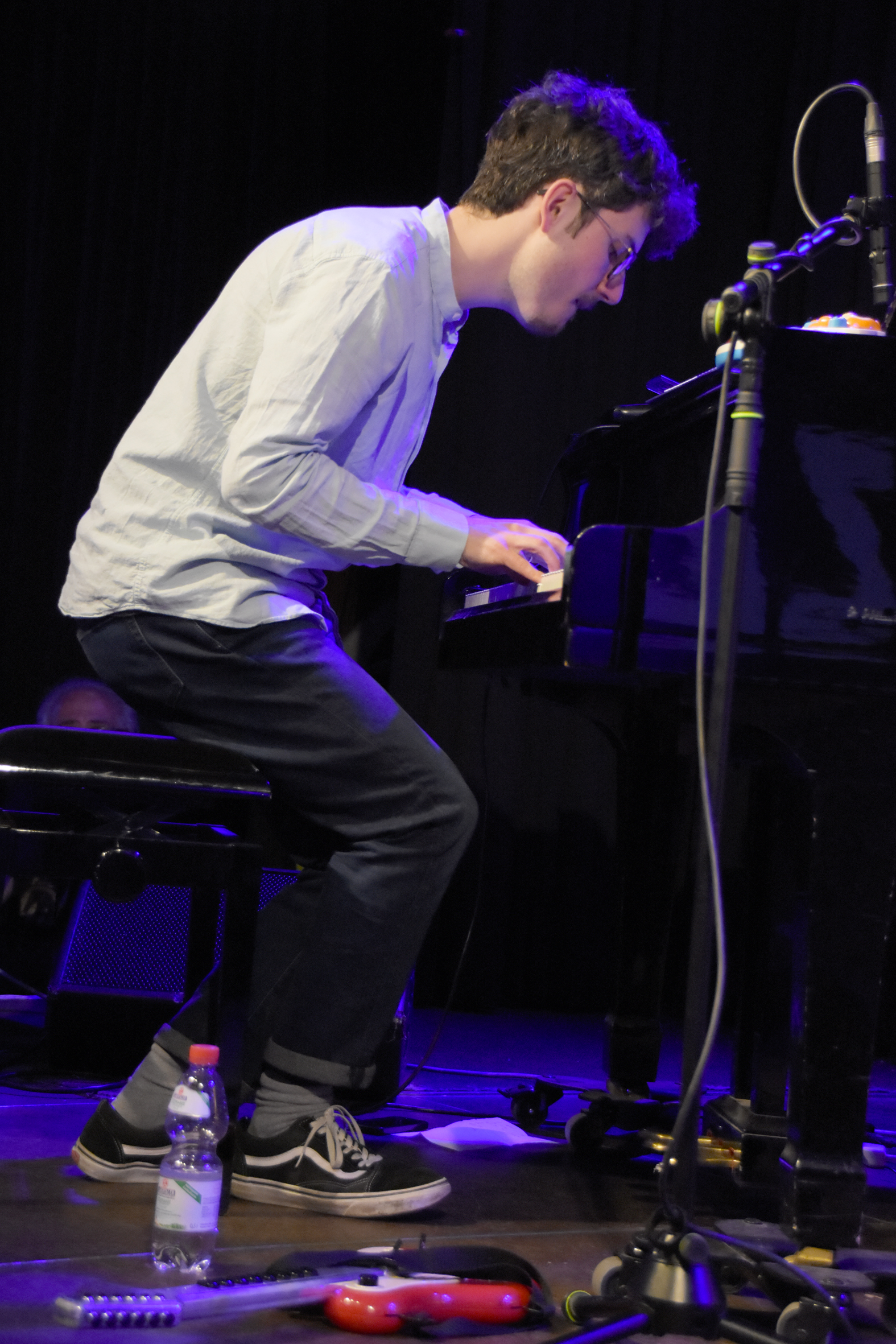 Das Konzert, schwach besucht zwar, offenbarte ein frisches, unkonventionelles und ungemein vielseitiges Trio. Das braucht dann auch weder Vergleiche mit anderen Jungstars wie Michael Wollny oder Lorenz Kellhuber zu scheuen, noch gründelt es in flachen Gewässern wie manche angesehene Jazztrios. Seit den Erfolgen von Trios wie E.S.T. oder von Brad Mehldau gehört diese Besetzung wieder zu den beliebtesten im Jazz und stellt entsprechend große Anforderungen an junge Musiker. Der 27-jährige Elliot Galvin wurde bereits während des Studiums am renommierten Trinity College of Music mit Django Bates verglichen, einem der wichtigsten Masterminds des zeitgenössischen englischen Jazz. Mit ihm hat der blitzsaubere Pianist und Komponist einen gewissen Hang zum Eklektizismus gemeinsam. Dieser macht weder vor klassischen Bezügen, Blues oder Marschrhythmen, noch vor sakral anmutenden Stimmungen oder freejazzartigen Ausbrüchen Halt. Ein wenig spröde stiegen Tom McCredie an Kontrabass und Galvin mit ruhigen schwebenden Klangexperimenten ein, bevor sich Schlagzeuger Corrie Dick zu Wort meldet und deutlich machte, der Groove hat auch noch Platz in der „New Model Army“. Die fast neoklassisch anmutende Komposition verdichtet sich in überlagernden Rhythmen und ist aus dem Album „The Influencing Machine“. Das thematische Konzeptalbum verbindet auf geradezu geniale, man kann auch sagen verrückte Weise Medizingeschichte und aktuelle Fragen technischer Manipulierbarkeit von uns allen. Ideengeber für Galvins musikalische Reisen ins Gehirn war ein gleichnamiges Buch von Mike Jay über James Tilly Matthews, der als erster umfänglich dokumentierter Fall von paranoider Schizophrenie in die Medizingeschichte einging. Dessen Wahnideen von Maschinen kontrolliert zu sein, haben Galvin animiert Parallelen zum Einfluss heutiger digitaler Technik musikalisch zu reflektieren. Das klingt ziemlich abgefahren und ist es in gewisser Weise auch. Komplexe Stücke, intellektuell herausfordernd, wechseln mit einfachen Melodien voll lichter Stimmungen und gradlinigen Songs, von Dick weniger kraftvoll, als mit federnder Eleganz vorwärts getrieben.