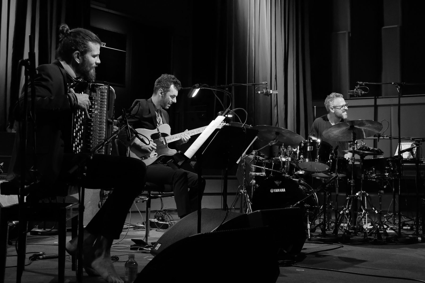 Anfang April fand im Rolf-Liebemann-Studio des NDR im Rahmen der Jazzkonzerte die Geburtsstunde eines besonderen Trios statt. Fern eines „klassischen“ Trios mit Schlagzeug und Bass stellte sich Vincent Peirani mit dem italienischen Gitarristen Federico Casagrande und Ziv Ravitz an den Drums ein ganz besonderes Trio zusammen.