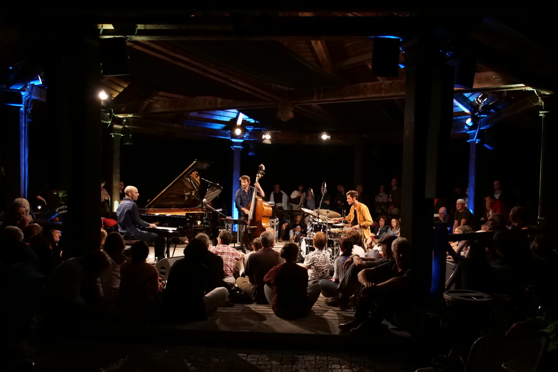 Musikalisch am interessantesten waren sicherlich das Vijay Iyer Sextett und Bobo Stenson mit seinem Trio. Aber auch Florian Favre und Matthias Schriefl mit Six, Alps & Jazz überzeugten auf ganzer Linie. Joe Lovano & Dave Douglas Formation „Sound Prints“ war ein jazziger Selbstläufer, und auch die anderen beiden Konzerte, das Christian Stock Trio & Billy Harper, sowie Andy Sheppard waren Balsam für die Ohren. Die Festivalleitung setzt nicht nur auf große, zugkräftige Namen, sondern versteht es seit Jahrzehnten ein abwechslungsreiches und interessantes Programm zusammen zu stellen, das sich sehen und hören lassen kann. An dieser Stelle sei noch erwähnt, was die Technik im Hintergrund leistete. Hier galt es die Quadratur des Kreises zu bewältigen: unterschiedlichste Formationen mit ihren Instrumenten in einem Pavillon Open Air so abzumischen, dass der Klang überall klar, deutlich und nuanciert auf die Ohren des Publikums trifft – das ist keine Selbstverständlichkeit und hat an allen Abenden hervorragend funktioniert. Mit viel Fingerspitzengefühl waren die Soundleute an den Reglern, es wurde getüftelt und justiert während intensiven Proben/Soundchecks und letztlich perfekt platzierten Mikrofonen.