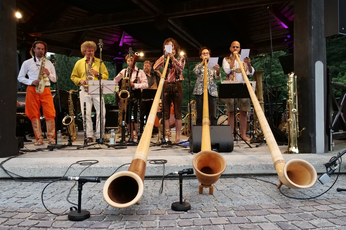 Einer der aufregendsten Momente des Festivals war sicherlich der Abend mit dem Vijay Iyer Sextett, das ungestüm einen dynamischen Parforceritt durch die Jazzgeschichte veranstaltete und mit ungezügelter Spiellust das Publikum in ihre teilweise komplexe, aber immer groovende Klangwelt entführte. Am Lustigsten war zweifelsohne Matthias Schriefls Six, Alps & Jazz – immer mit schelmischem Augenzwinkern bei der Sache ohne musikalisch Kompromisse zu schließen und am Intimsten sicherlich der Moment, als es beim Florian Favre Trio im zweiten Set anfing etwas zu regnen und das Publikum von den Musikern eingeladen wurde, sich einfach unter das Dach des Pavillons auf die Bühne zu setzen, um dann den Rest des Abends im Trockenen genießen zu können. Last not least natürlich die sonntäglichen Matineen im Zeughaus/Brunnenhof, die das Festival-Programm abrundeten.