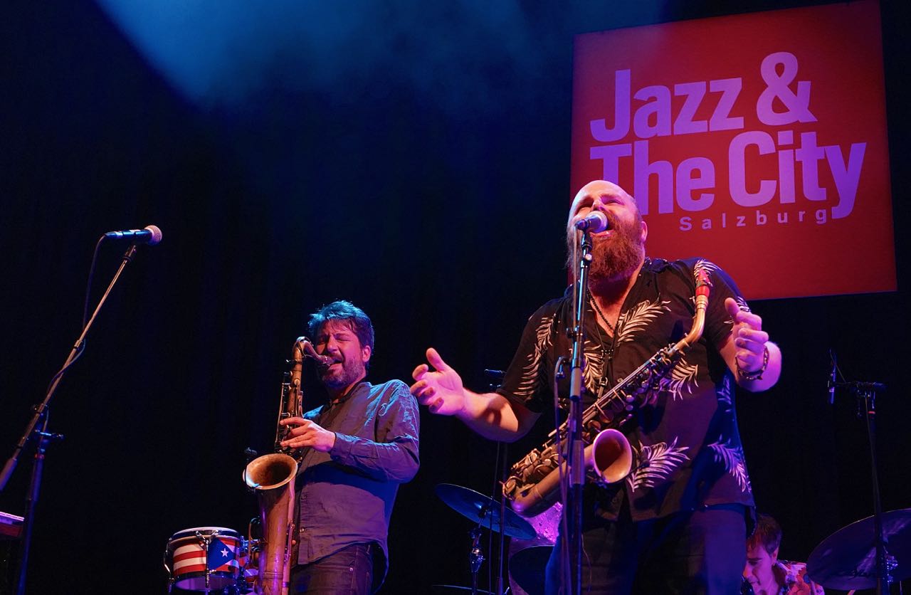 Text und Fotos von Ralf Dombrowski. Schon faszinierend, eine Stadt, der man architektonisch anmerkt, dass sie Musik mag. Ein Saal wie das Solitär im Neubau des Mozarteums mit großem Panoramafenster Richtung Mönchsberg wäre andernorts womöglich Immobilienspekulanten zum Opfer gefallen, denn exklusiver geht es kaum. Salzburg aber leistet sich Musik, angedockt an den feudalen Park des Schlosses Mirabell, in Rufnähe zum Stadttheater. Tina Heine wiederum, die nun zum dritten Mal das Programm von „Jazz & The City“ verantwortet, weiß genau, dass so ein Raum nach Hochkultur lechzt und sorgt dafür, dass er am wichtigen Finalsamstag des Festivals auch mit passenden Projekten bespielt wird. Da ist zum Beispiel die Pianistin Tamar Halperin, die sich im Duo mit dem allerdings sehr dezent agierenden Elektroniker Guy Sternberg Satie, Cage, Corea widmet. Das hat zwar wenig mit dem Kerngeschäft des Jazz zu tun, bietet dafür aber die Möglichkeit, vor allem die Miniaturen des französischen Exzentrikers in einem textur-übergreifend atmosphärischen Zusammenhang zu erleben, mit Blick auf das erleuchtete Kunstmuseum am Mönchsberg, das in der frühen Abendstunde wie ein Raumschiff in der Dunkelheit schwebt.