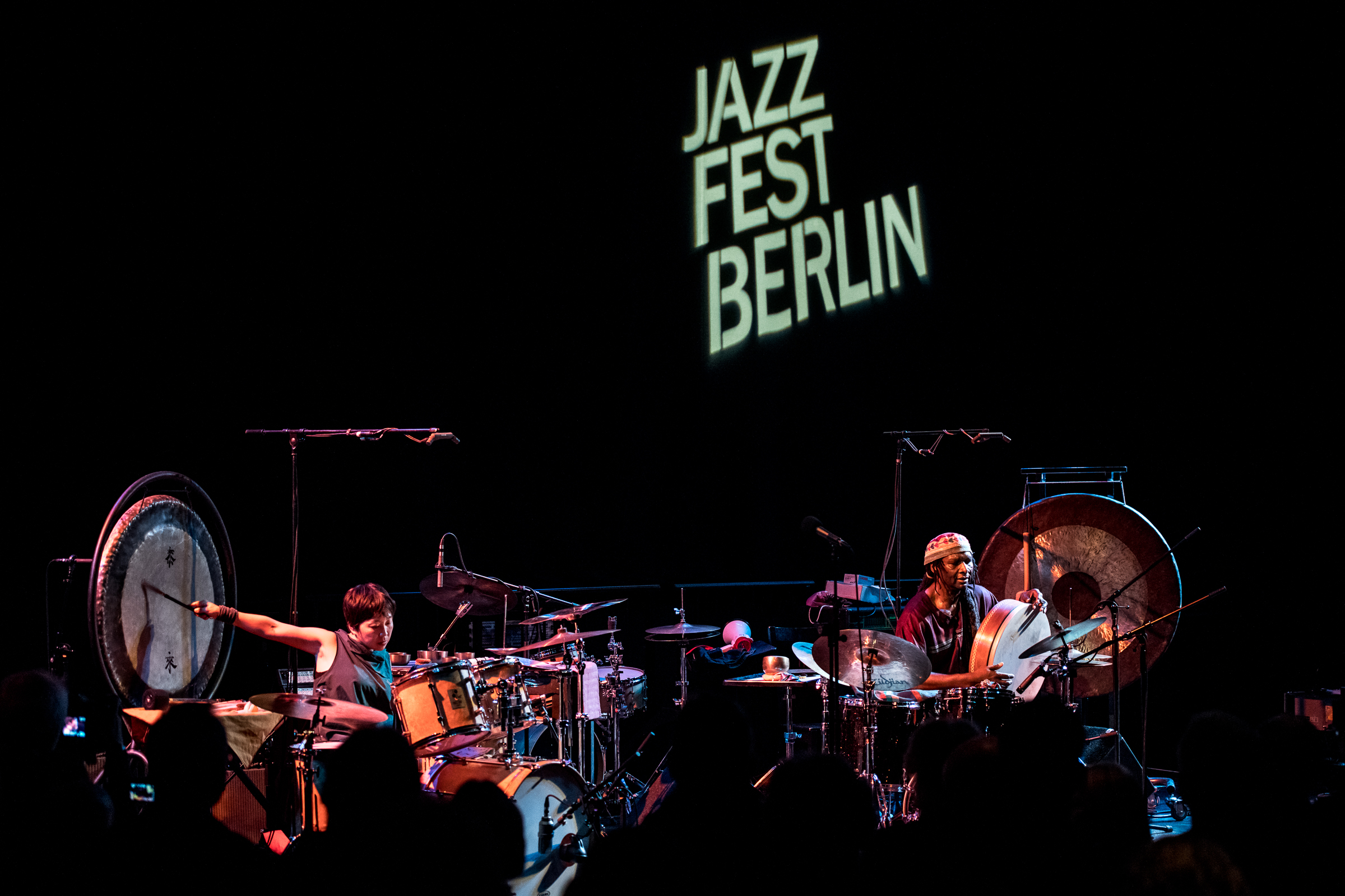 “So What Can Jazz Do?” – Antworten erwartet man sich dann natürlich vom danach startenden Jazzfest. Herausforderung oder Bürde? Beides! Der erste Tag des Jazzfests machte, wenn man so will, Angebote. Wie das eben so ist, wenn zahlreiche Bands mit ihren eigenen Poetiken der Befreiung aufwarten. Vielfalt und Einfalt! Deventers Überlegung: Wir lassen das ganze Haus bespielen. Kassenhalle, Oberes Foyer, Seitenbühne, Unterbühne und Saal. Darin lässt sich wandeln, wählen, ablehnen – und nebenher auch Gespräche machen. Das ändert den Konzentrationsraum bisweilen beachtlich. Es nährt das Gefühl von Relativität. Produktionen, die einen in den Bann schlagen und Energie freisetzen, andere, die einen kalt lassen.