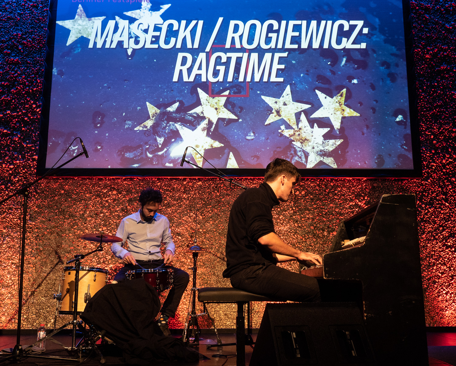 Danach tritt man heraus ins Foyer in dem ein Piano/SchlagzeugDuo aktualisierten Ragtime spielt. Schön!