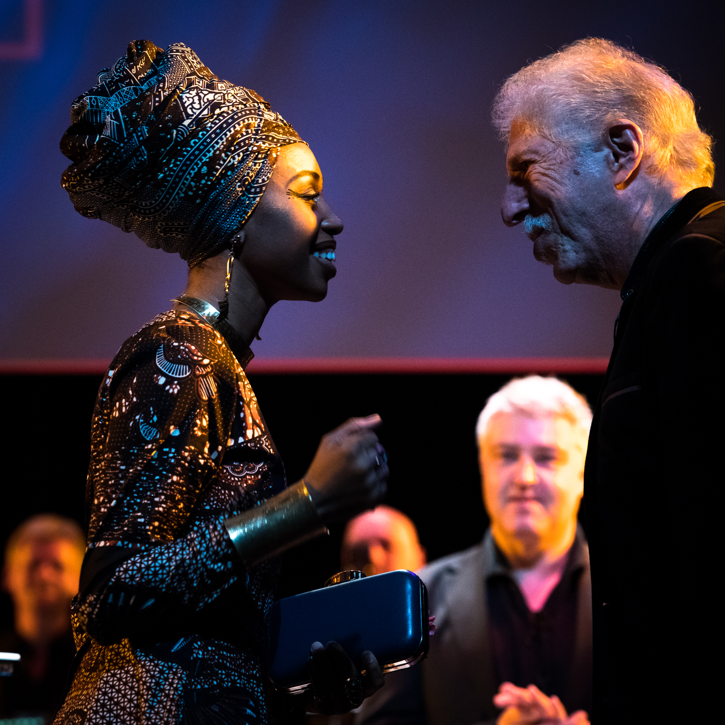 Jazzmeia Horn betrat mit der WDR BigBand und ihrer Show „A Social Call“ zuerst die Bühne. Um genau zu sein, etwas später. Zunächst durften sich Leiter Bob Mintzer und die WDR BigBand für ein Stück selbst präsentieren. Es ist leider eine andauernde traurige Geschichte beim Jazzfest, dass eine ARD-BigBand dabei sein muss. Selten kommt es dabei zu ganz eigenen Ereignissen. So eben leider auch hier. Jazzmeia Horn setzte sich sozusagen auf die Arrangements von Bob Mintzer drauf. Klar, kann Mintzer arrangieren, klar die BigBand das umsetzen, das ist deren Job. Solide, bisweilen wirklich pfiffige Arrangements dabei. Darüber dann aber eben Jazzmeia Horn, die gleich mit den ersten Gesangsäußerungen das Publikum reizte und in den Bann schlug (ich gebe tatsächlich den Gänsehauteffekt zu, es war so). Jazzmeia Horn hat das auch drauf, das ist bewundernswert. Ihre Stimme ist großartig, keine Frage. Sie hat Jazzgeschichte im Gesang abrufbereit gespeichert, wenn sie bei Moanin‘ oder Tenderly agiert, oder fast musicalartig operiert und dann auch mal wieder scattet.