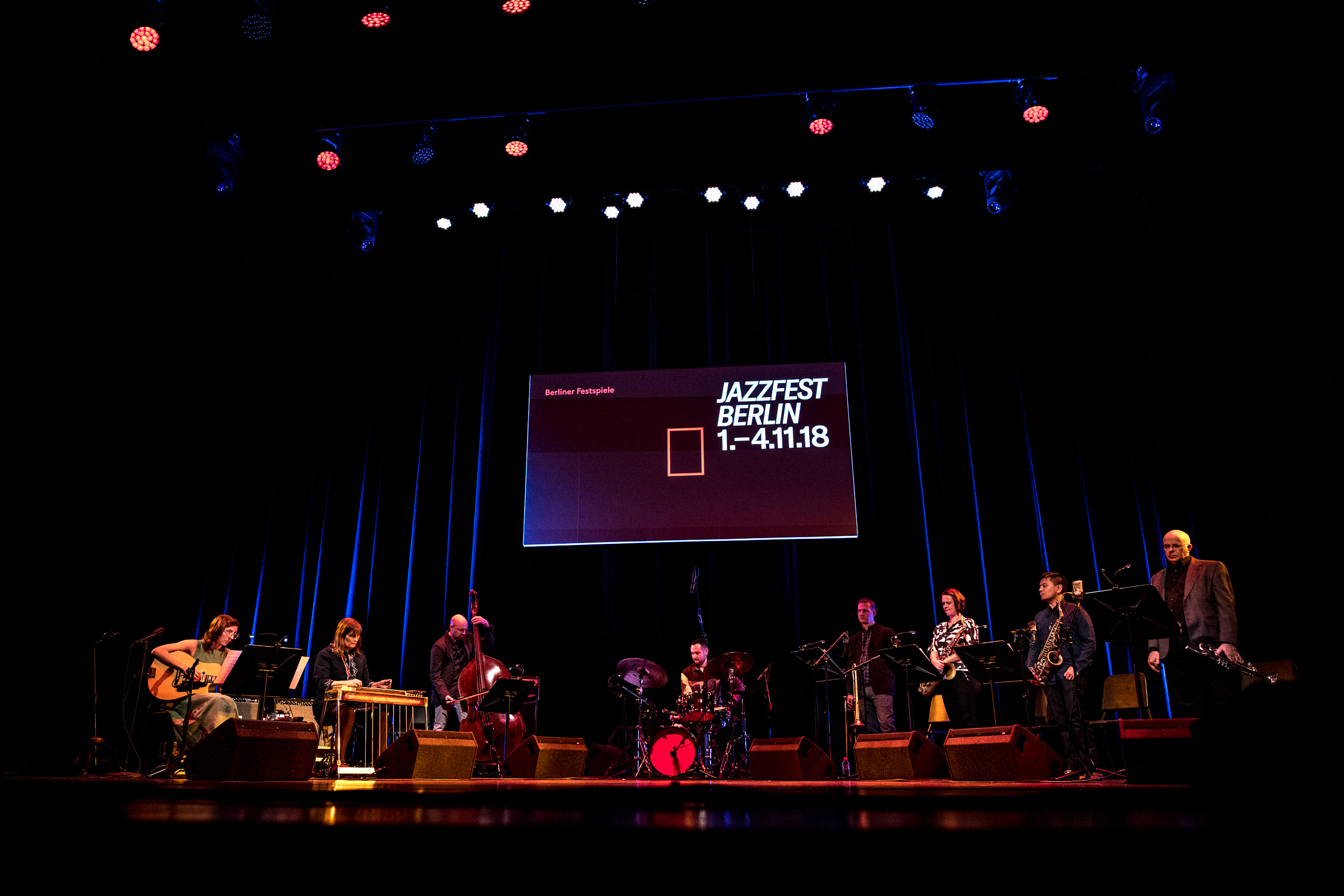Der letzte Abend auf der „Großen Bühne“ des Hauses der Berliner Festspiele. Das HuPe-kollektiv (nicht der Autor der Blogtexte!) hat das in Fotos gebannt gesammelt, so wie auch schon an den anderen drei Tagen. Auf der Bühne standen Bill Frisell und das Mary Halvorson Octet (Bericht folgt ). An dieser Stelle ein ganz herzlicher Dank an die Fotografin in der ersten Reihe. Schauen Sie sich auch die anderen drei Blogeinträge an, die sie fotografisch eingefangen hat, die anders als am letzten Tag, noch weitaus mehr gutes Material hergaben (siehe Ende des Artikels).