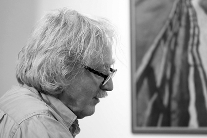 Jasper van’t Hof saß vor einem wunderbaren, bezeichnenden Bild des Malers Hans Jürgen Kallmann: „Der Weg“, den die beiden gemeinsam an diesem Abend spielerisch entspannt und inspiriert zurücklegten.
