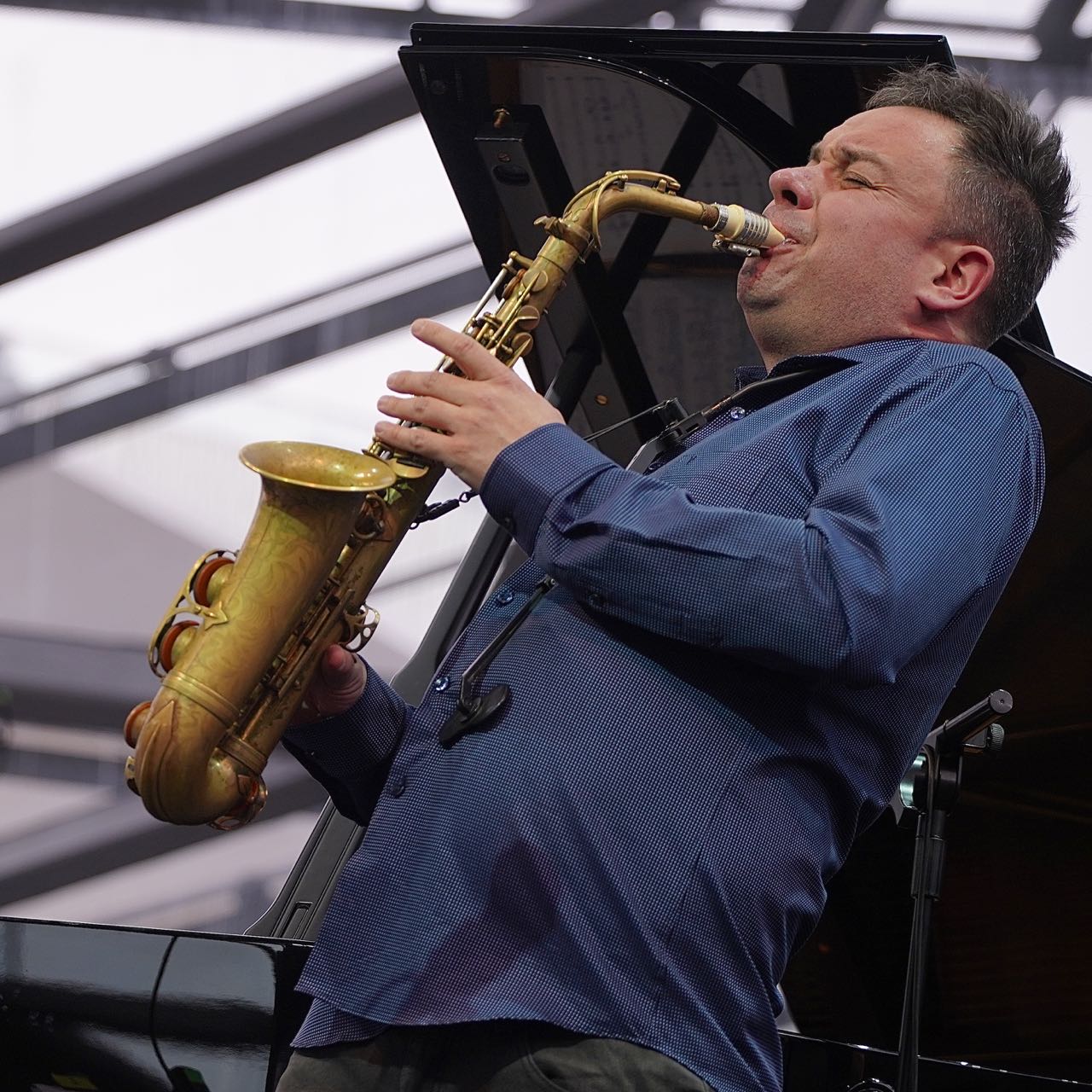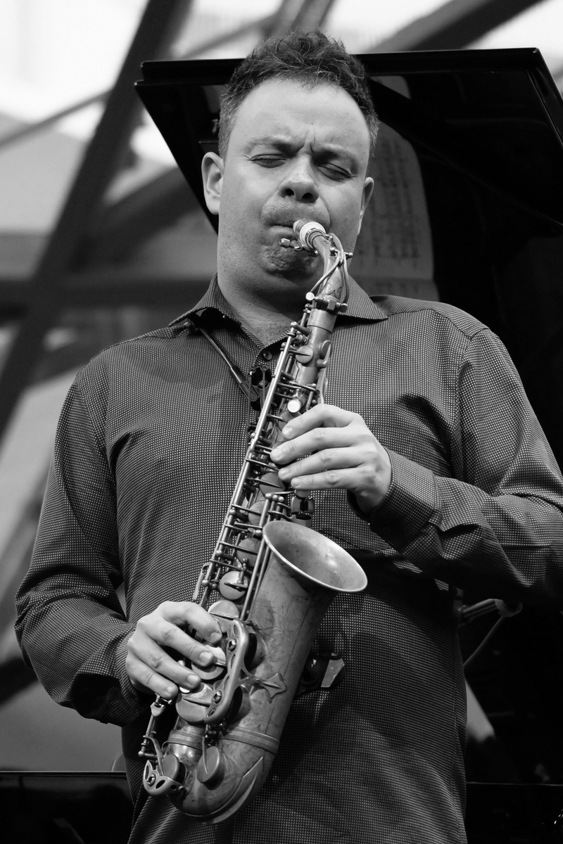 „Unloved“ ist ein Song des Komponisten und Pianisten Krzysztof Komeda, dem Spiritus Rector des modernen Jazz in Polen, der ihn einst für den gleichnamigen Film von Janusz Nasfeter komponiert hatte. Er war das einzige Stück des Jazzvormittags, das nicht von Bandleader Maciej Obara stammte. Im Zentrum der sinfonisch-opulenten Kollektiv-Improvisationen stand stets das lyrisch-kraftvolle Saxophon von Maciej Obara, der seine vier Mitmusiker sicher durch die Klippen komplexester Rhythmen und Harmonien führte. Seinem virtuosen Spiel standen sein Landsmann Dominik Wania am Klavier sowie die beiden Norweger Ole Morten Vagan am Bass und Gard Nilssen am Schlagzeug um nichts nach. Für die JazzZeitung.de hielten die Photographen Ralf Dombrowski und Thomas J. Krebs Momente in Farbe und Schwarzweiss fest. Ein ausführliche Kritik von Ssirus W. Pakzad lesen Sie demnächst unter www.nmz.de