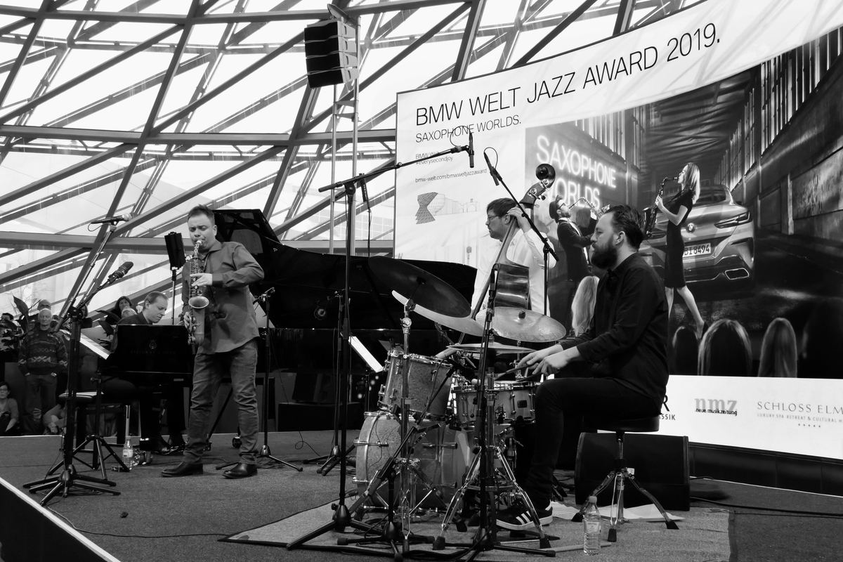 Mit diesem Auftakt ging der BMW Welt Jazz Award 2019 unter dem Motto „Saxophone Worlds“ in die erste Runde. Im Rahmen von sechs kostenlosen Sonntagsmatineen treten hochklassige Jazz-Ensembles gegeneinander an. Die nächste Saxophon-Kombattantin ist am 3. Februar um 11:00 an gleicher Stelle die Französin Céline Bonacina und ihr Crystal Quartet.